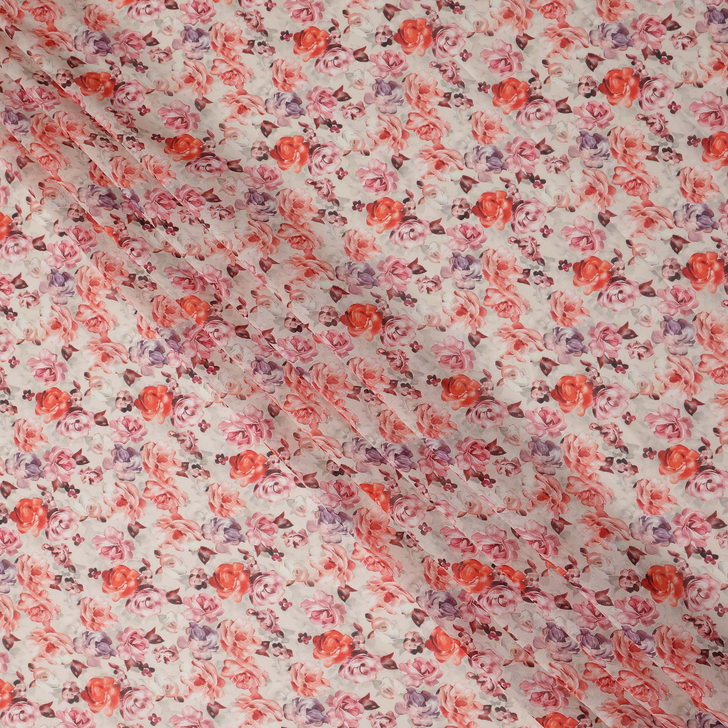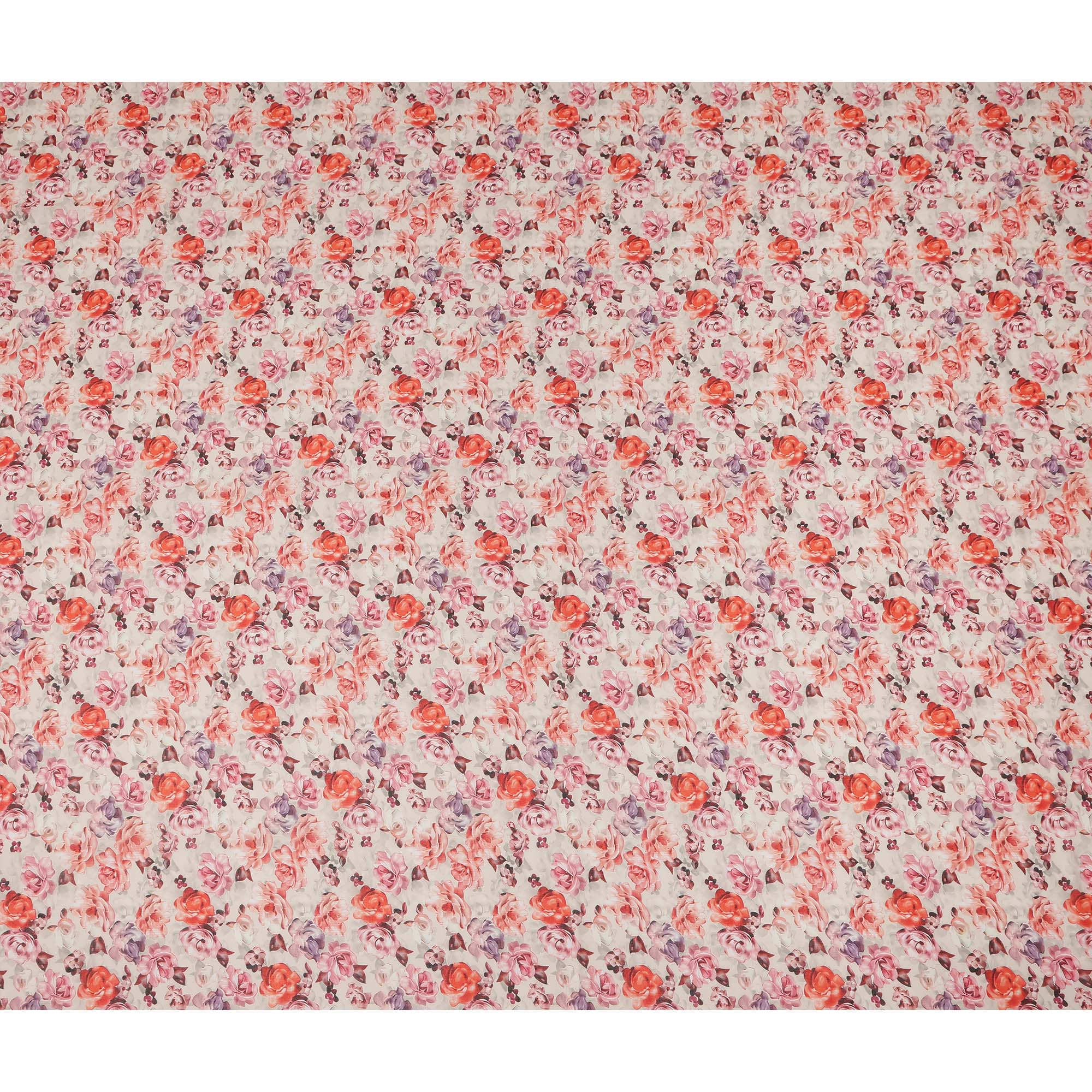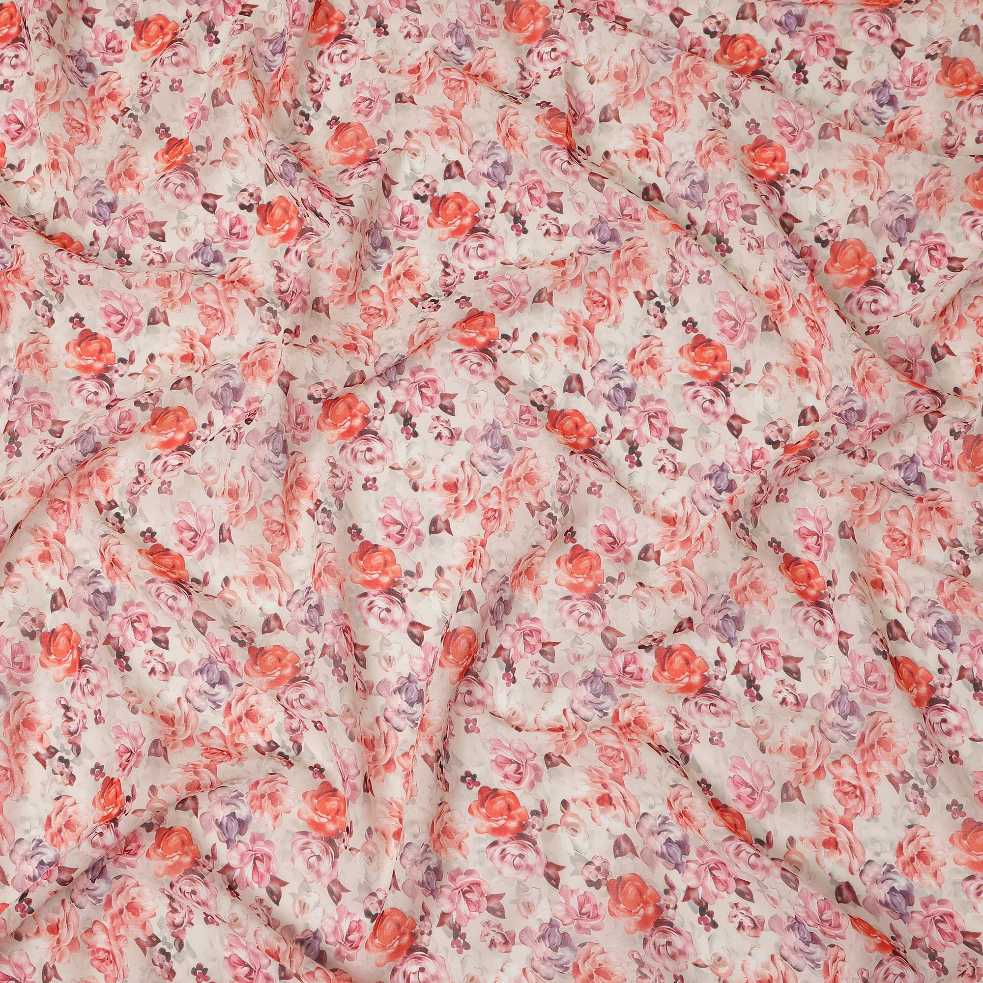 Elegant white base with peach pink and lavender floral print.