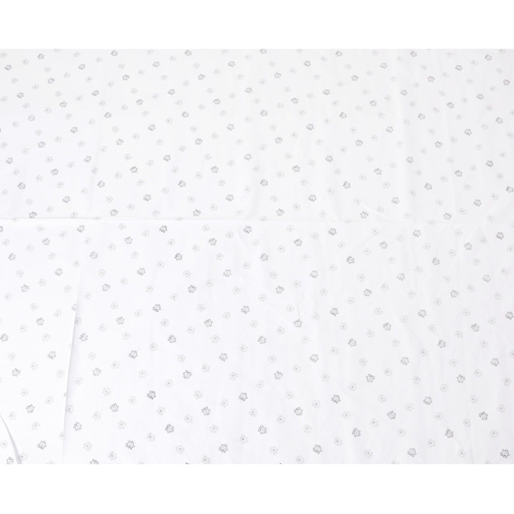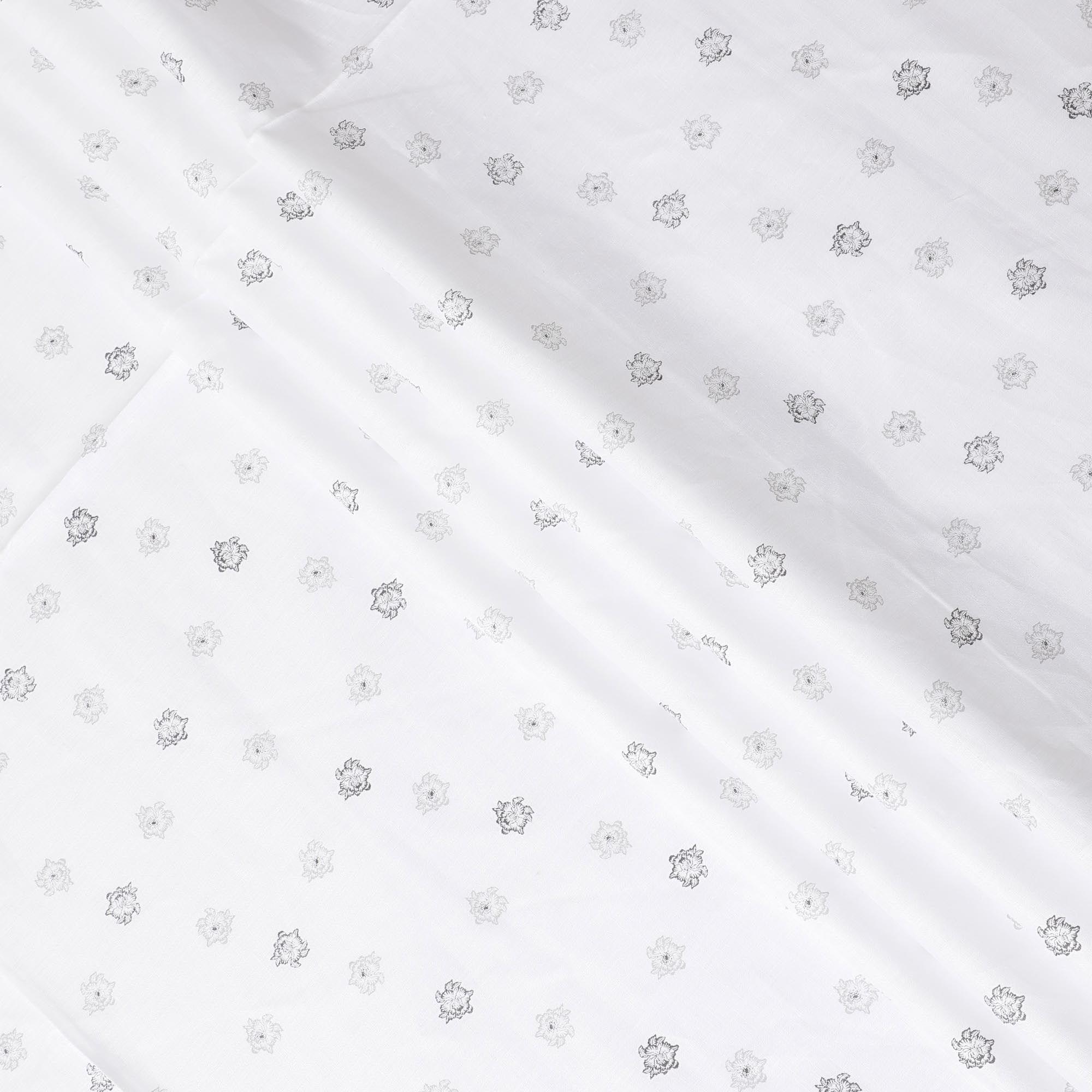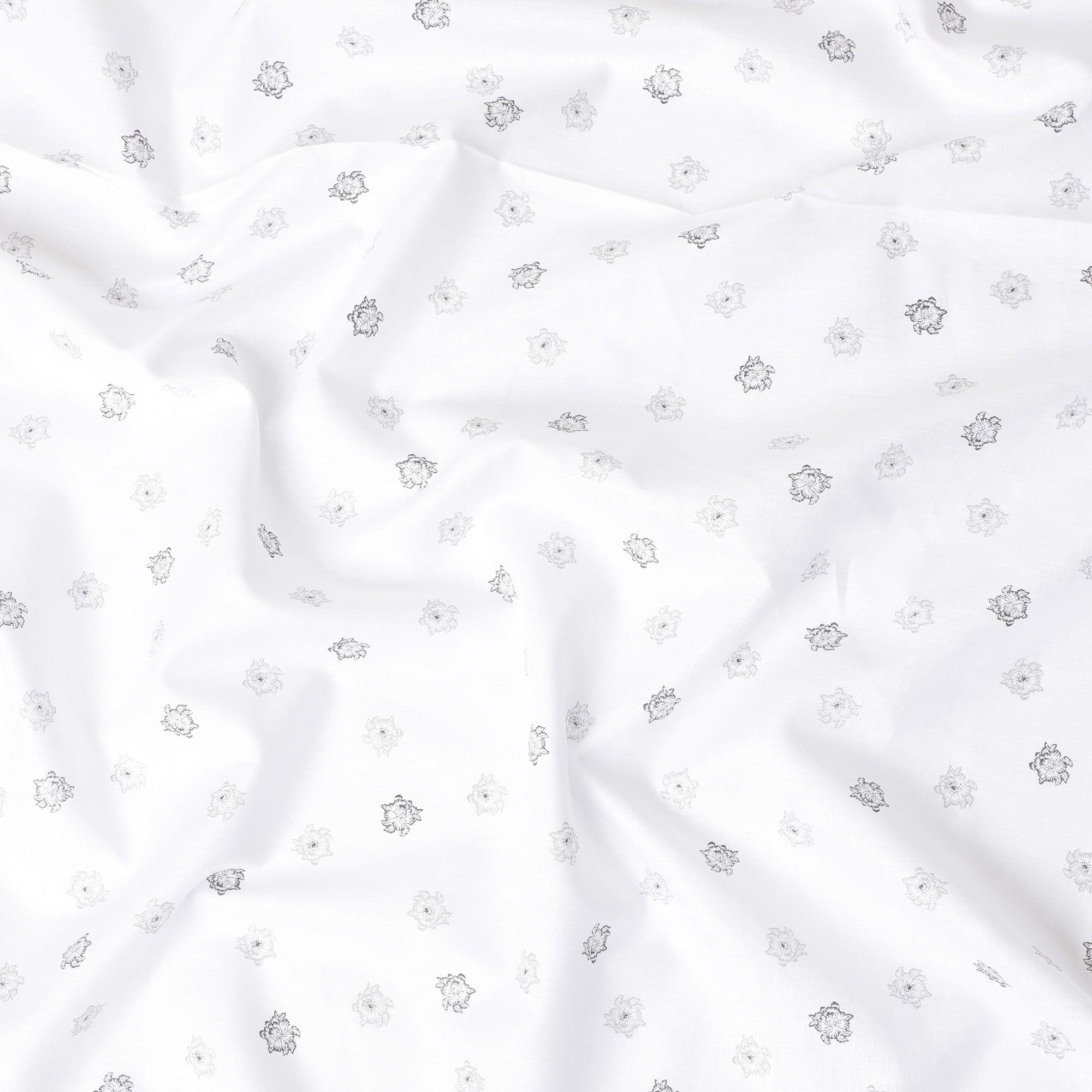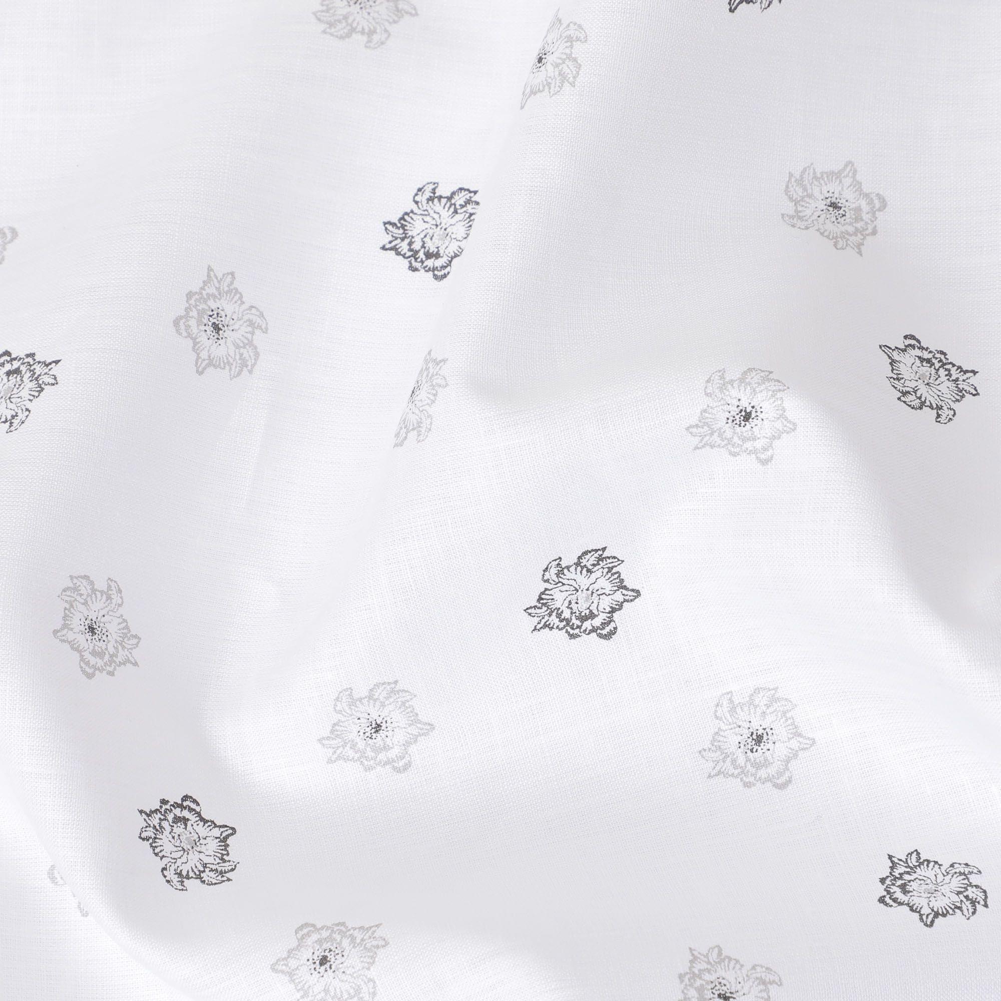 قماش الكتان الخالص الأبيض الفاخر بنسبة 100% مع طباعة باللونين الأسود والرمادي بتصميم الأزهار-D11096
