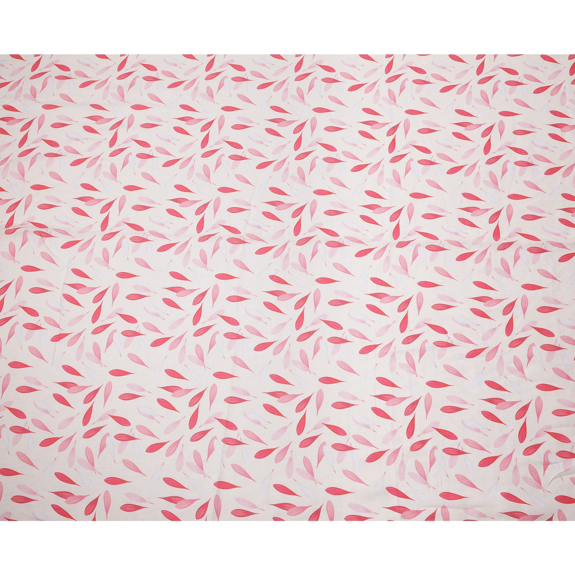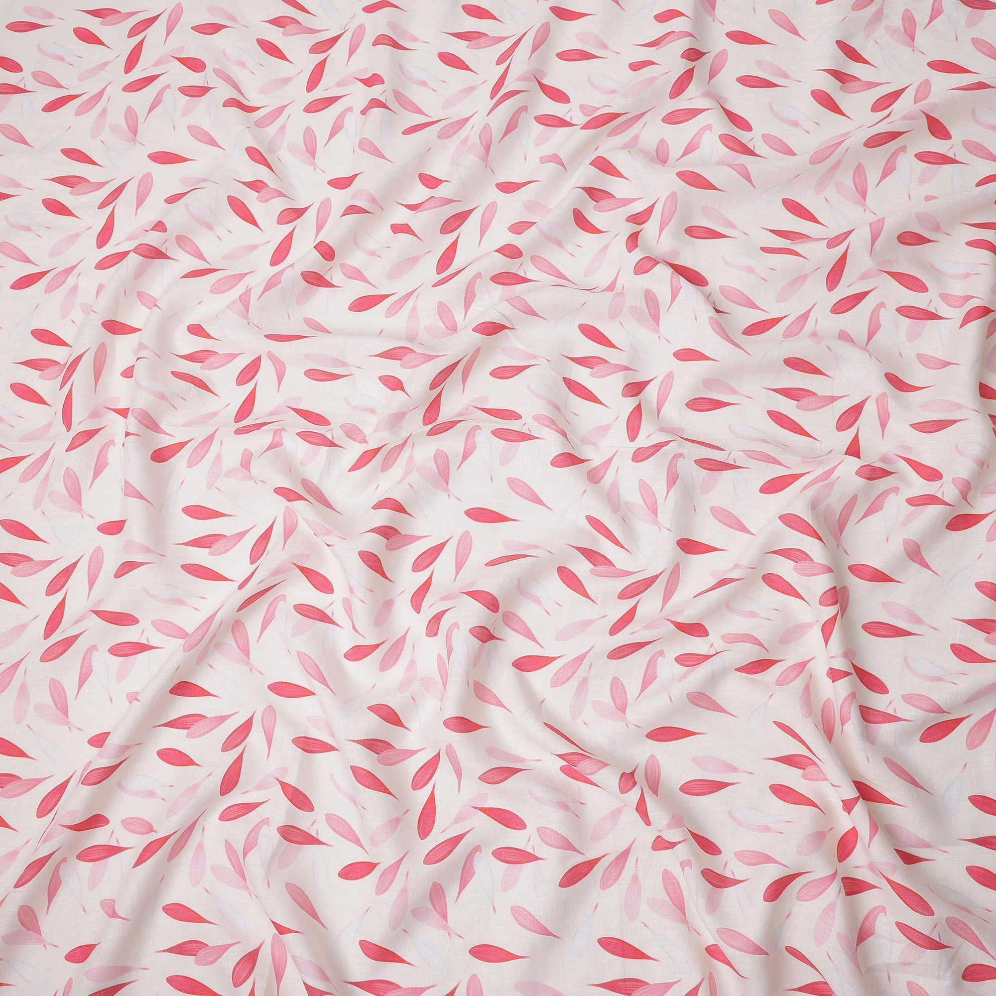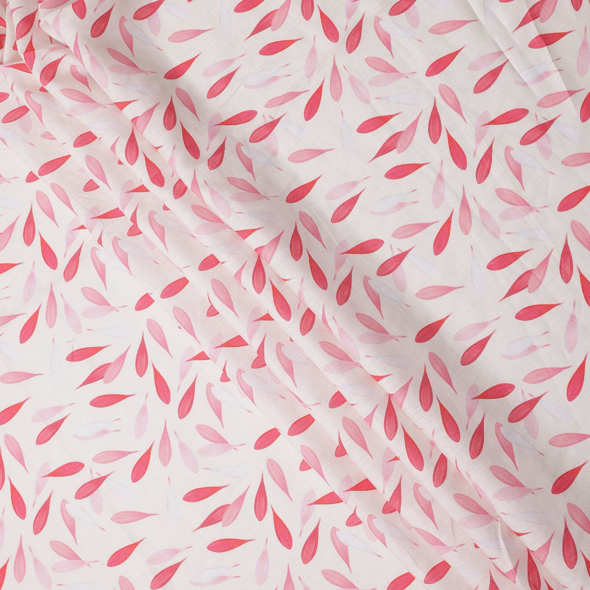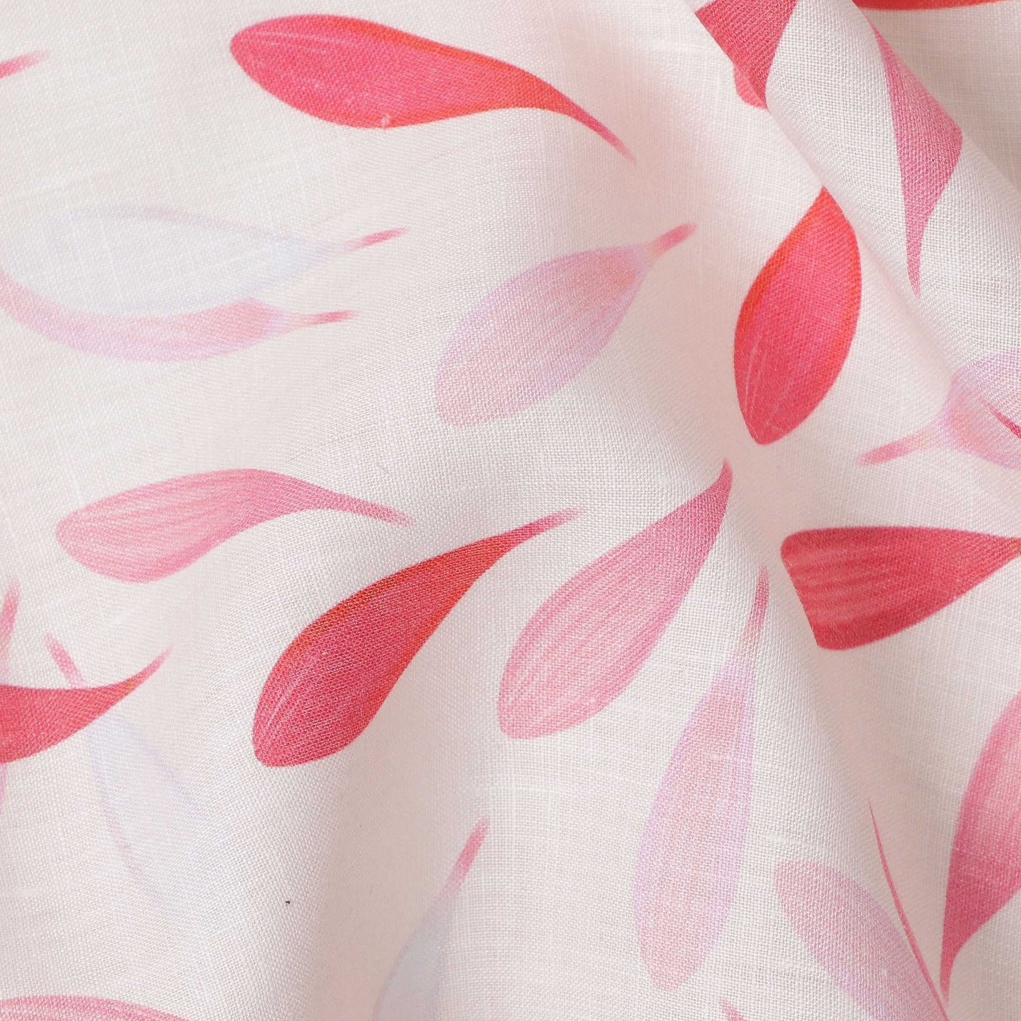 قماش كتان أبيض نقي مطبوع عليه أوراق الشجر بتصميم تجريدي باللونين الأحمر والوردي، عرض 140 سم، صنع في الهند - D25075