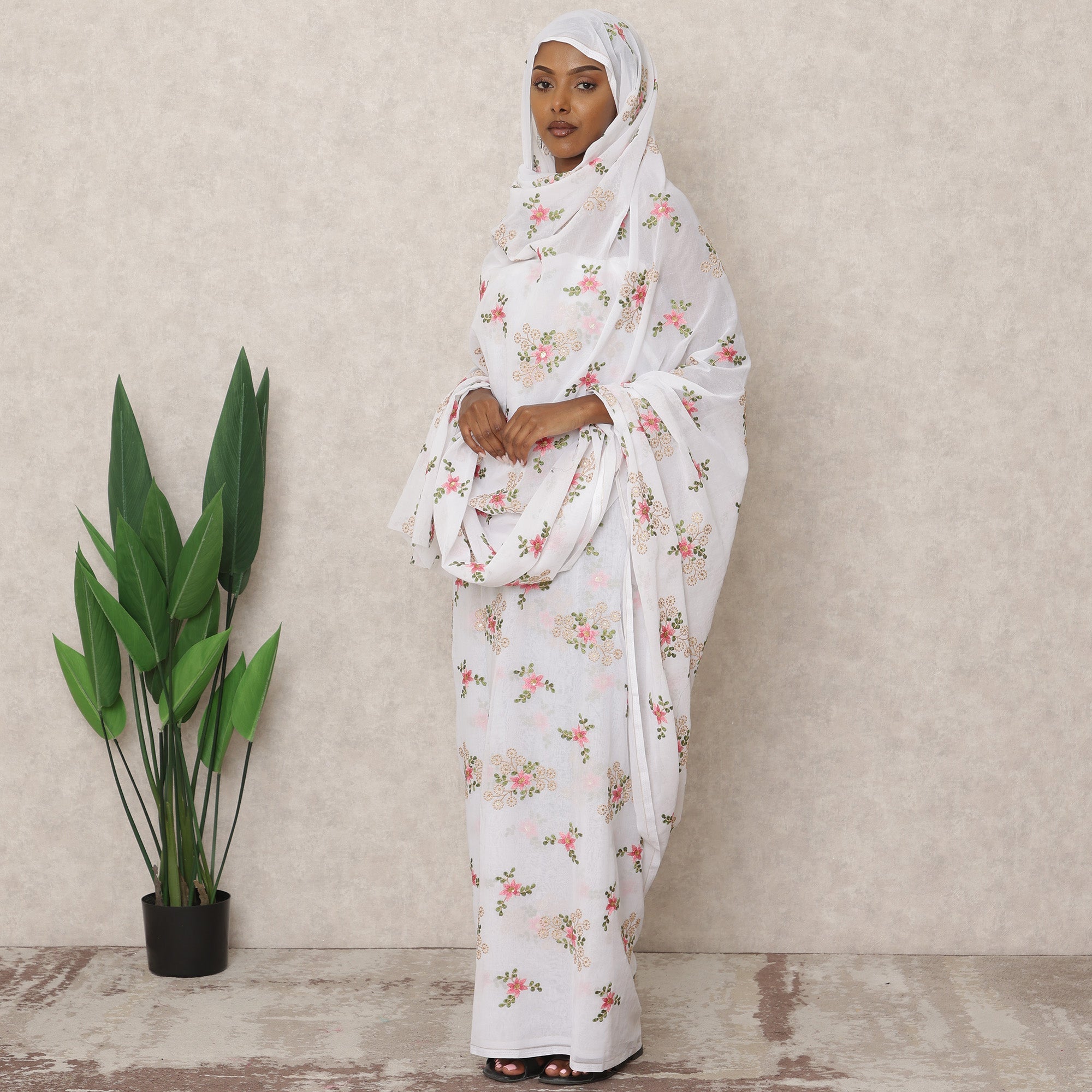 استمتعي بأناقة خالدة مع هذا الثوب السوداني التقليدي الأبيض، المصنوع بإتقان من قماش الفوال القطني الخالص، والمزين بتطريز زهري متعدد الألوان يضفي سحرًا رقيقًا على كل قطعة. بطول 4.5 متر وعرض 140 سم، يضمن هذا الثوب الأناقة السودانية التقليدية مع تغطية مريحة ونعومة تسمح بمرور الهواء، وهو مثالي للارتداء اليومي، أو في تجمعات الصلاة، أو المناسبات الثقافية الخاصة. القاعدة البيضاء بمثابة لوحة مثالية للزخارف الزهرية الناعمة باللون الوردي والأخضر والذهبي، والتي تضفي لمسة منعشة وأنيقة. صُنع هذا الثوب في الهند بدقة متناهية، ويتميز بتطريز دقيق وانسيابية تناسب جميع أنواع الجسم، مع توفير راحة طوال اليوم في الأجواء الدافئة. قماش الفوال خفيف الوزن، لطيف على البشرة، ويسهل العناية به بالغسيل اليدوي، مما يجعله عمليًا وأنيقًا. تسوقي عبر الإنترنت اليوم وأضيفي هذا الثوب الهادئ والأنثوي إلى خزانة ملابسك التقليدية - اشتري عبر الإنترنت واستمتعي بجمال وتقاليد راقية في كل قطعة.