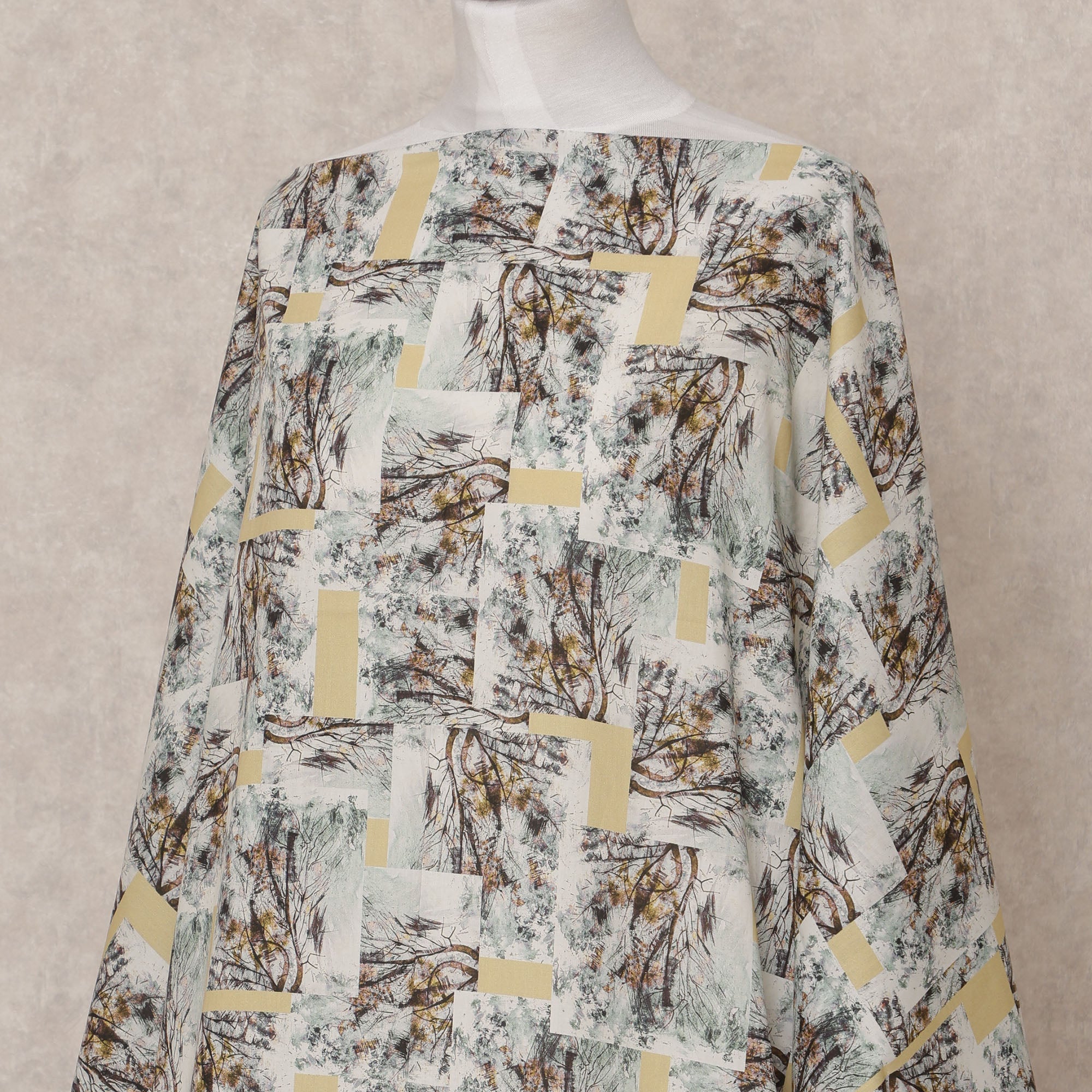 • أُوكَازيُون -25% قماش ديراك صومالي قطني فوال، طباعة تجريدية باللون الأبيض والأصفر، 3.5 متر، عرض 150 سم، صنع في الهند - D24605