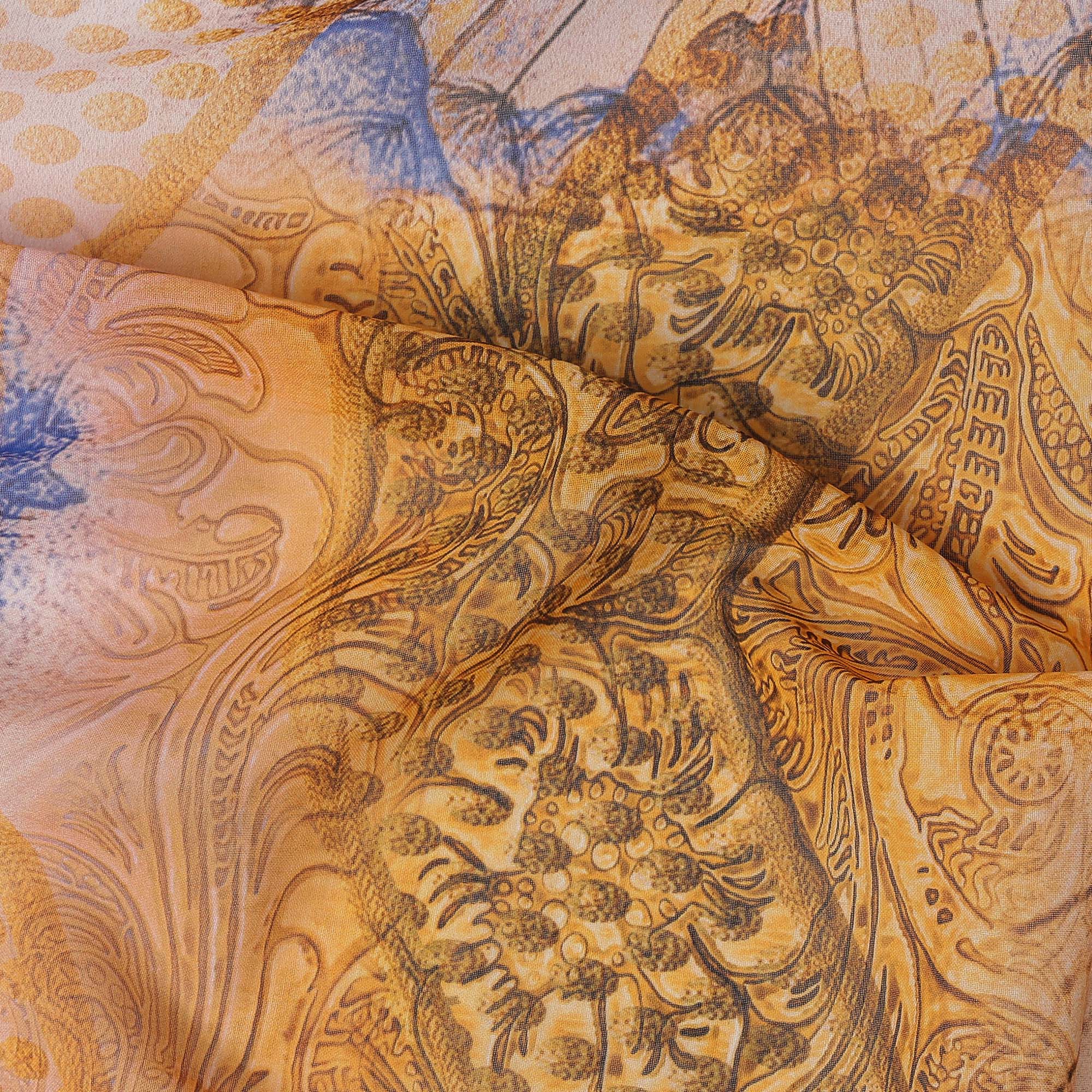 This White Yellow-Blue Traditional Sudanese Thobe is crafted from premium cotton voile fabric, offering a soft, breathable, and lightweight feel ideal for warm climates and all-day comfort. The fabric features a beautifully artistic abstract pattern combining golden yellow paisley swirls, blue watercolor splashes, dotted textures, and fine floral linework that blend together to create a vibrant and visually striking composition. Its harmonious color transitions and intricate detailing give the thobe a refined yet contemporary appeal, perfect for festive occasions, cultural gatherings, and daily traditional wear. With a generous 4.5-meter length and a wide 140 cm width, this thobe provides ample coverage and allows for graceful draping in classic Sudanese styles. Designed and printed in India with high-quality techniques, the fabric ensures long-lasting colors, crisp detailing, and excellent durability. Its airy texture ensures comfortable movement while maintaining elegance, making it a beautiful and practical choice for women seeking a blend of tradition, artistry, and comfort.