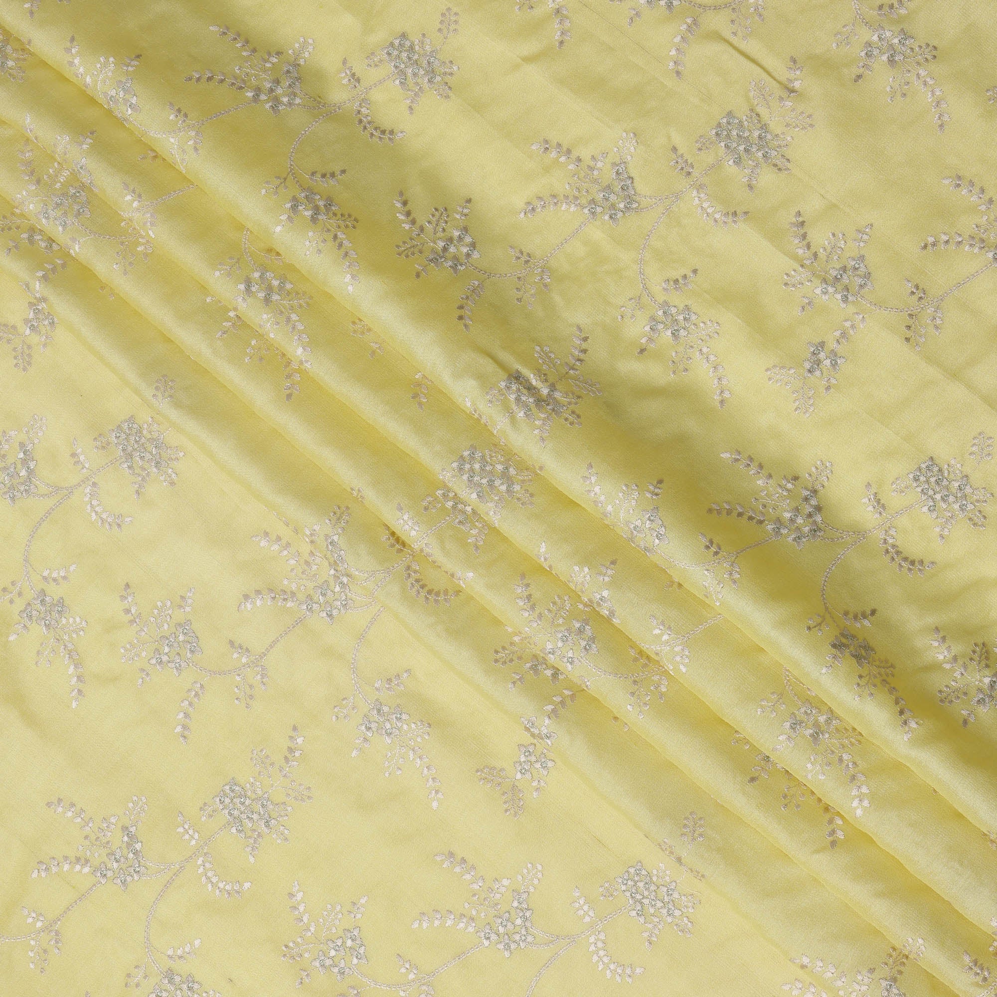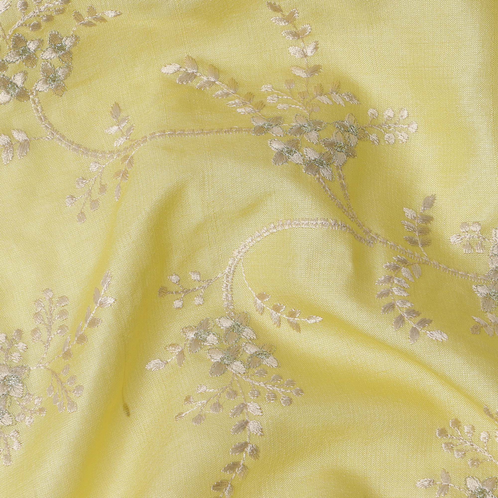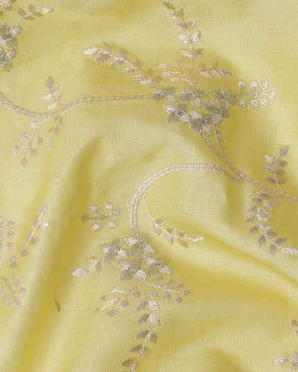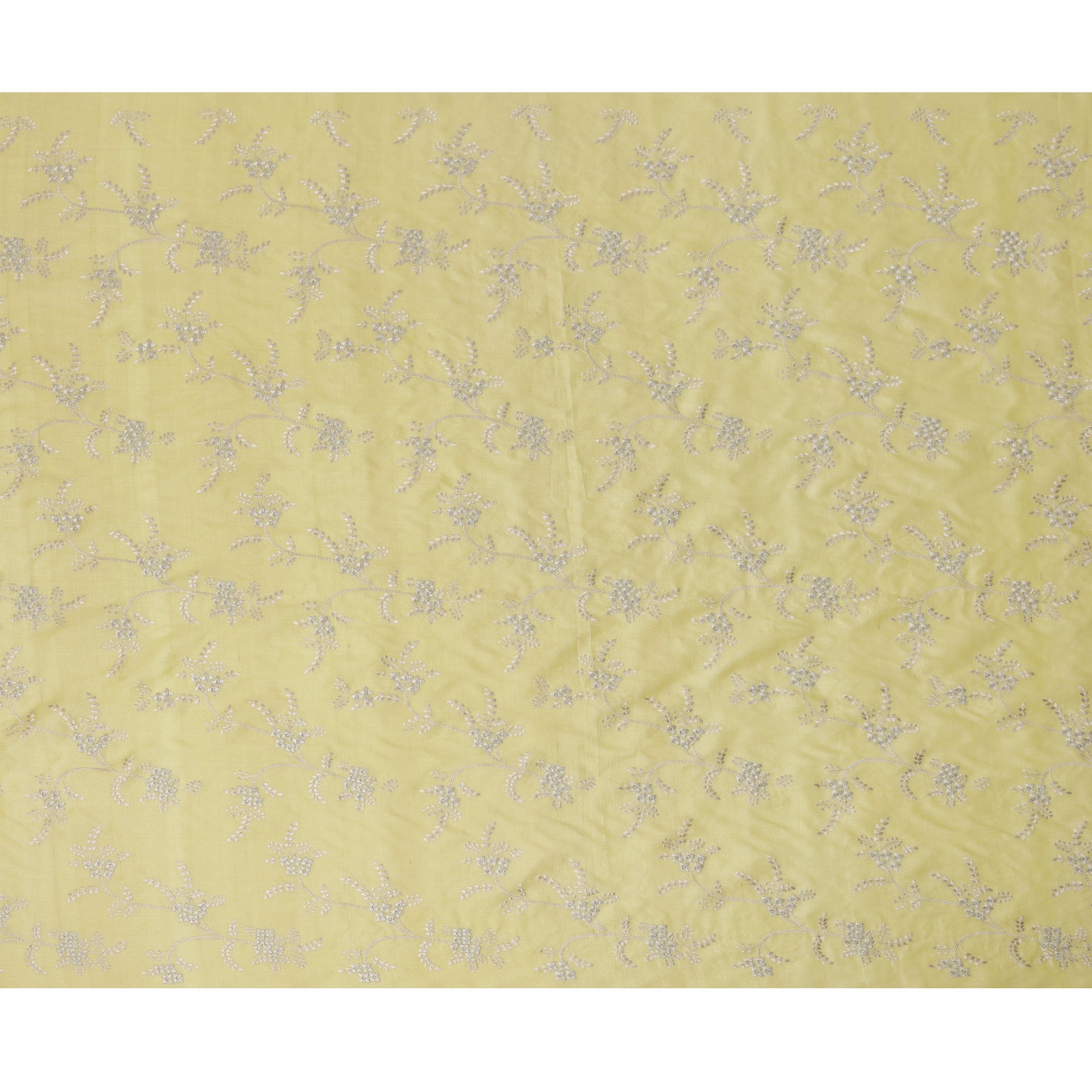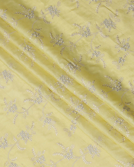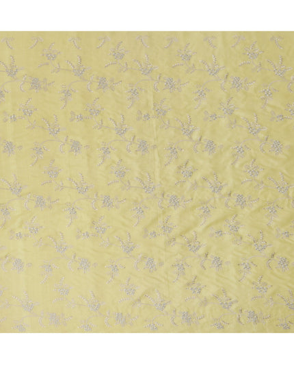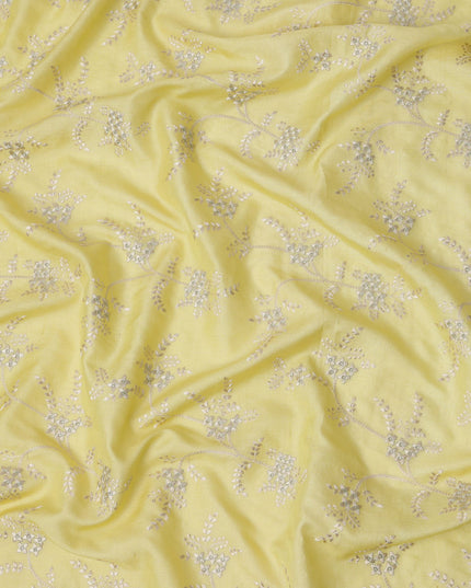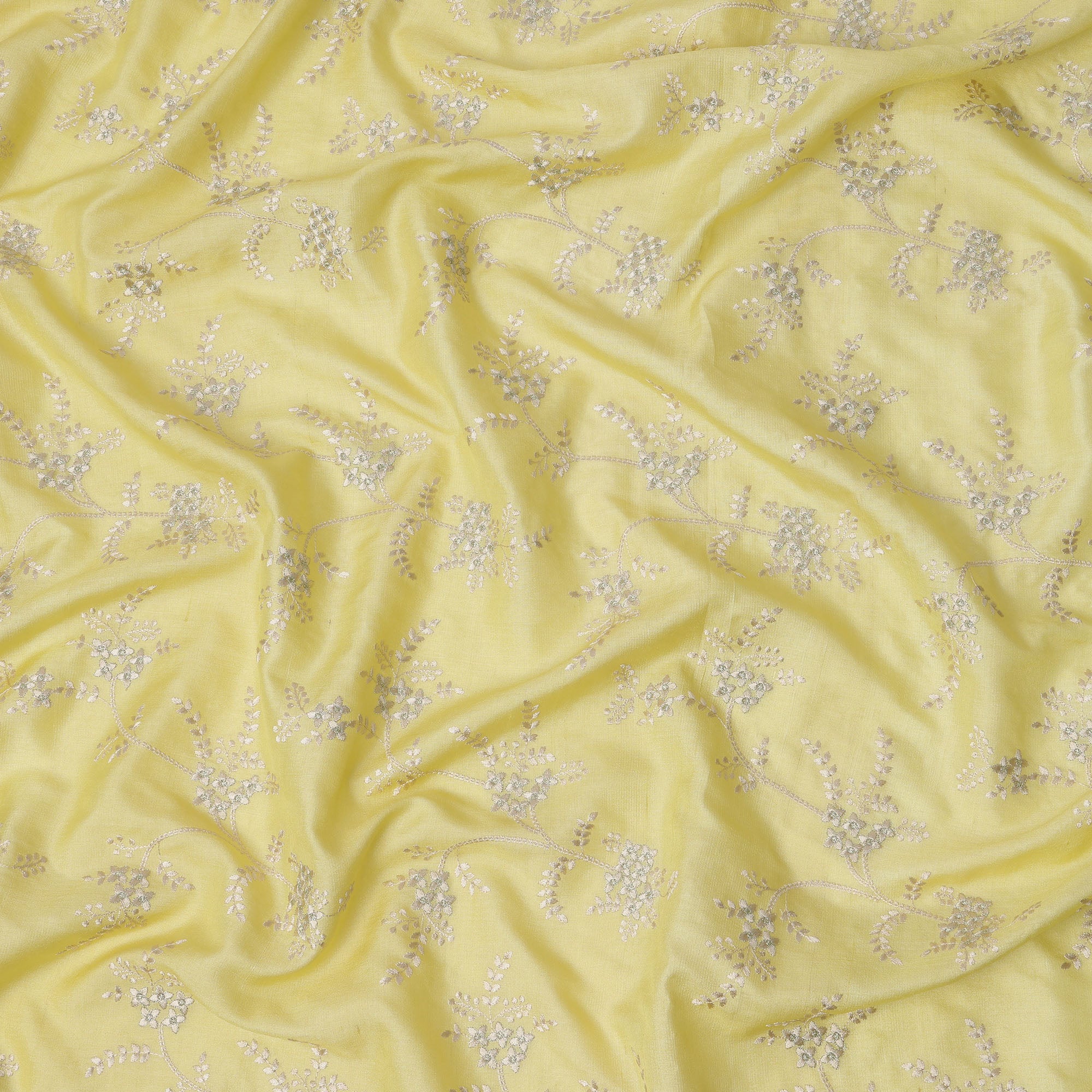 قماش حرير توسار مطرز بنقشة زهور صفراء بخيوط فضية، 110 سم، الهند - D23378