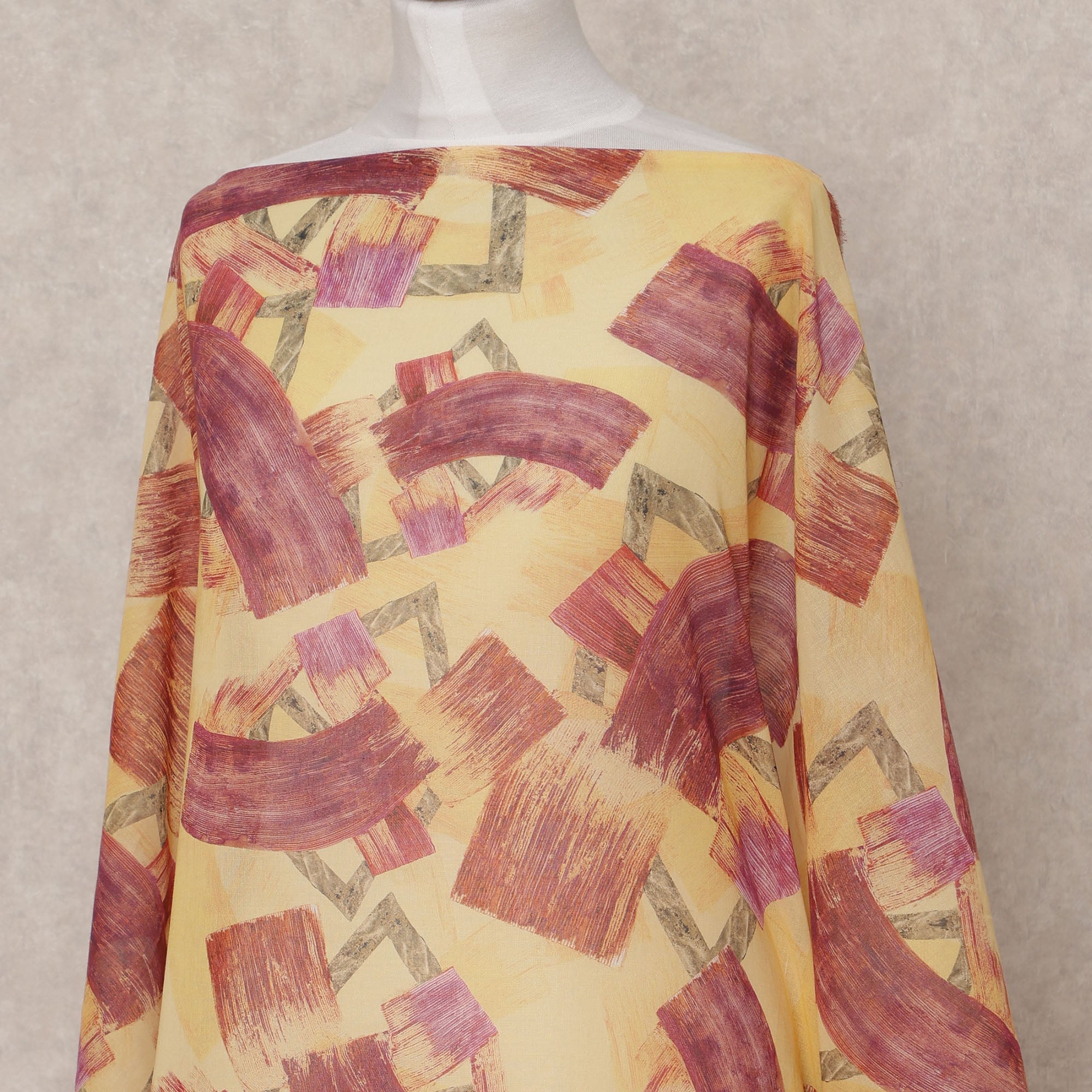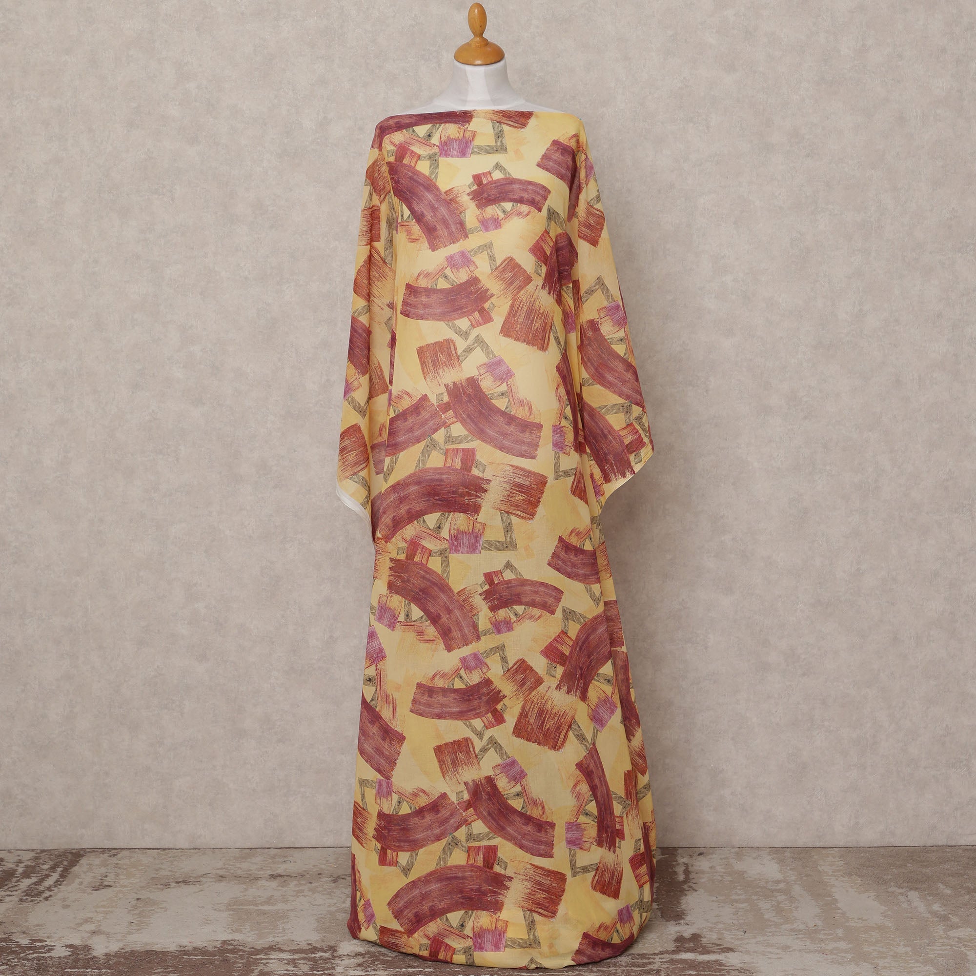 قماش ديراك التقليدي الصومالي المصنوع من القطن الفوال، باللونين الأصفر والأحمر الداكن، بتصميم تجريدي بضربات فرشاة، هو ابتكار جريء وفني، يمزج بين أناقة الثقافة الصومالية وحرفية تصميم المنسوجات الإيطالية الراقية. يبلغ طول هذا الفوال القطني الفاخر 3.5 أمتار وعرضه 150 سم، ويوفر خامة وفيرة لتصميم ملابس ديراك انسيابية أو ملابس مصممة حسب الطلب. القاعدة الصفراء النابضة بالحياة مزينة بنقوش ضربات فرشاة كستنائية معبرة، مع لمسات رقيقة من الأخضر الباهت والوردي الناعم، مما يخلق تصميمًا مذهلاً ومتناغمًا. يضمن نسيجه الخفيف والمسامي أقصى درجات الراحة، مما يجعله مثاليًا للمناخات الدافئة، بينما يعزز ملمسه الناعم وانسيابيته الانسيابية أناقة أي إطلالة. يتميز هذا القماش بمتانته وثبات ألوانه، ويحافظ على حيويته وشكله بمرور الوقت، مما يجعله مثاليًا لحفلات الزفاف والاحتفالات الثقافية وقطع الأزياء المميزة. لجمال يدوم طويلًا، يُغسل يدويًا بالماء البارد أو يُنظف جافًا بشكل احترافي. مزيج حقيقي من التقاليد والفن، يُحوّل هذا القماش الملابس التقليدية إلى تحفة فنية عصرية.