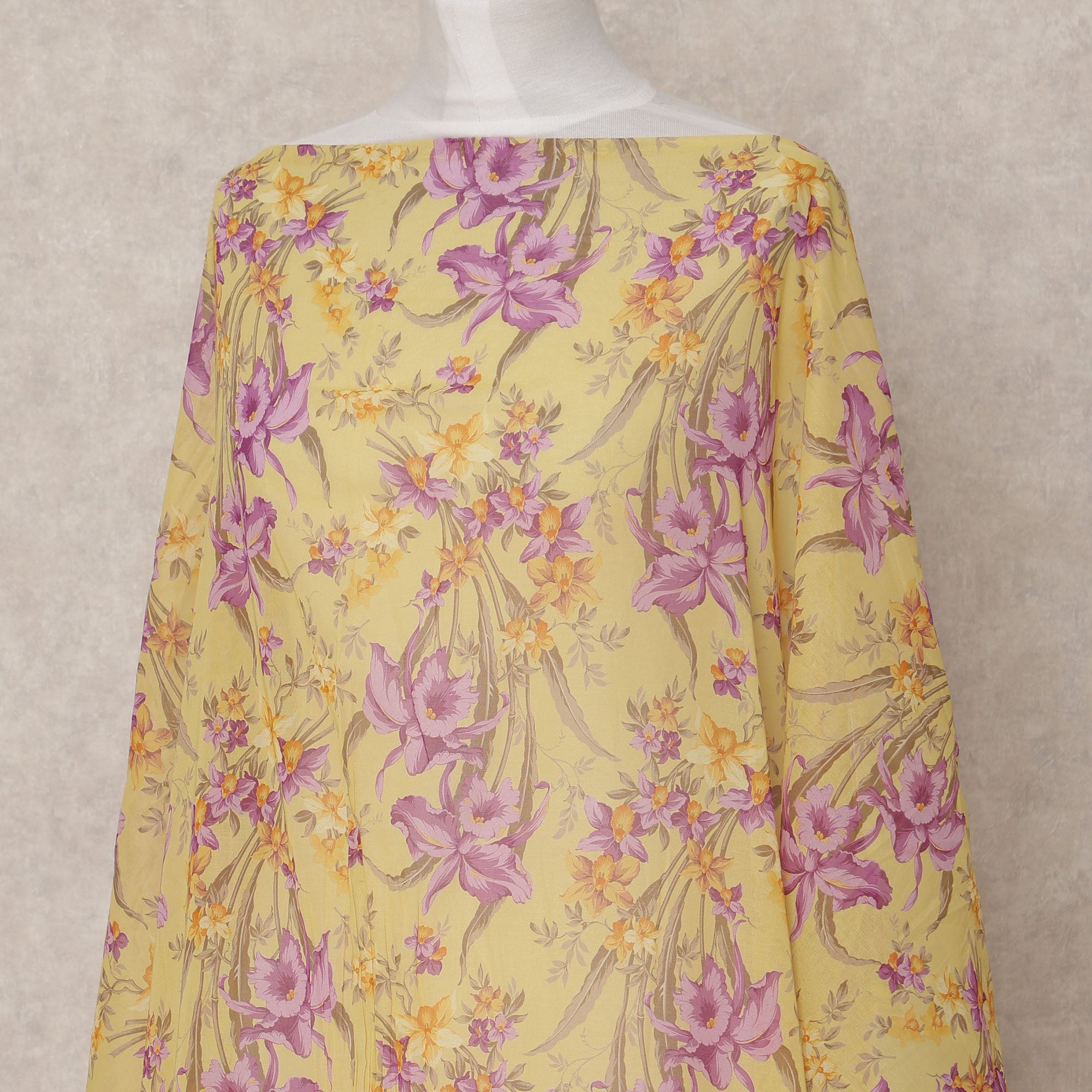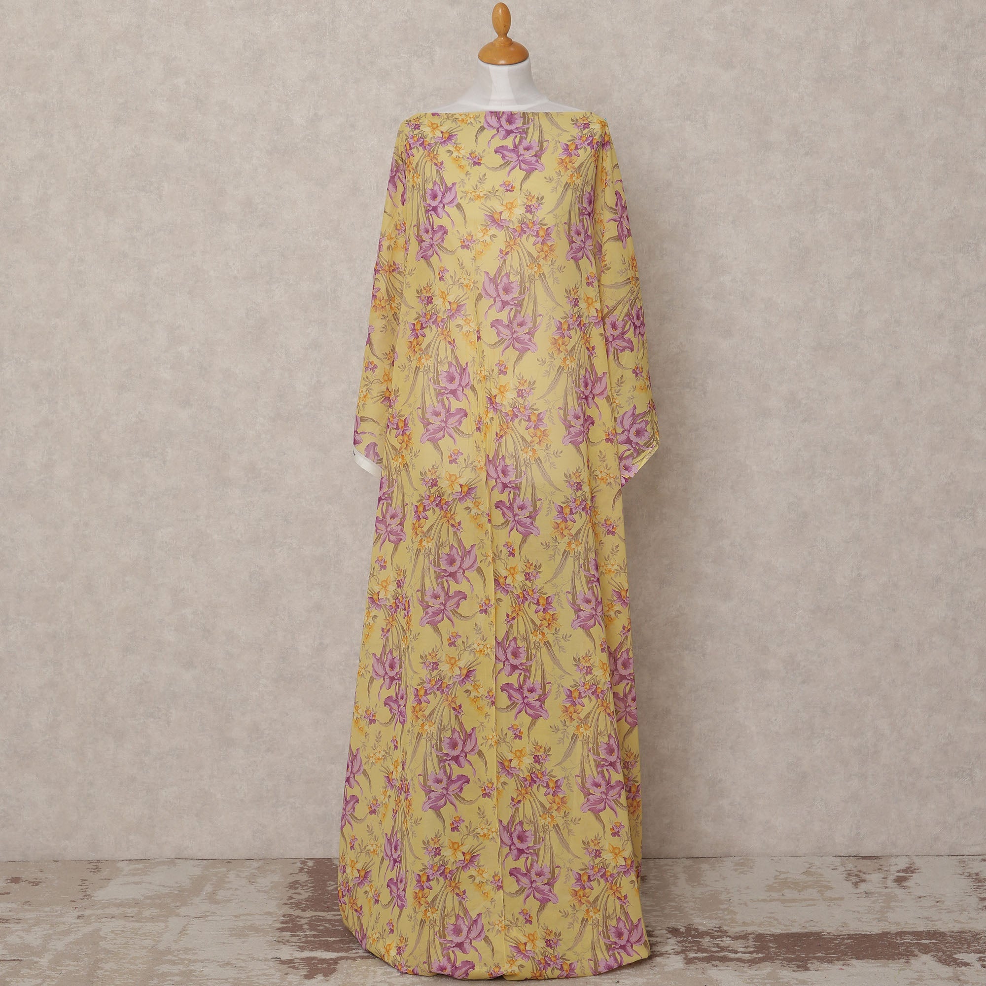 قماش ديراك تقليدي من القطن الصومالي، مزين بنقشة زهور صفراء وأرجوانية، بطول 3.5 متر، وعرض 140 سم، صنع في إيطاليا - D24716