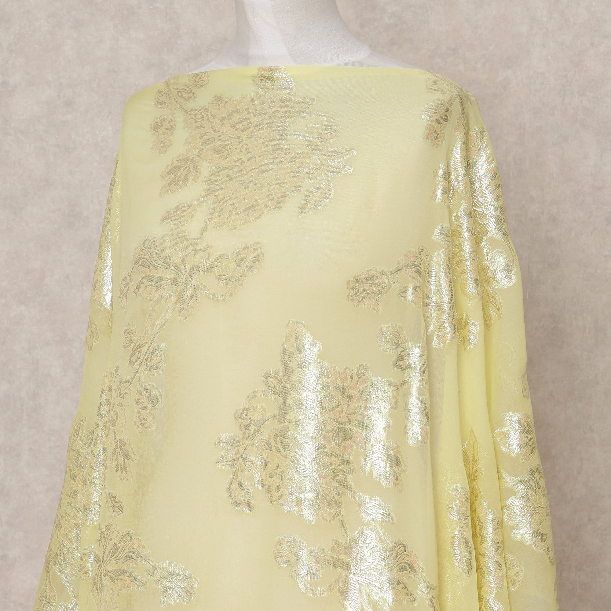 قماش ديراك شيفون حرير صومالي فاخر أصفر مع لوركس معدني - 3.5 متر، عرض 140 سم، صنع في كوريا الجنوبية - D24581