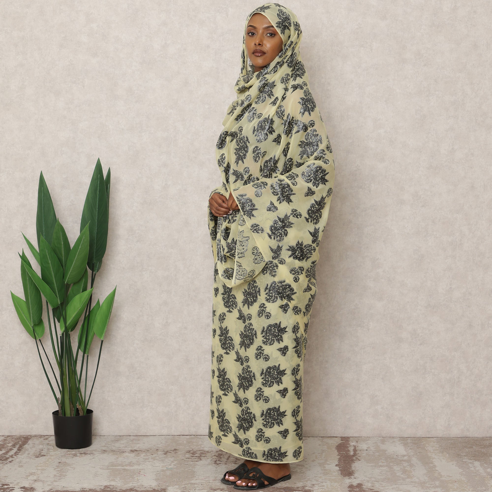 يتألق هذا الثوب السوداني التقليدي الأصفر بسحرٍ أخّاذ بقاعدته النابضة بالحياة، المزينة بنقوش زهور لوريكس سوداء معدنية غنية، تُضفي تباينًا فنيًا. منسوج من شيفون حريري خالص بطول 4.5 أمتار، يتميز هذا القماش الخفيف والأنيق بانسيابية وانسيابية وراحة فائقة، مما يجعله مثاليًا لساعات الاحتفالات الطويلة أو المناسبات الرسمية. يُضفي اللون الأصفر الزاهي، الممزوج بالنقشة المتقنة، لمسةً من الرقي والغنى الثقافي، مما يجعله قطعةً أساسيةً في خزانة ملابسك التقليدية. صُنع هذا الثوب بحرفية عالية في كوريا الجنوبية، بعرض 140 سم، وهو مثالي لمن يبحث عن قطعة مميزة تجمع بين الطابع التقليدي والطابع العصري.