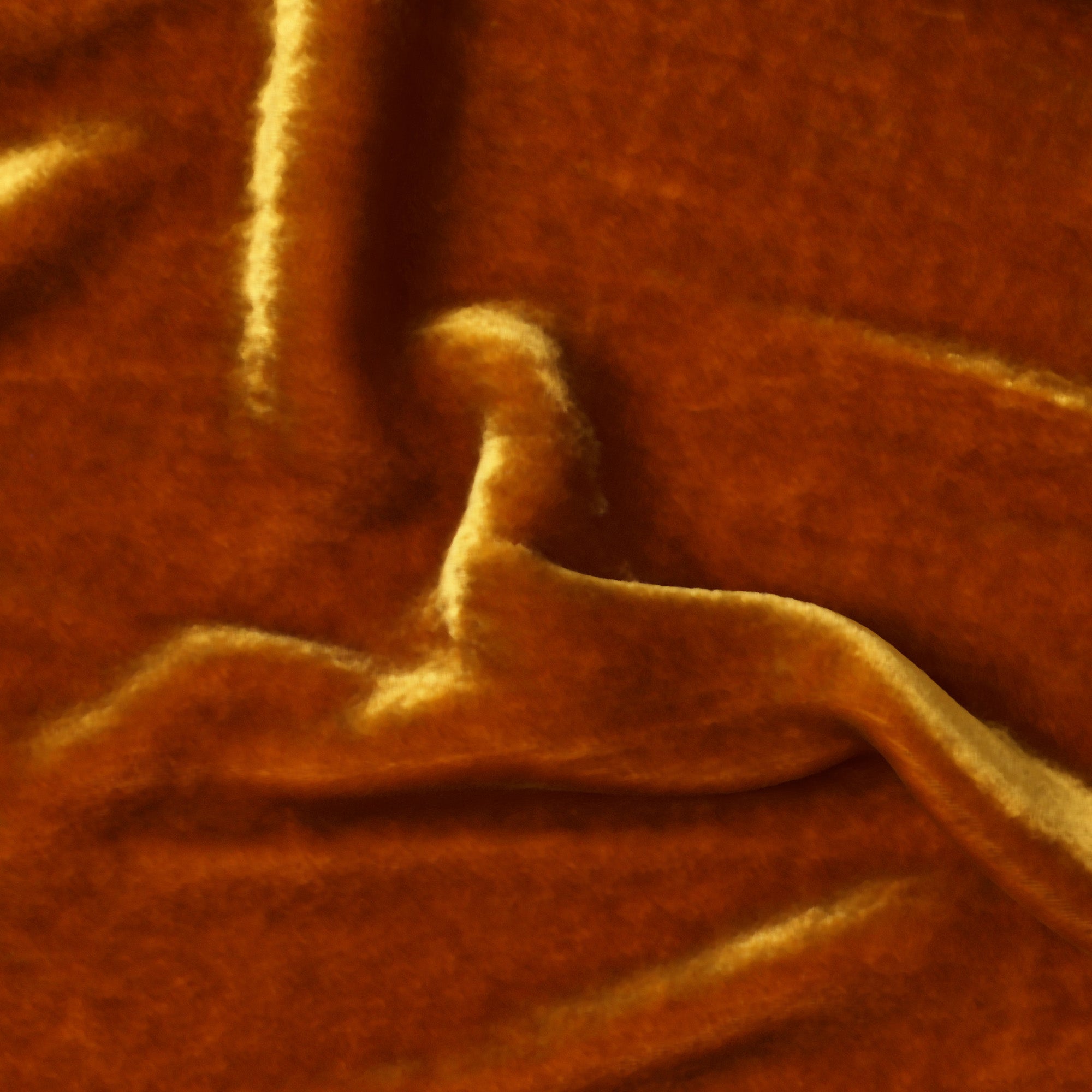 Amber gold silk blended velvet fabric with a rich glossy sheen and ultra-soft texture