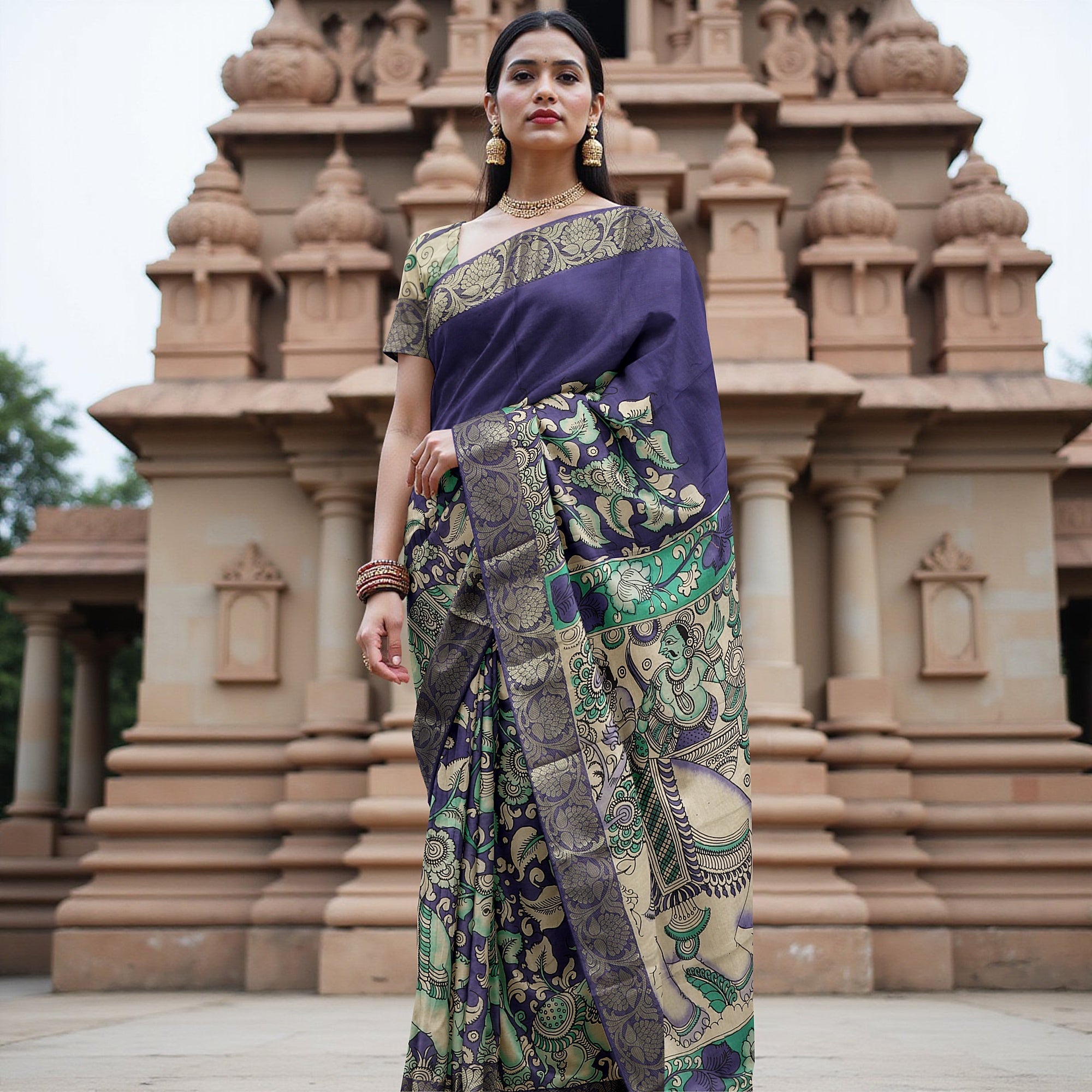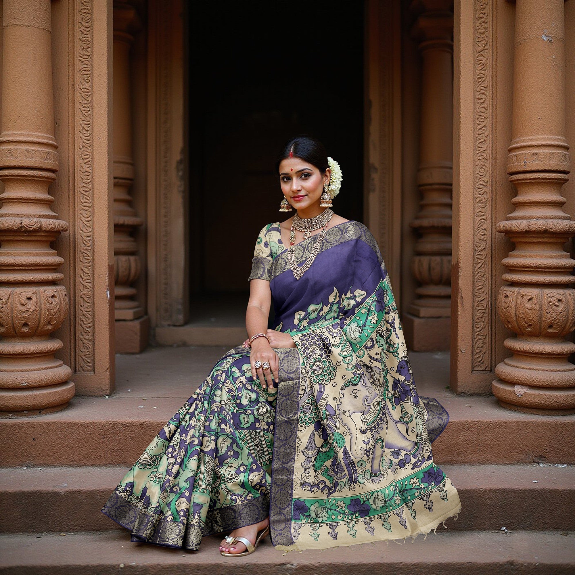 Crafted in Sri Kalahasthi, renowned for authentic Kalamkari techniques