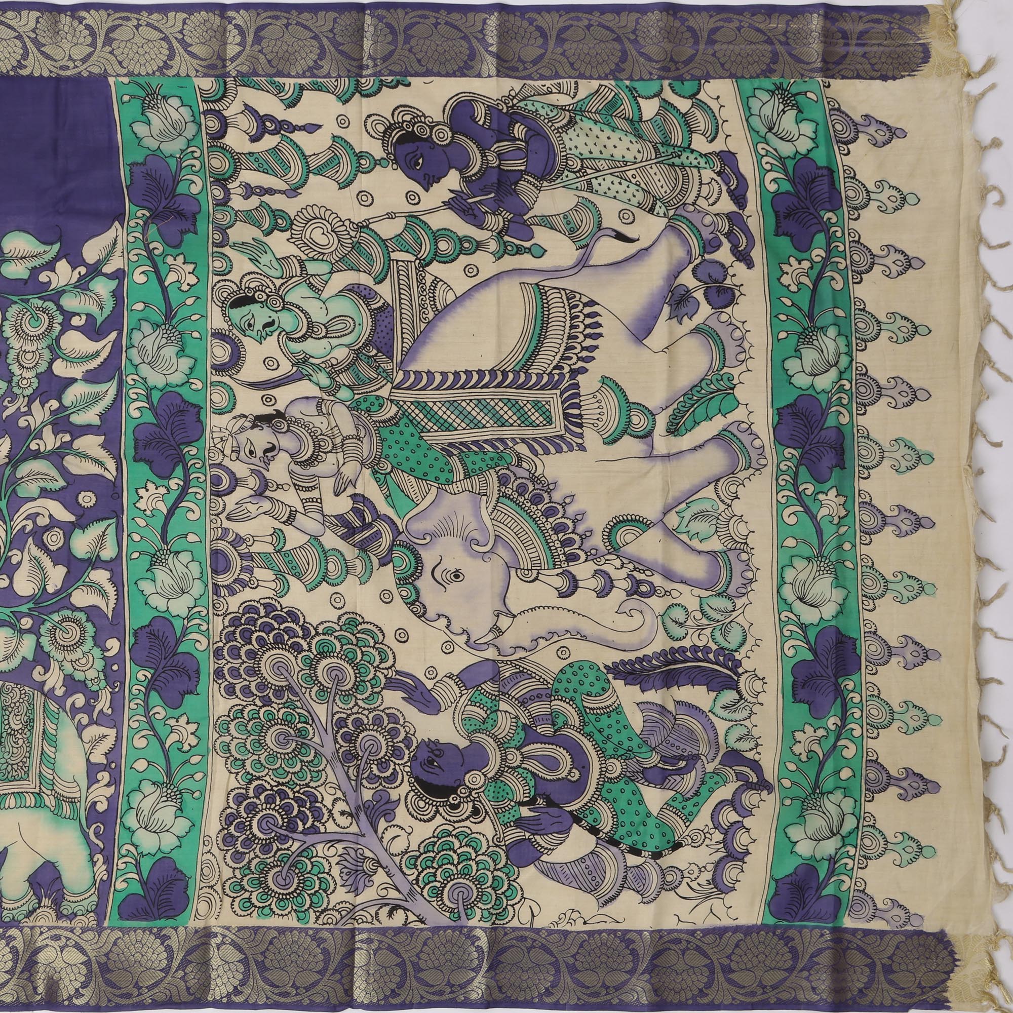 Handpainted Pen Kalamkari saree with intricate mythological storytelling