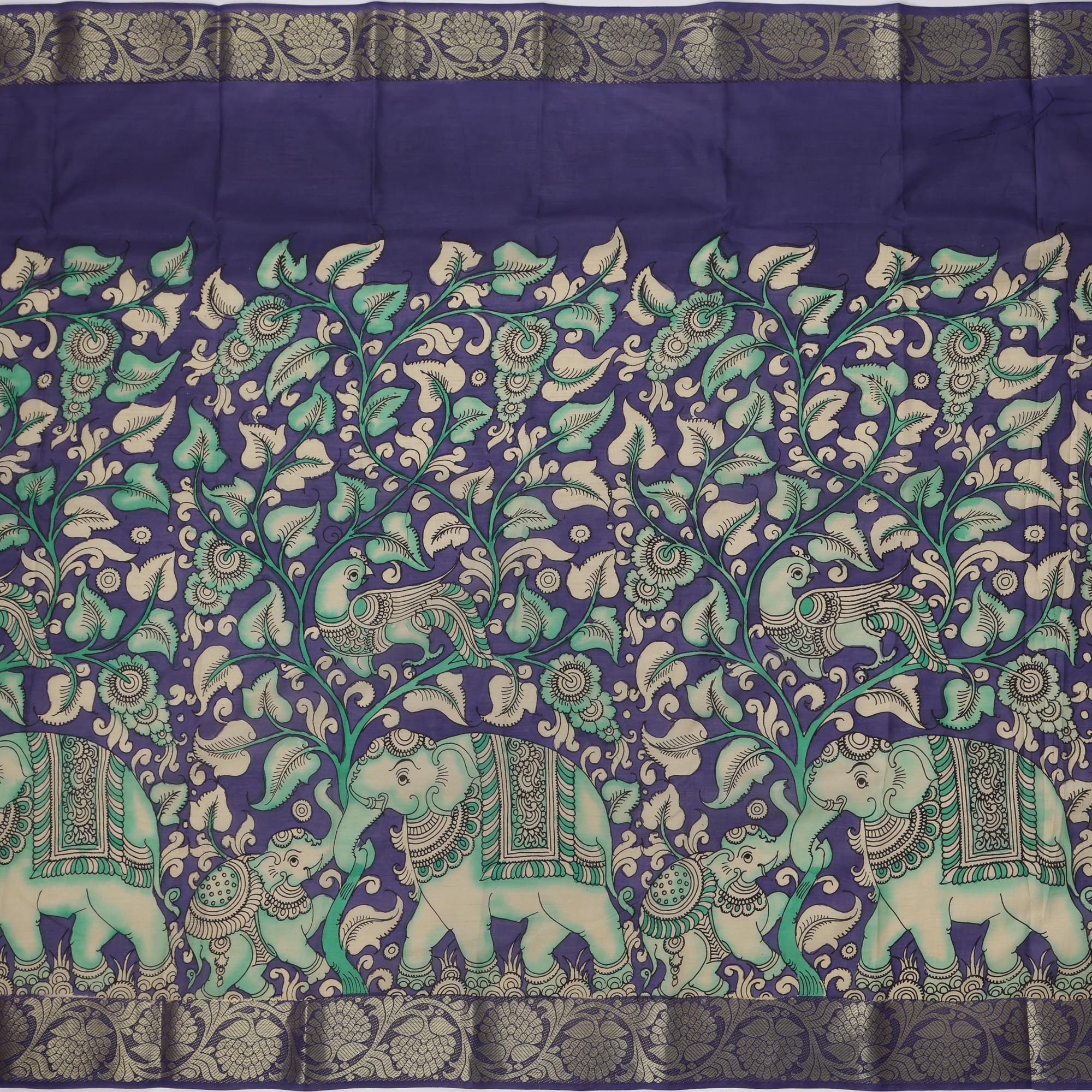 Antique Blue Tussar Silk Pen Kalamkari Saree with Handpainted Mythological Motifs, Width 110 Cms, Origin: Sri Kalahasthi, India, 5.5 Mtrs with Blouse Piece-D22850