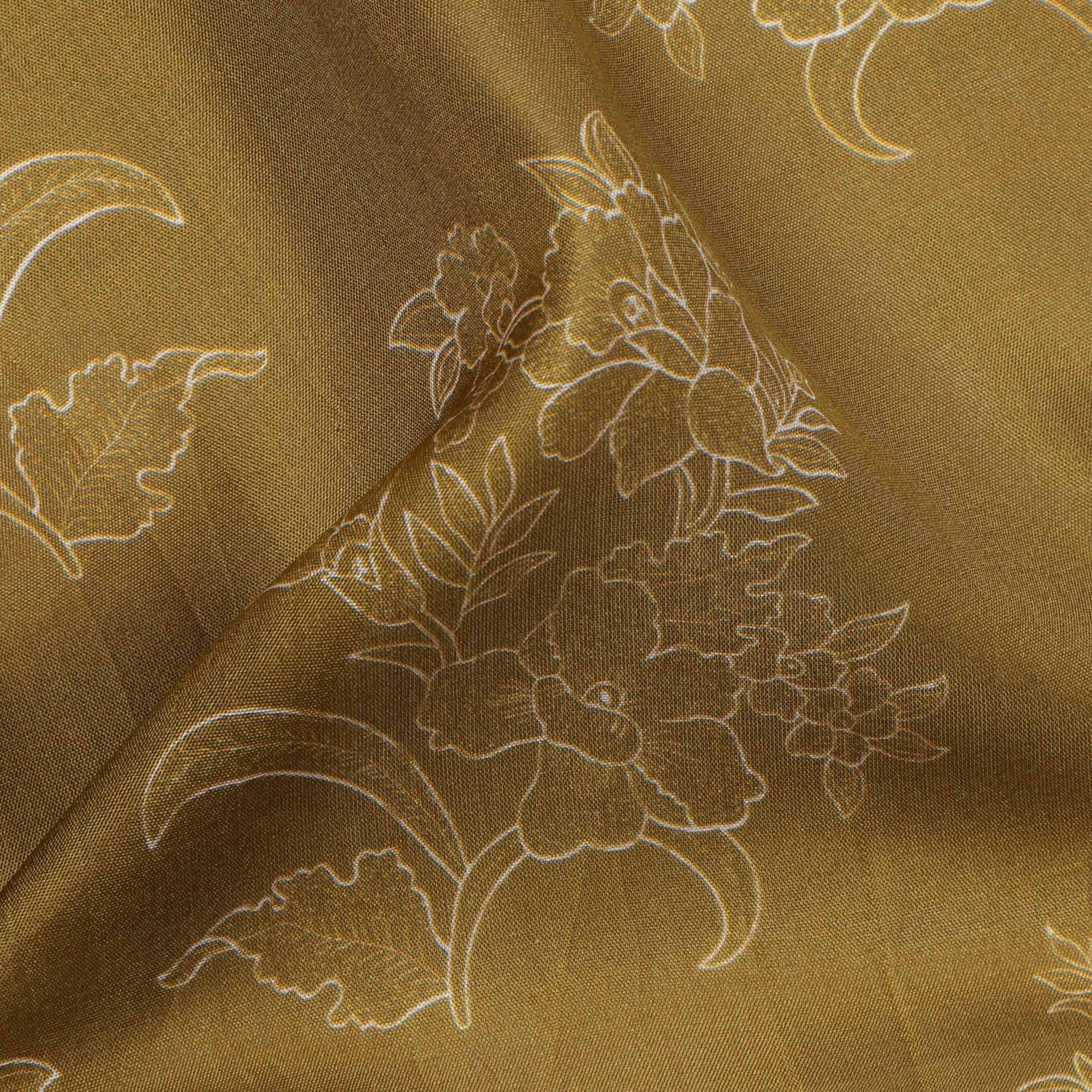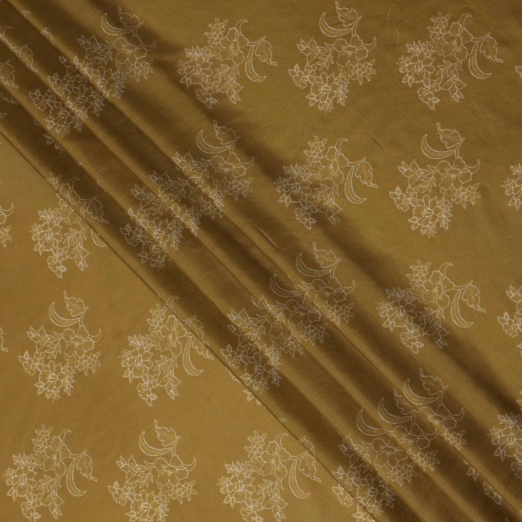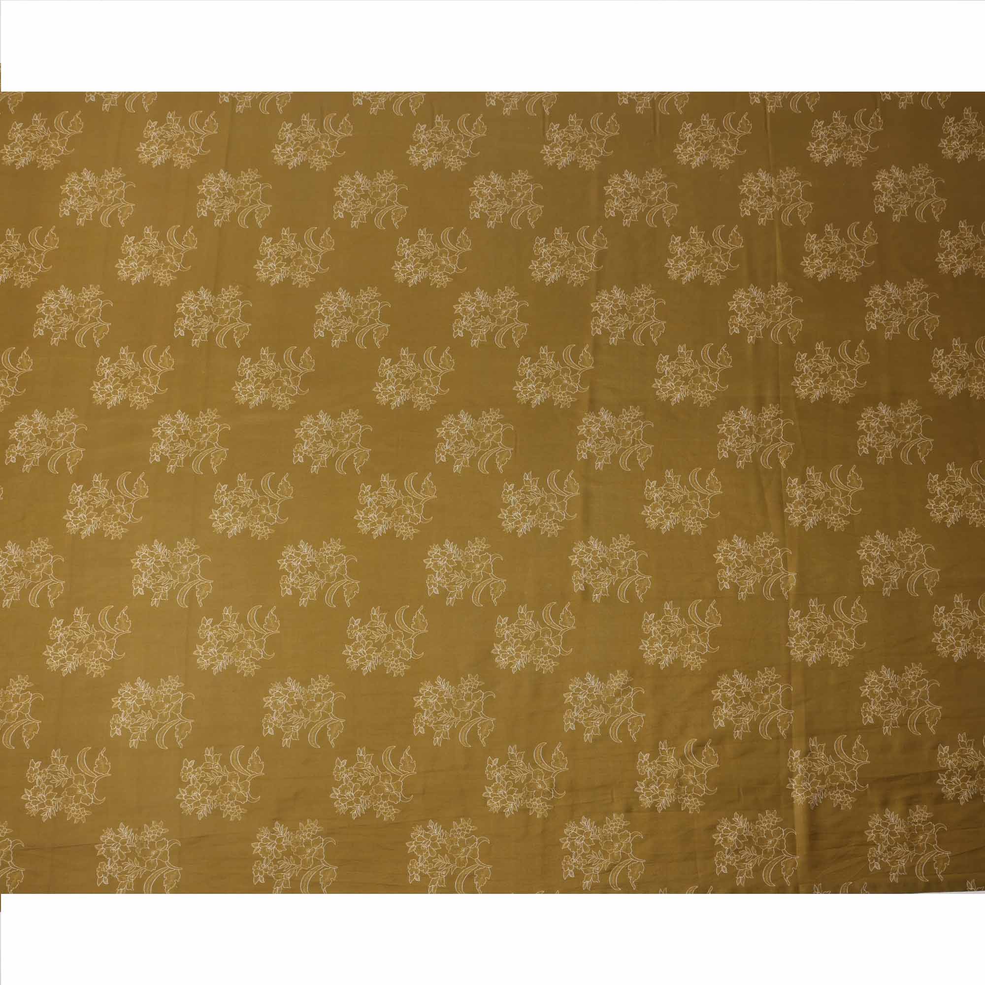 Antique Mustard with Beige Floral Outline Print Viscose Crepe Fabric, 110 Cms Width, Made in India-D23602