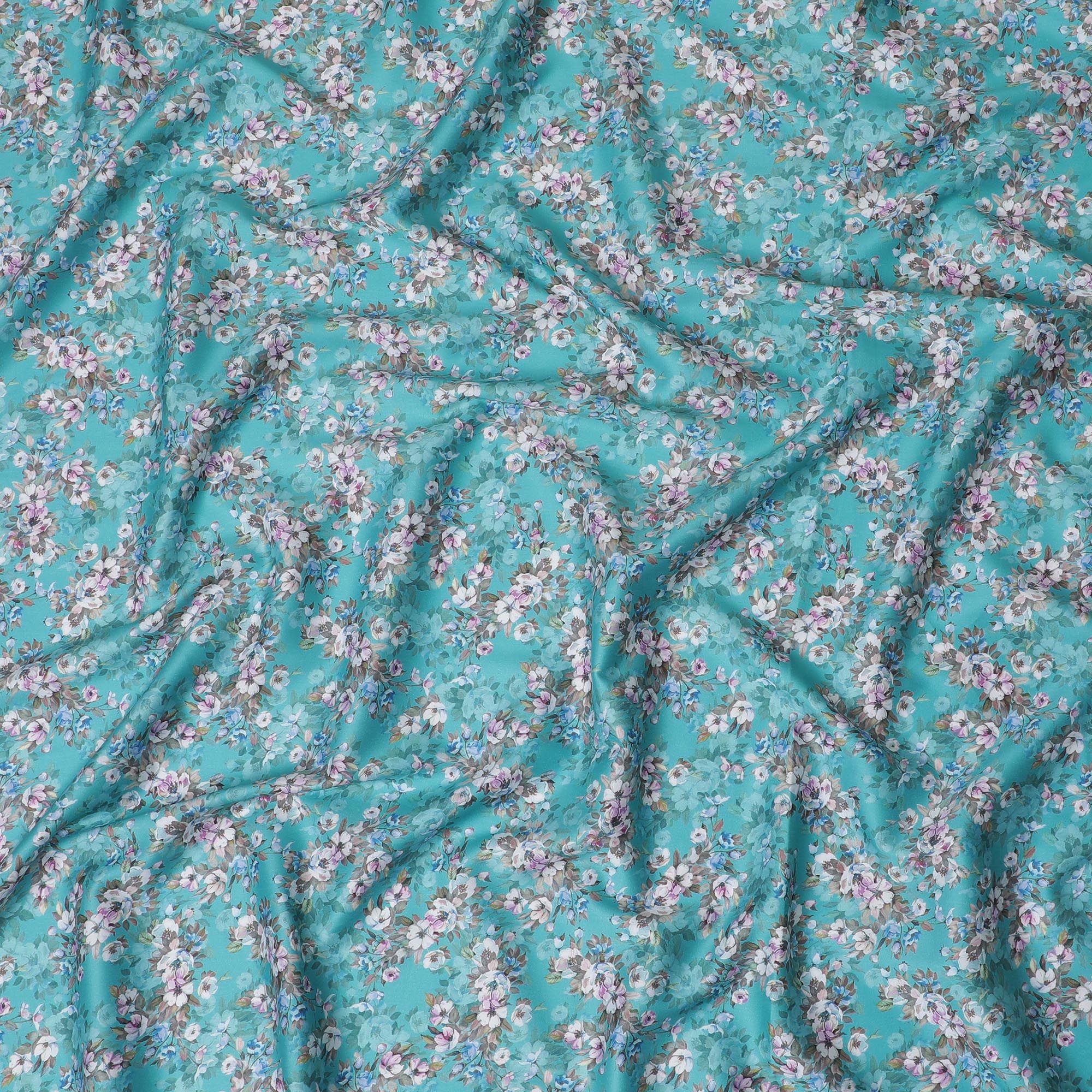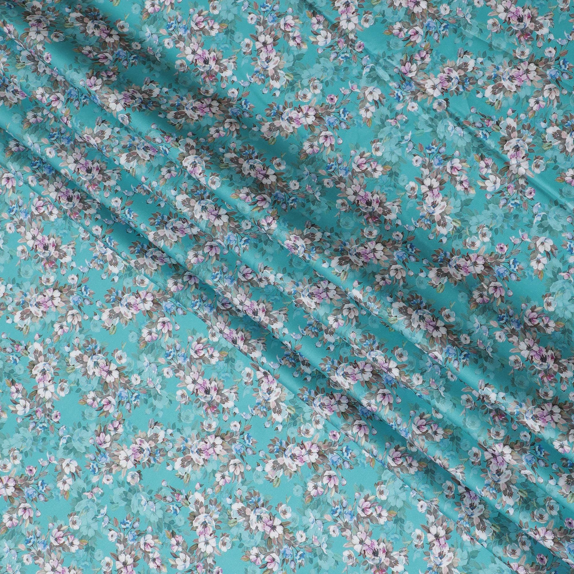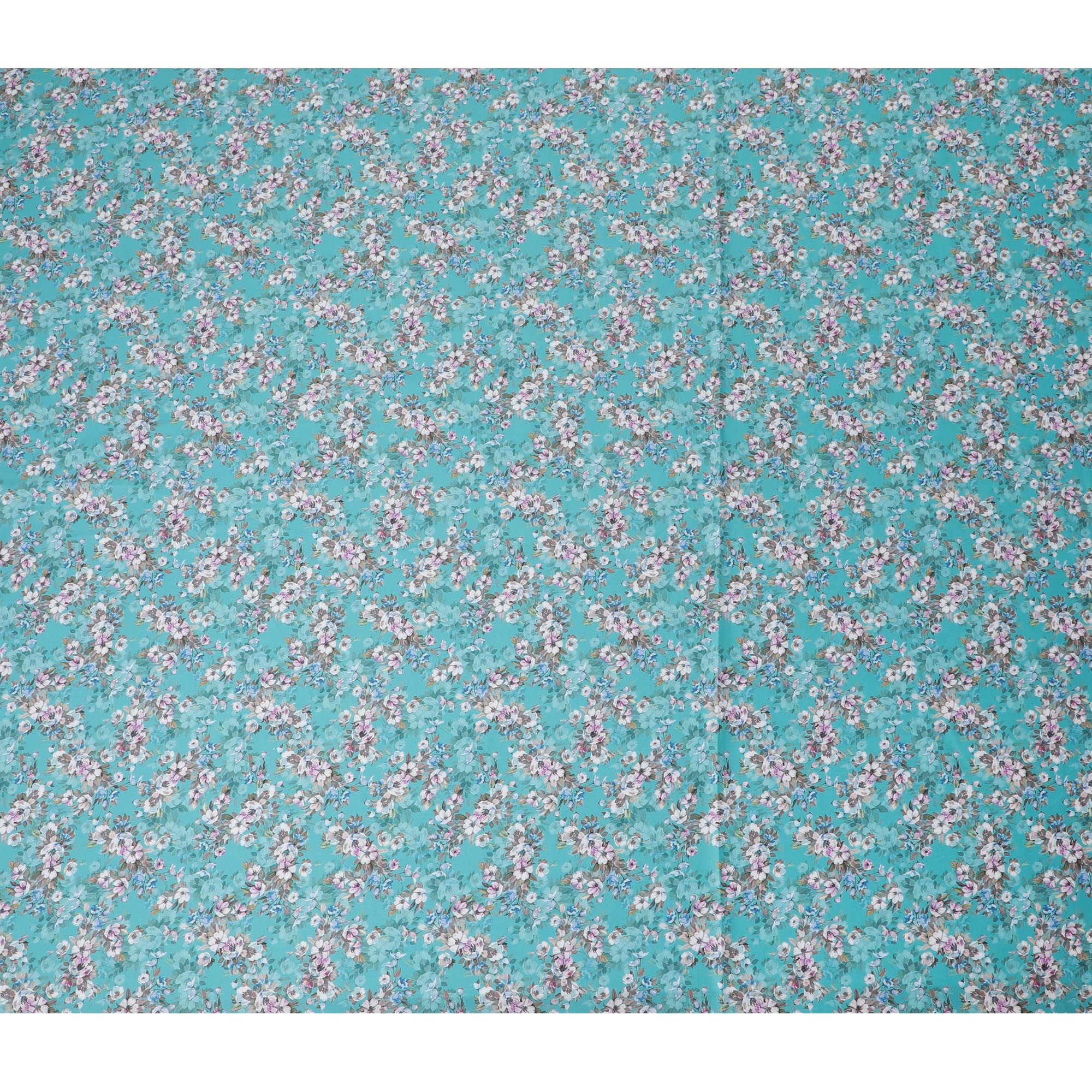 Aqua Blossom Cotton Lawn Fabric - Vibrant Floral Print, 110cm Wide, Buy Online-D18002