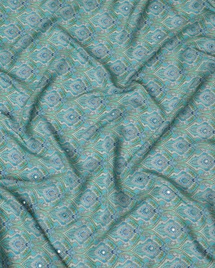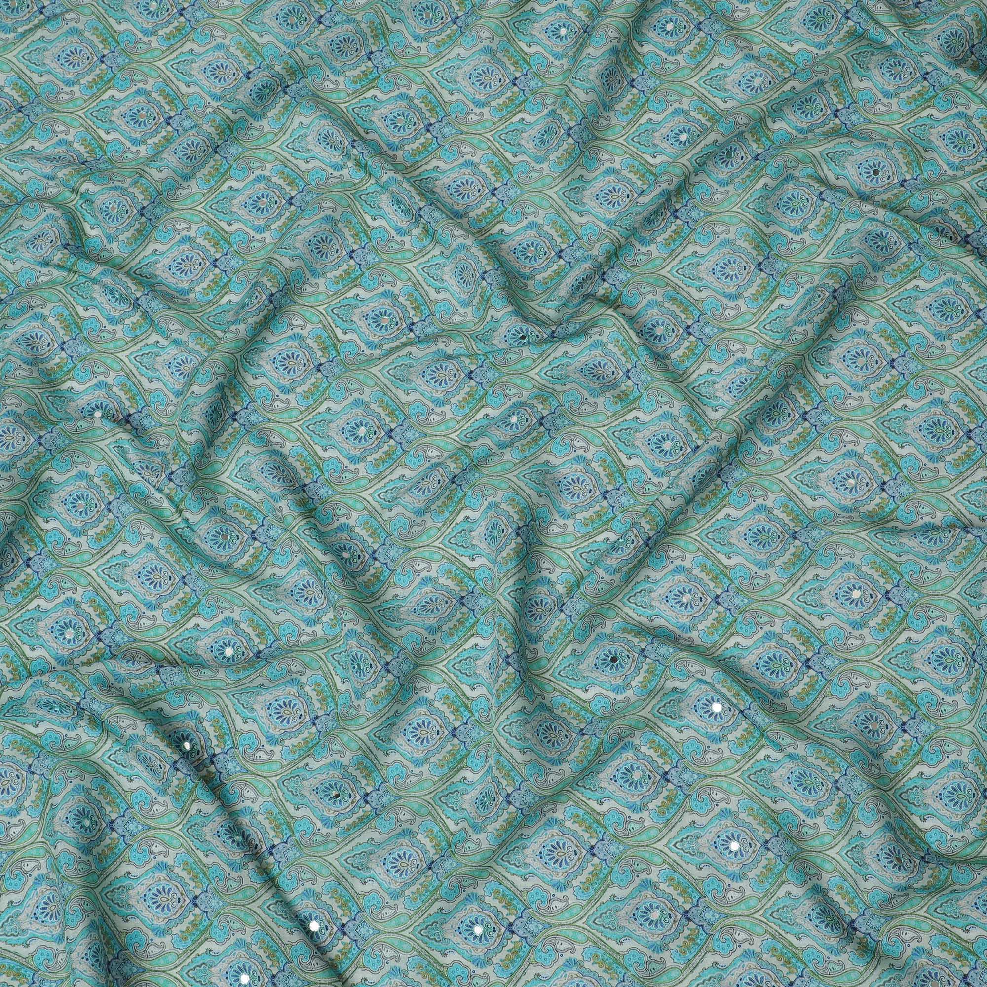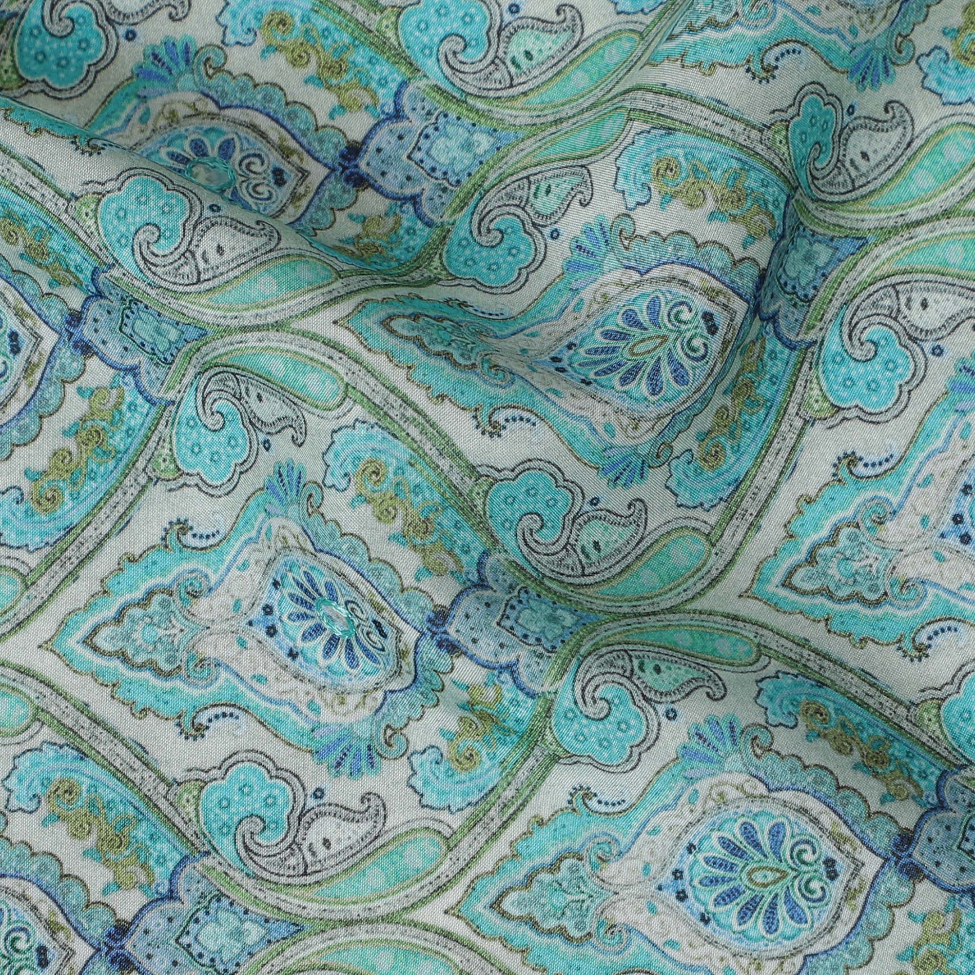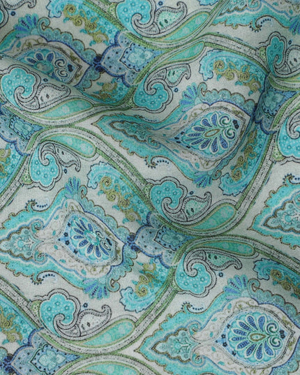 Aqua Blue and Green Paisley Viscose Crepe Printed Fabric - 110 cm Wide-D20008