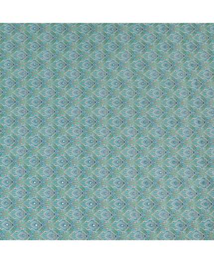 Embrace the timeless elegance of our Aqua Blue and Green Paisley Viscose Crepe Printed Fabric, featuring a delicate paisley pattern... Read more Read more