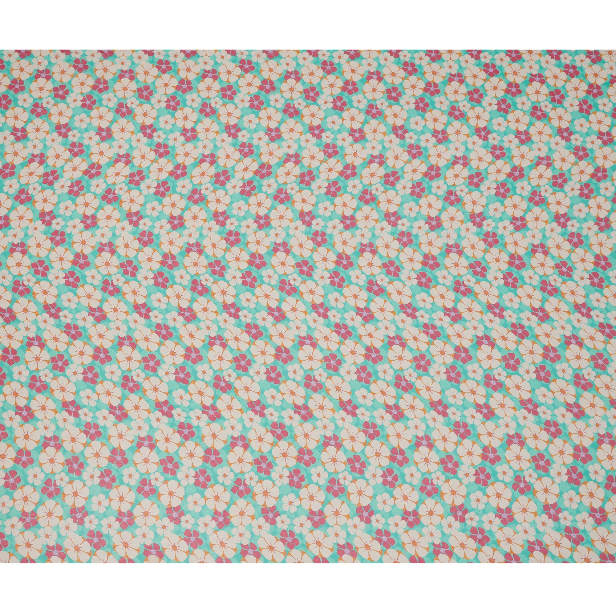 Aqua blue base with bold floral print in off-white, magenta, and orange