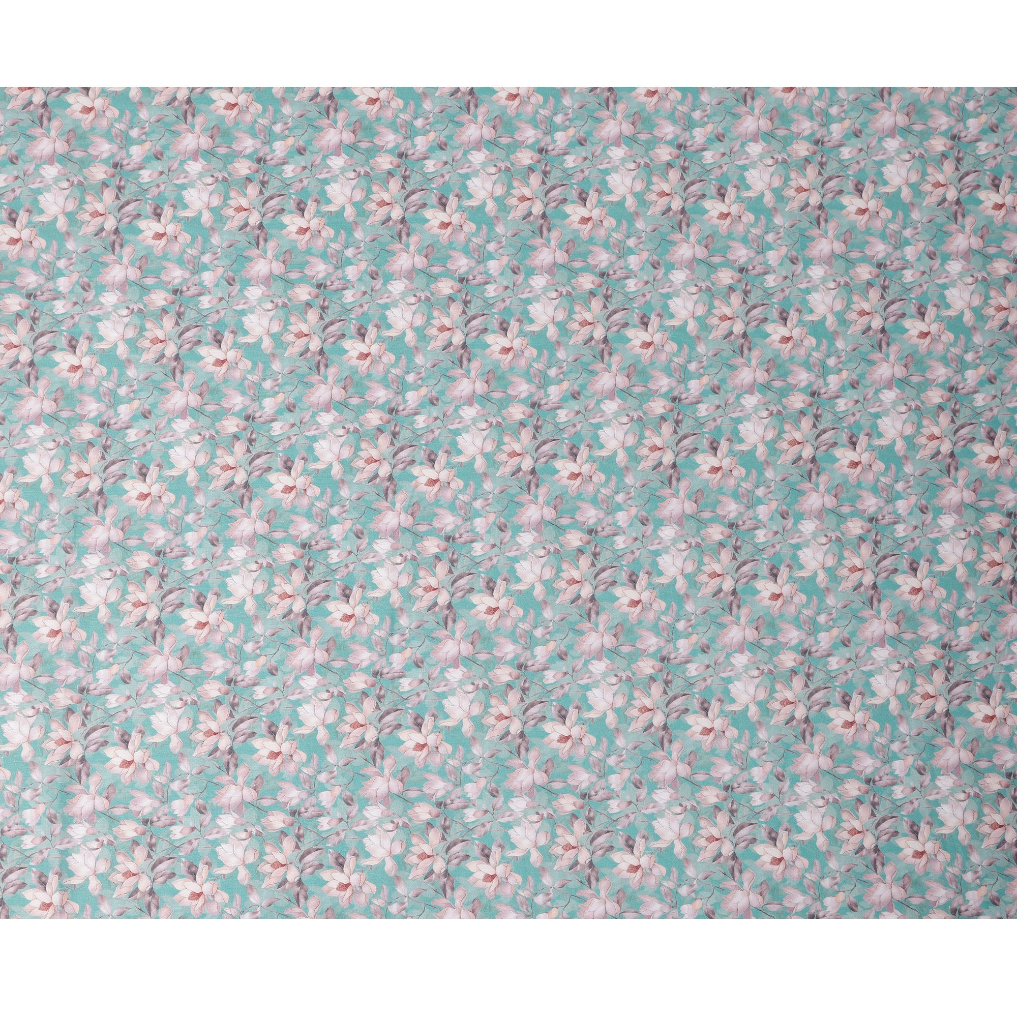 Enhance your wardrobe and décor with this aqua blue cotton satin fabric, beautifully adorned with a delicate white and pink... Read more Read more
