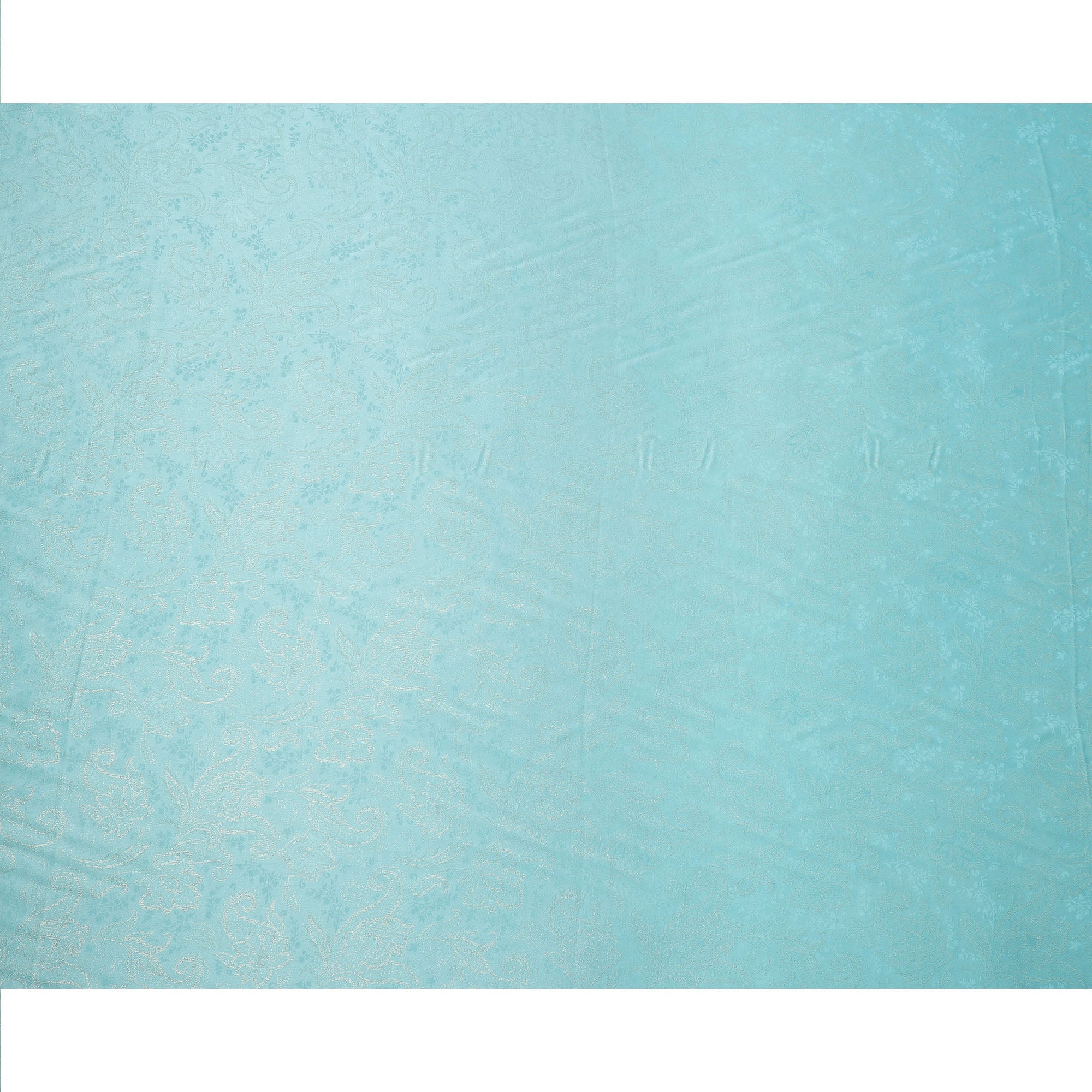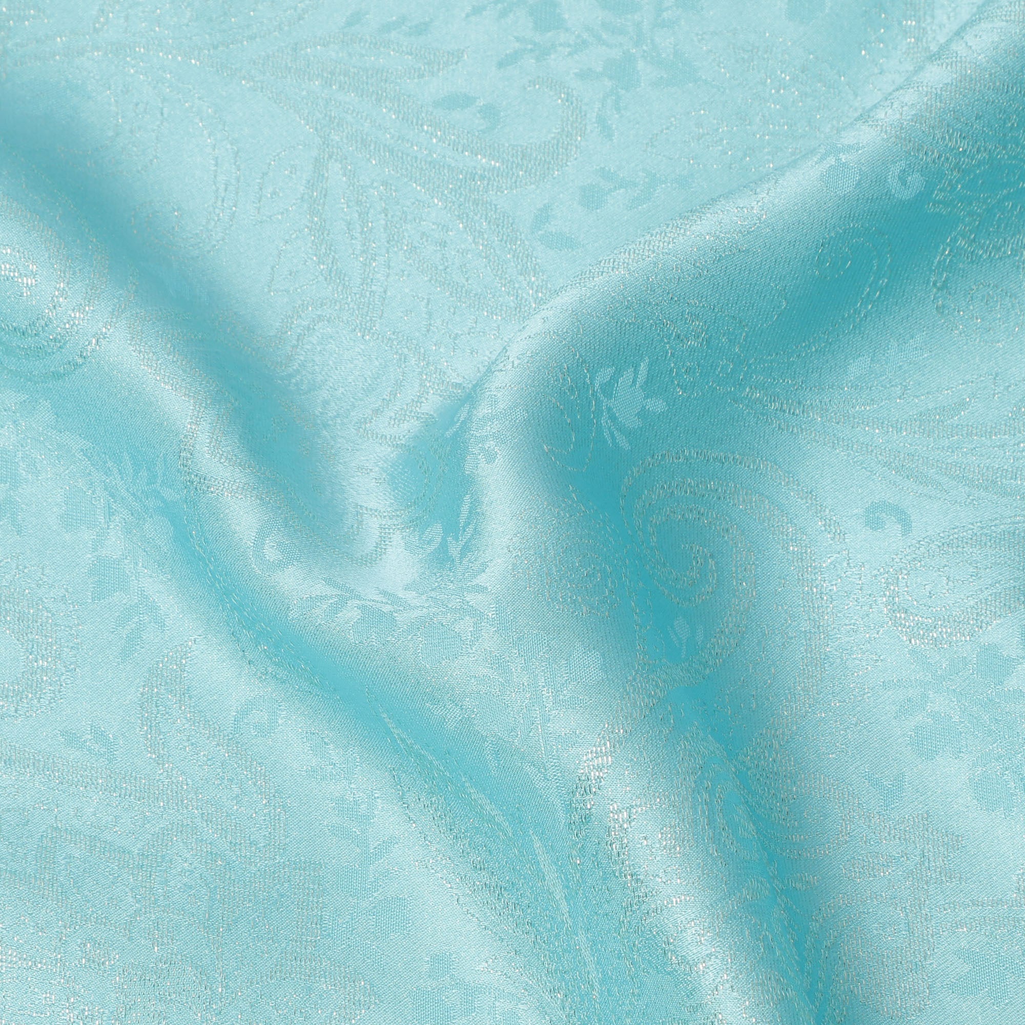 Aqua Blue Paisley Self-Design Pure Silk Satin Fabric, Width 140 Cms, Made in India-D23901