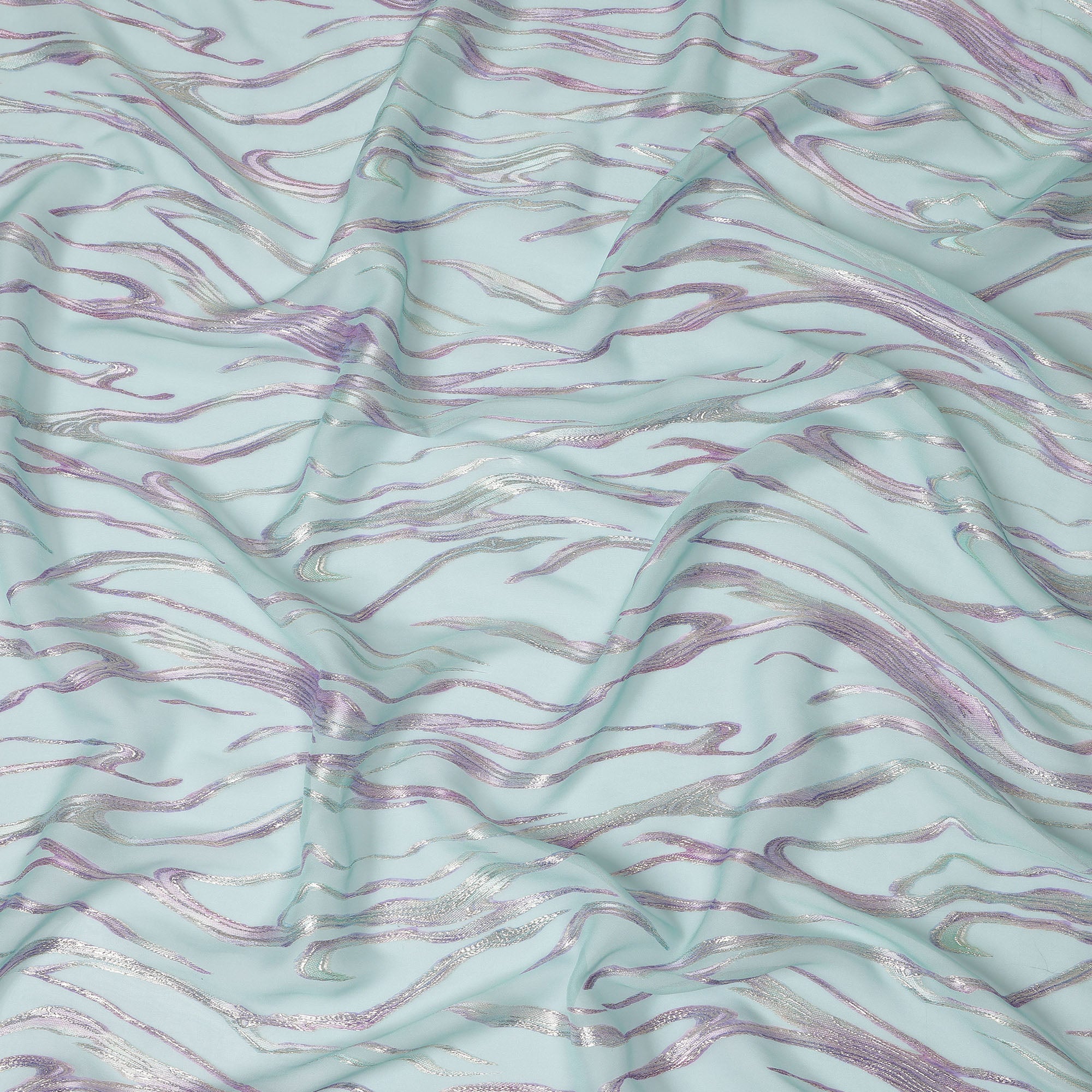 Aqua Blue Premium Pure Silk Chiffon Fabric with Metallic Lurex Design 110 Cms Width, Made in South Korea-D25862