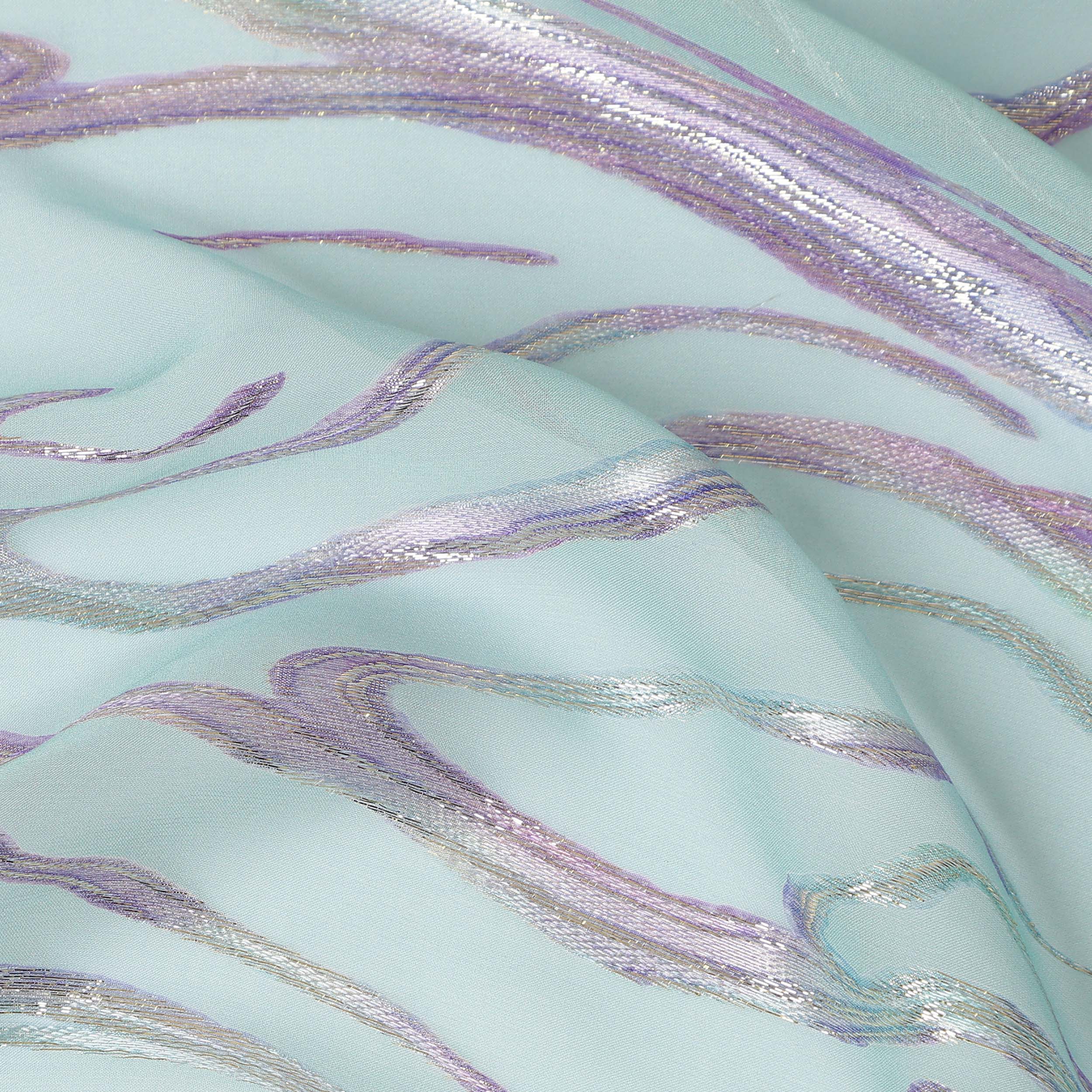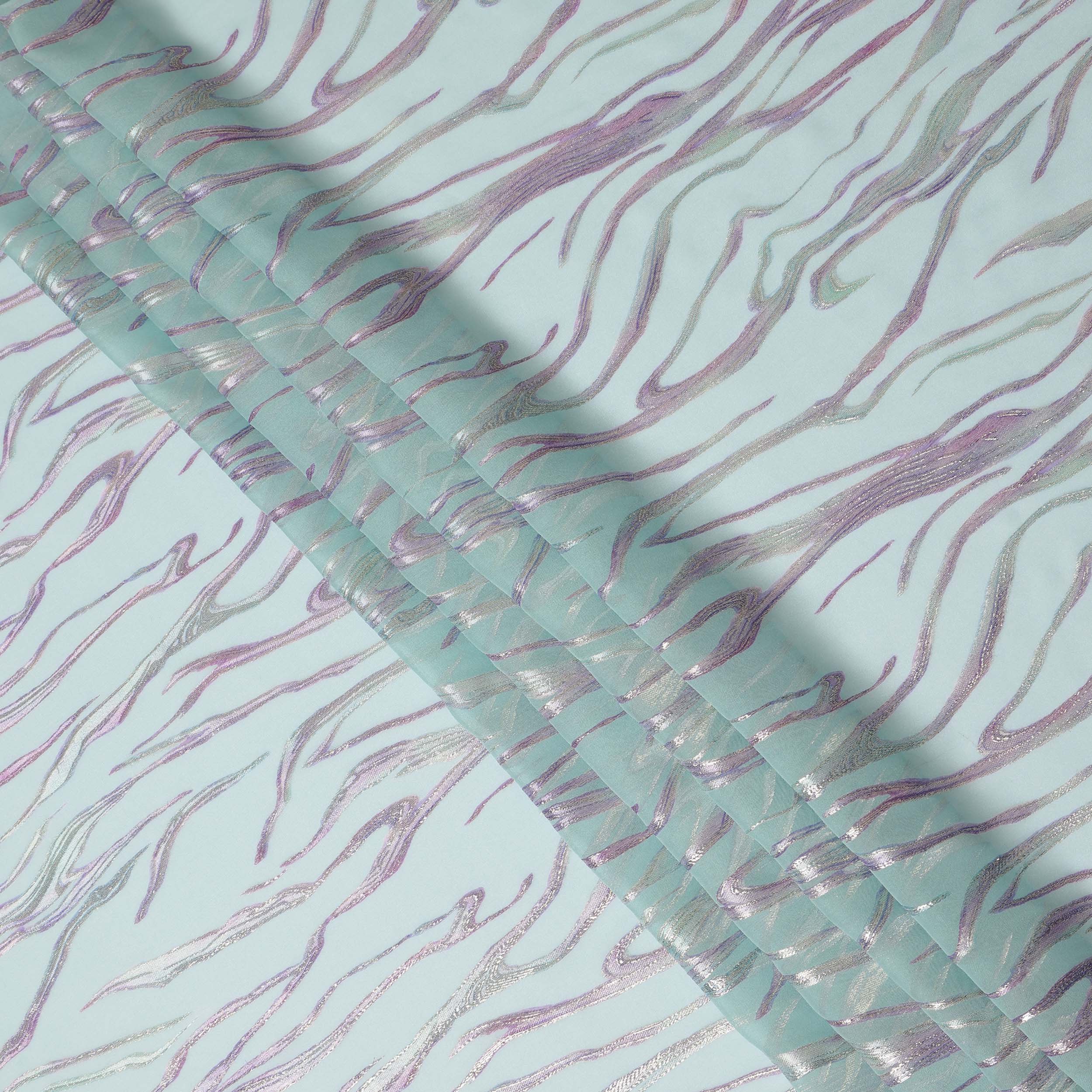 Aqua Blue Premium Pure Silk Chiffon Fabric with metallic lurex woven detailing