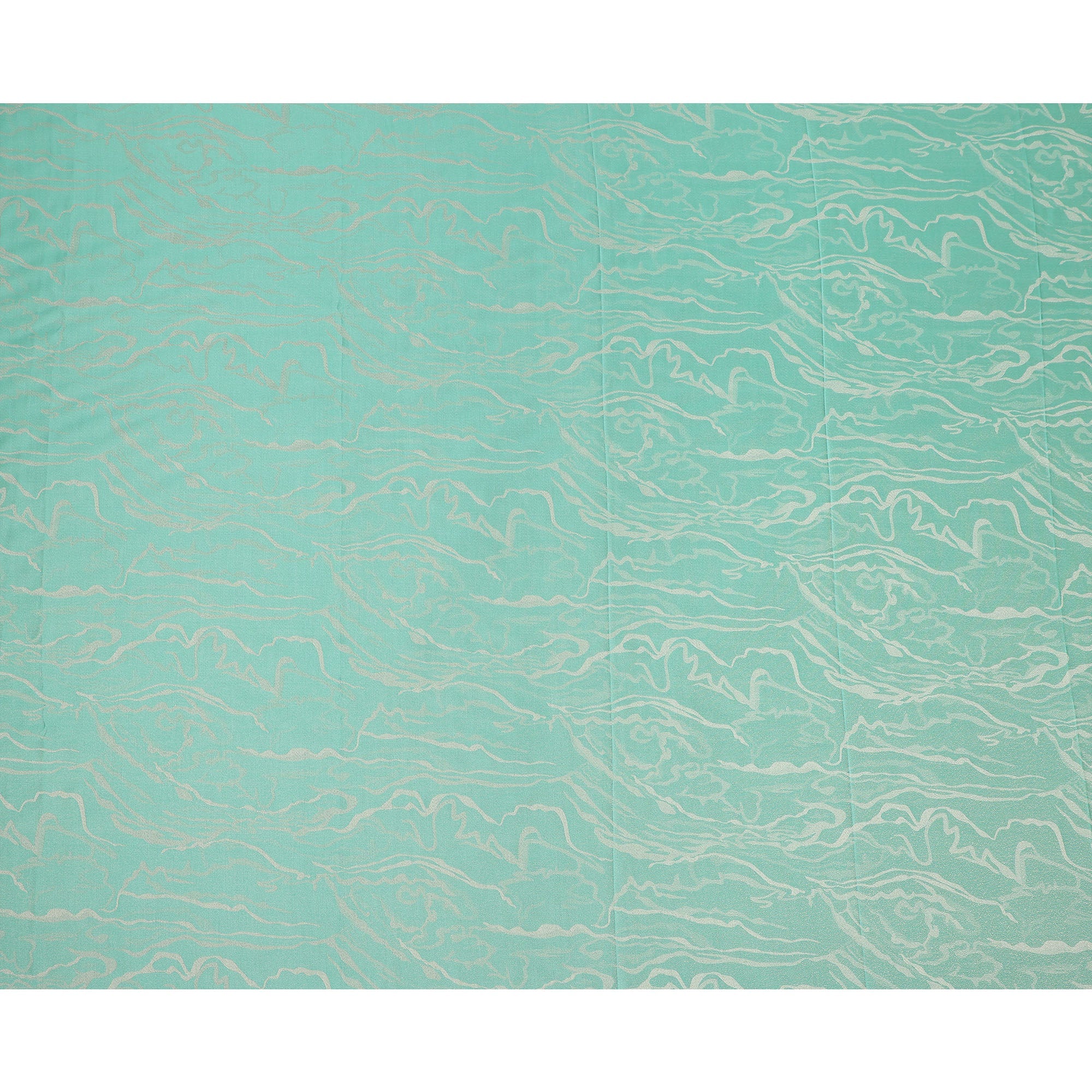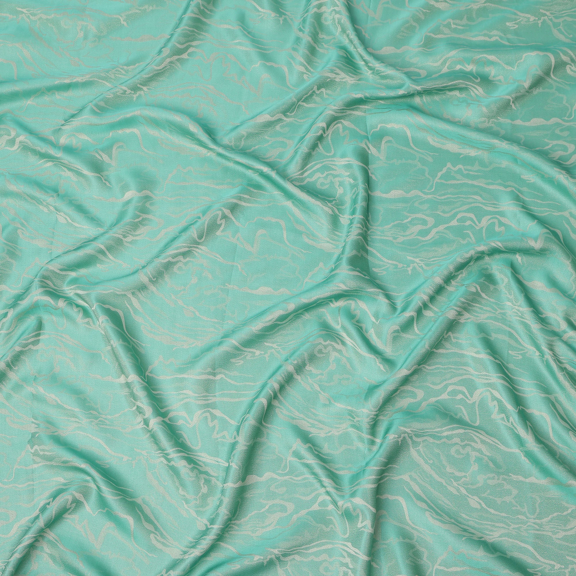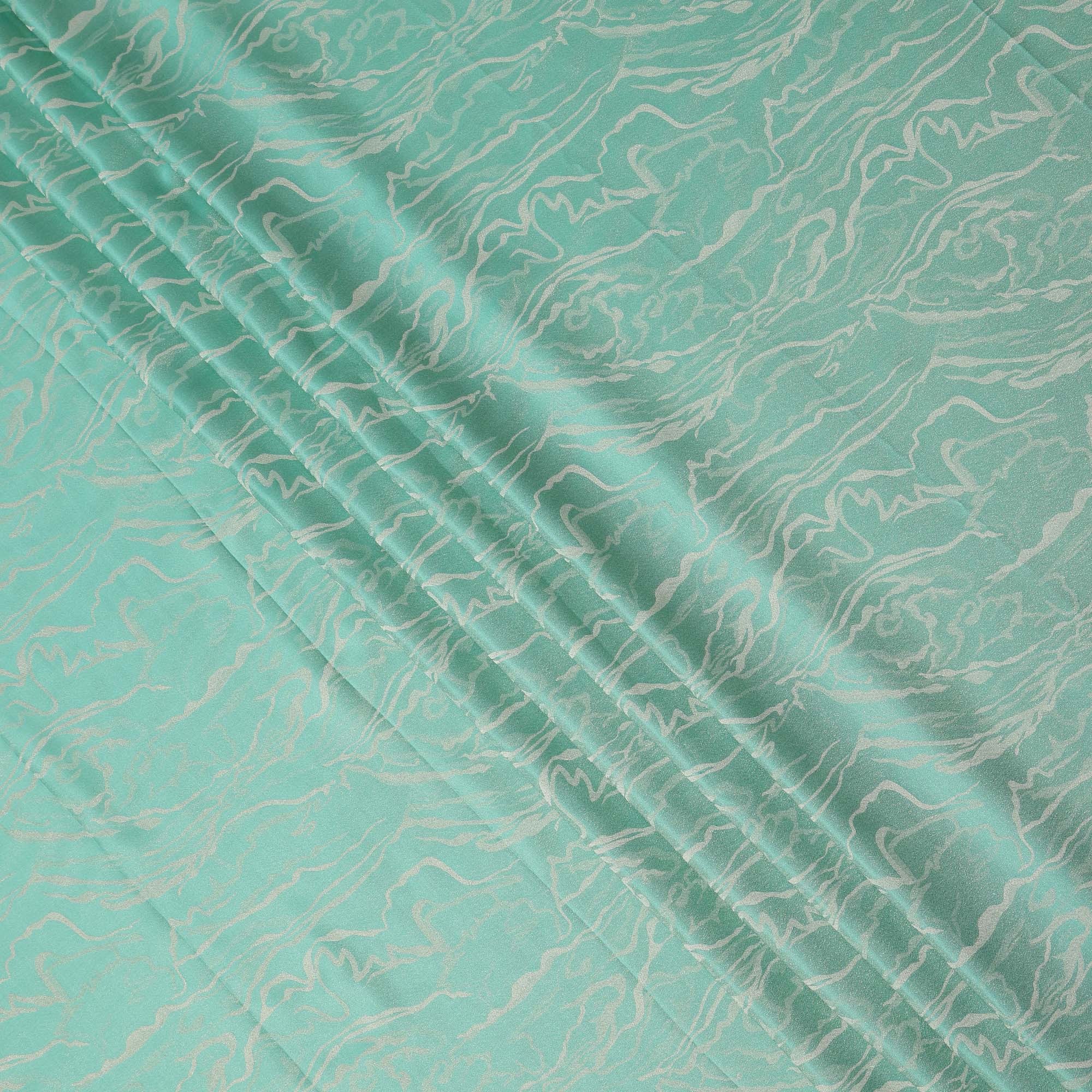 Aqua Blue Pure Silk Satin Fabric with Abstract Metallic Design, 140 Cms Width, South Korea-D25348