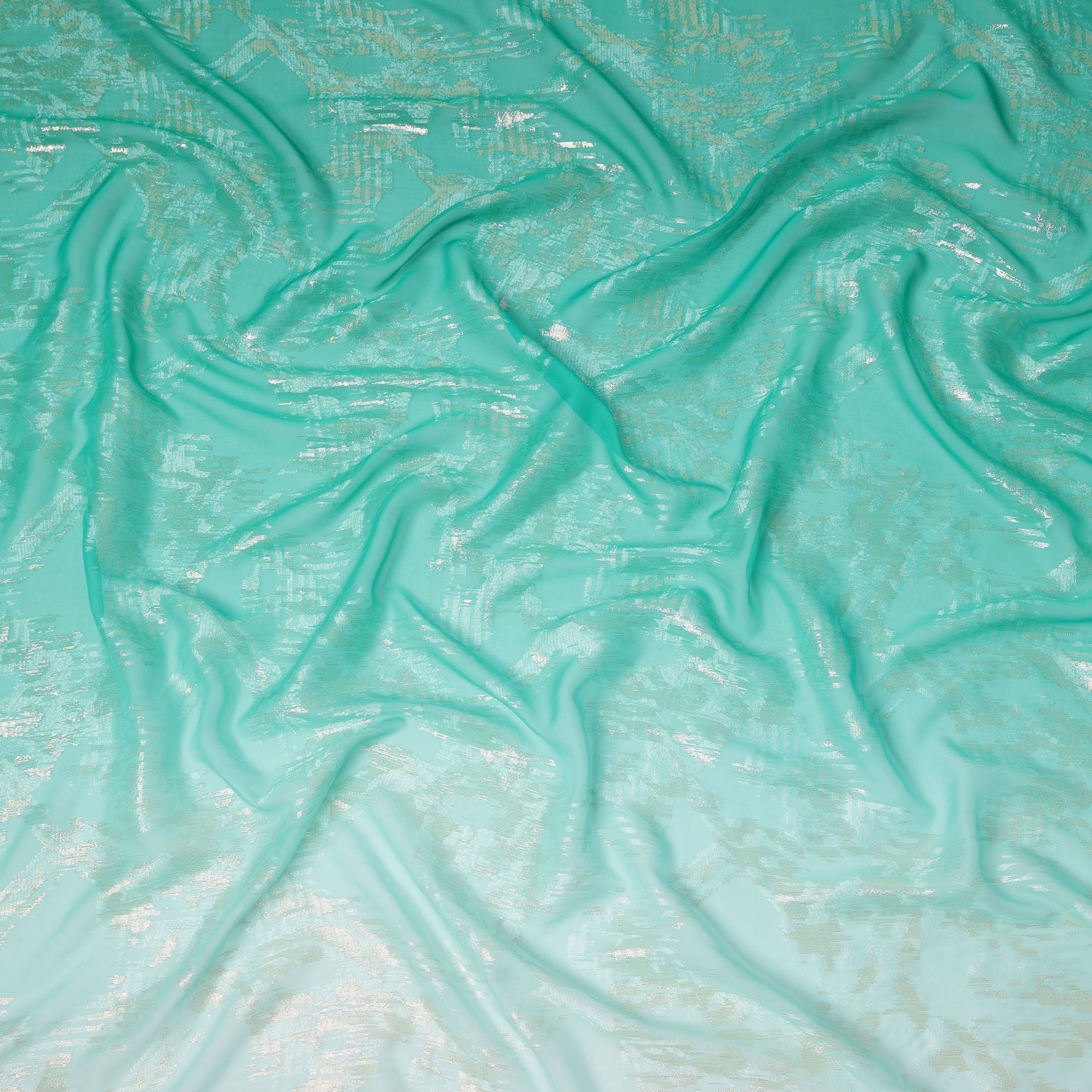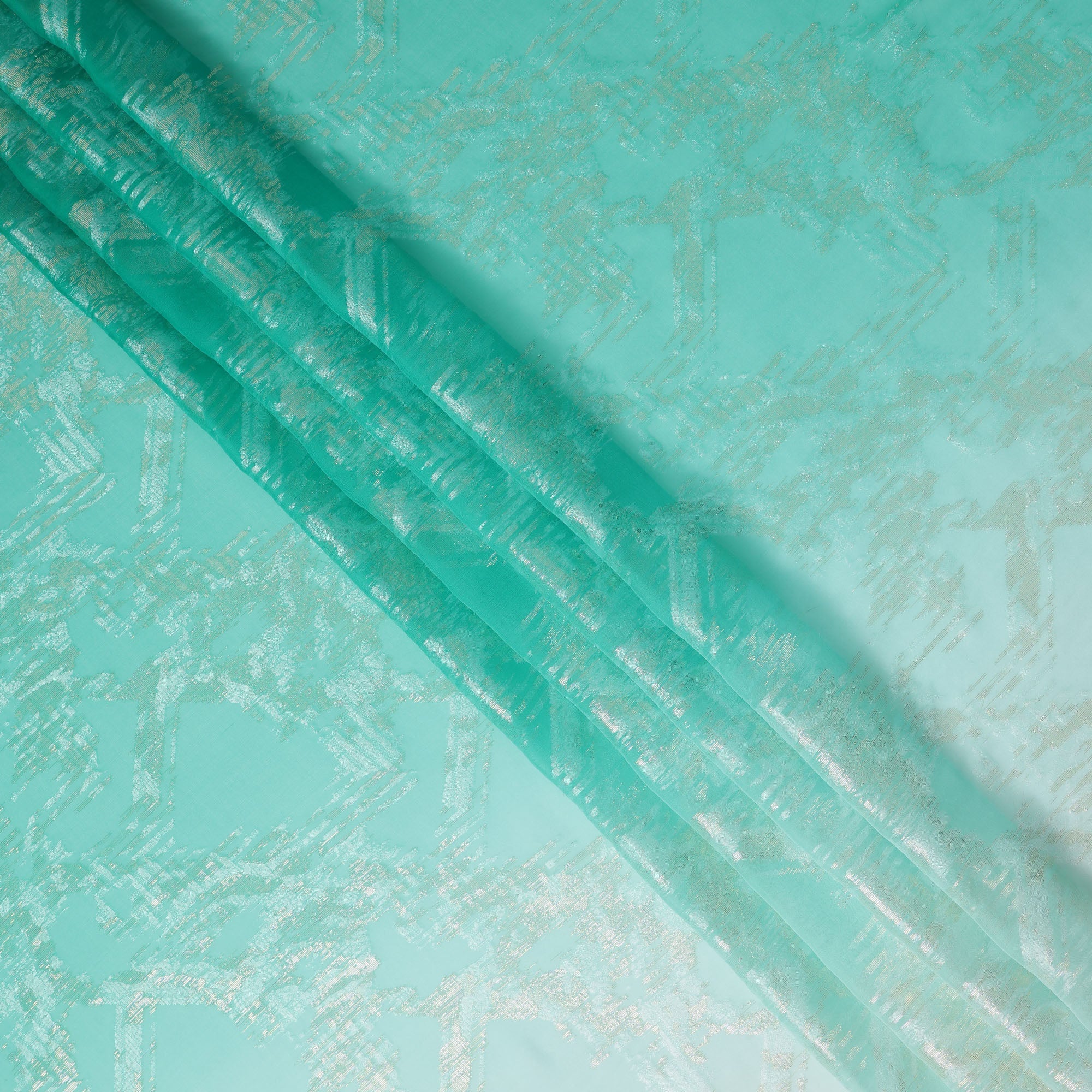 Aqua Green Silk Chiffon Fabric with Metallic Lurex, 110 Cms Width, South Korea-D24813