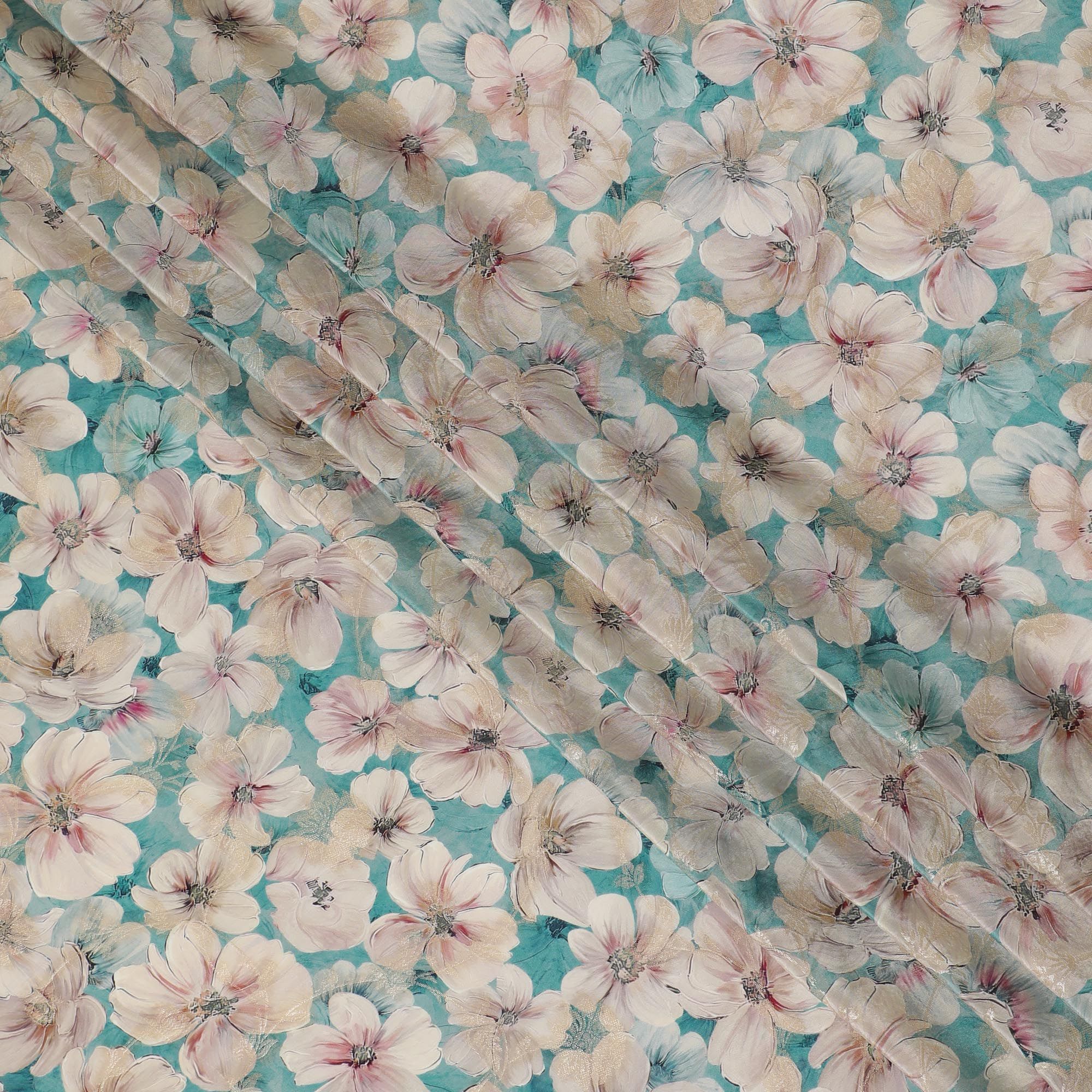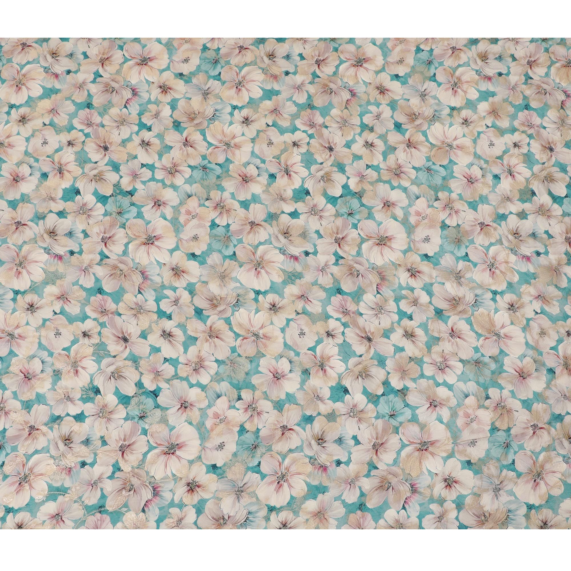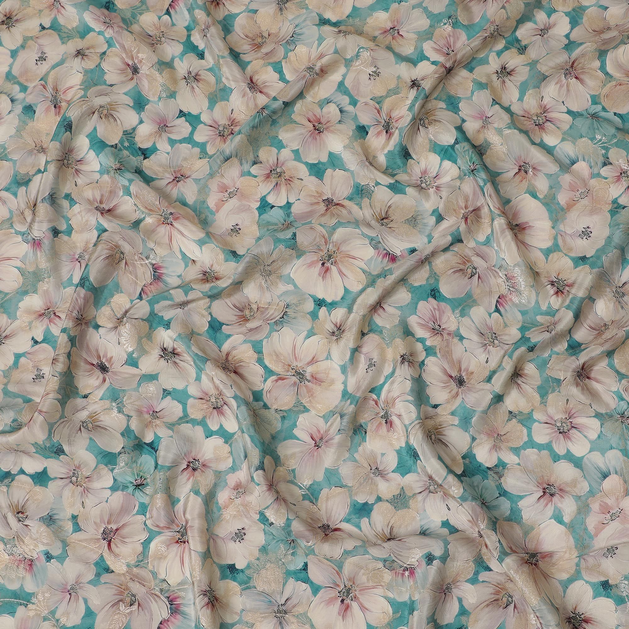 Aquatic Serenity Viscose Crepe Fabric - Soft Floral Print, Premium Indian Craftsmanship, 110cm Wide-D18723
