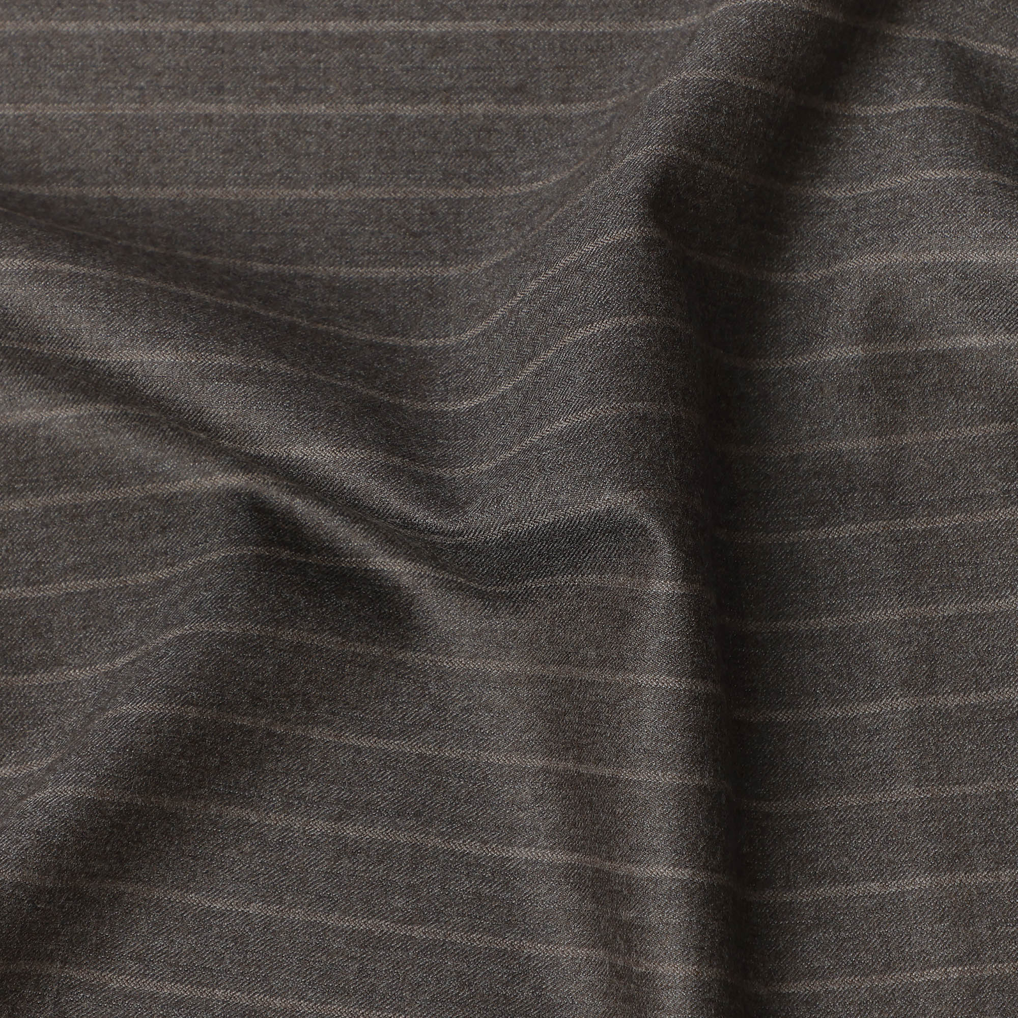 Ash Brown Pinstripe Super 140’s wool fabric offering refined contemporary elegance