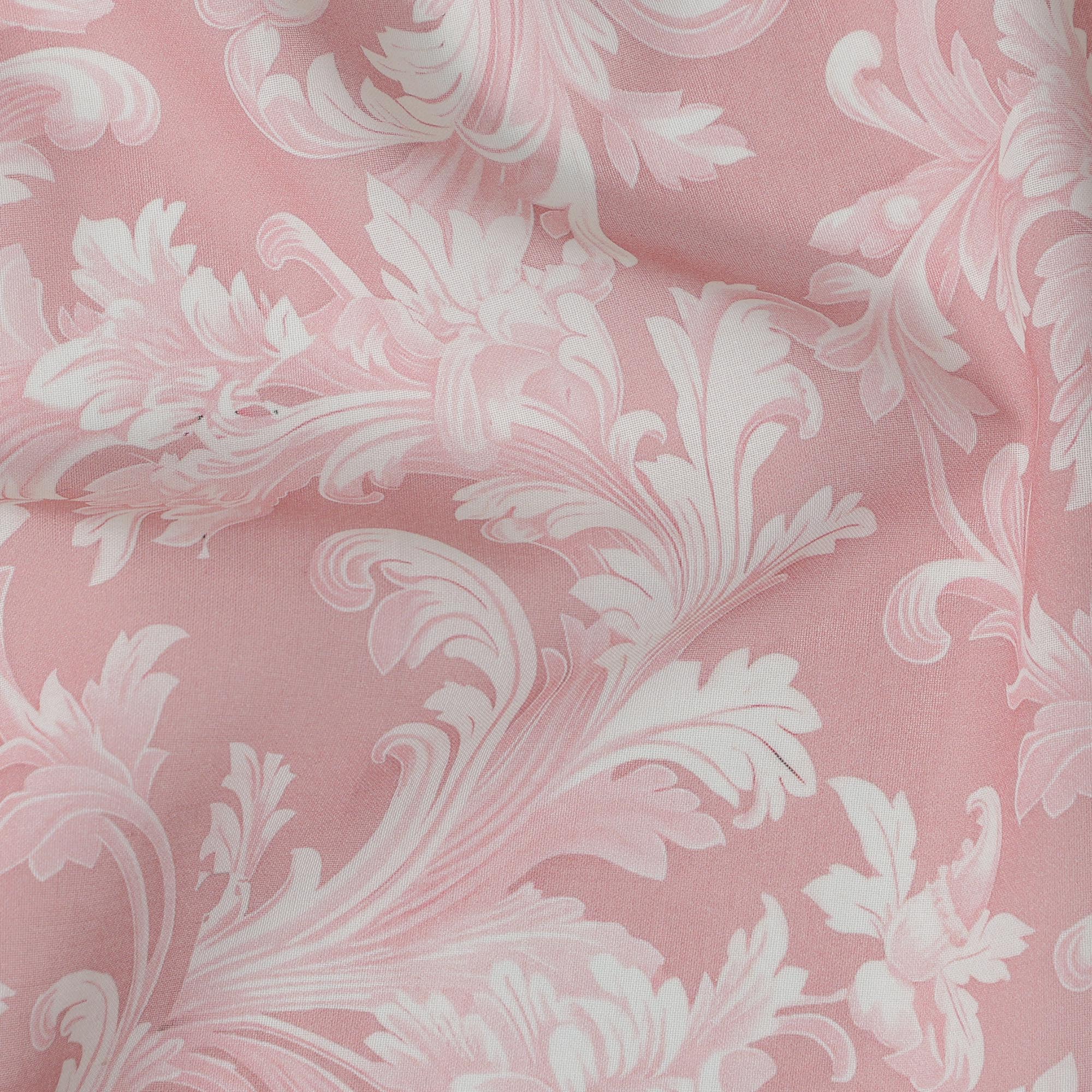 Baby pink base with elegant white baroque floral design adds sophistication.