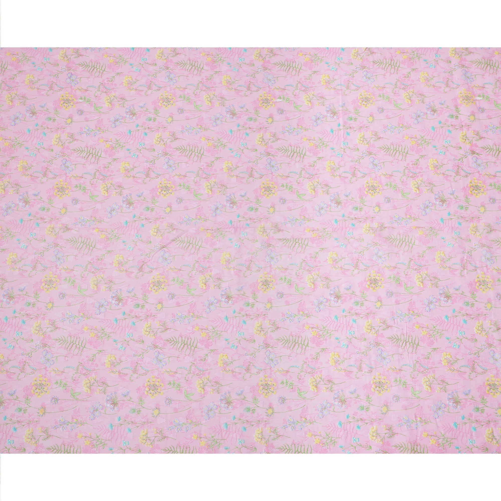 Baby Pink Botanical Floral Printed Cotton Voile Fabric with Pastel Yellow and Blue Accents, 110 Cms Width, Made in India-D24252