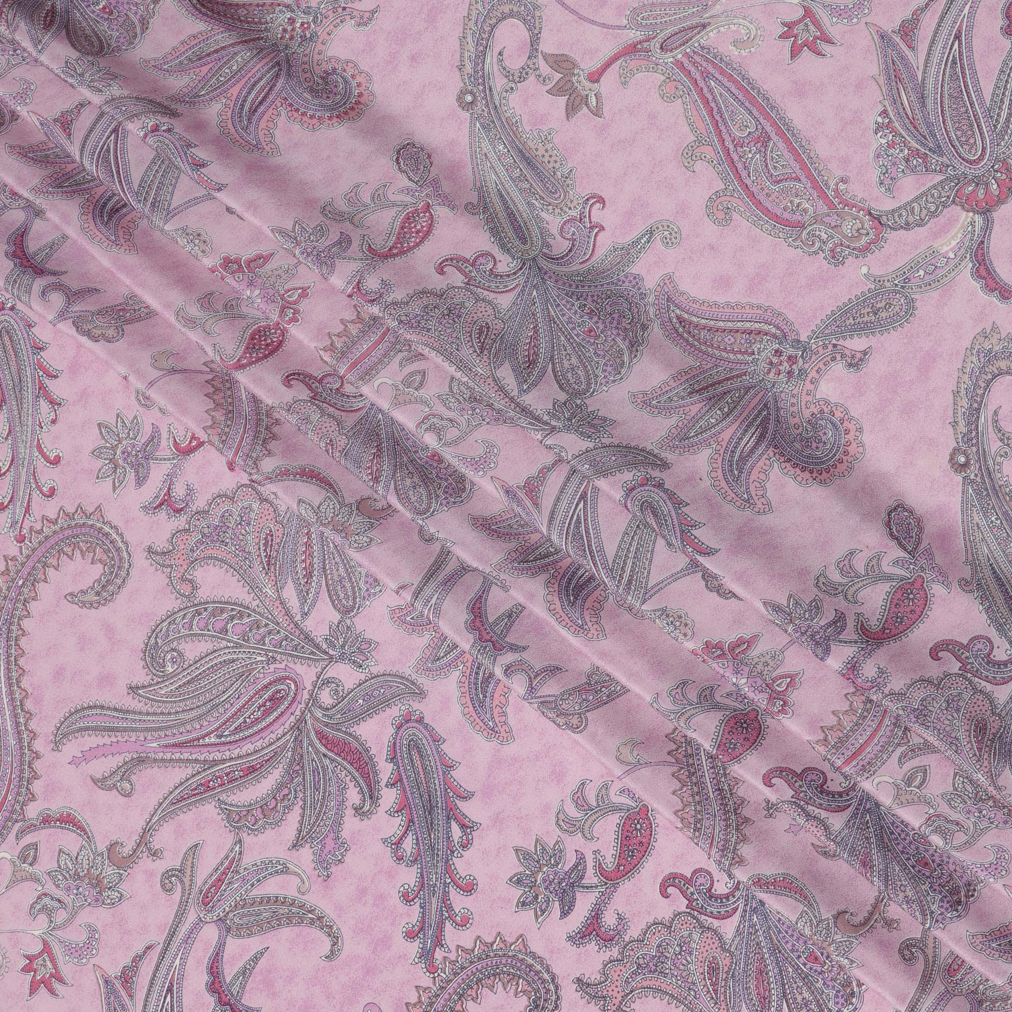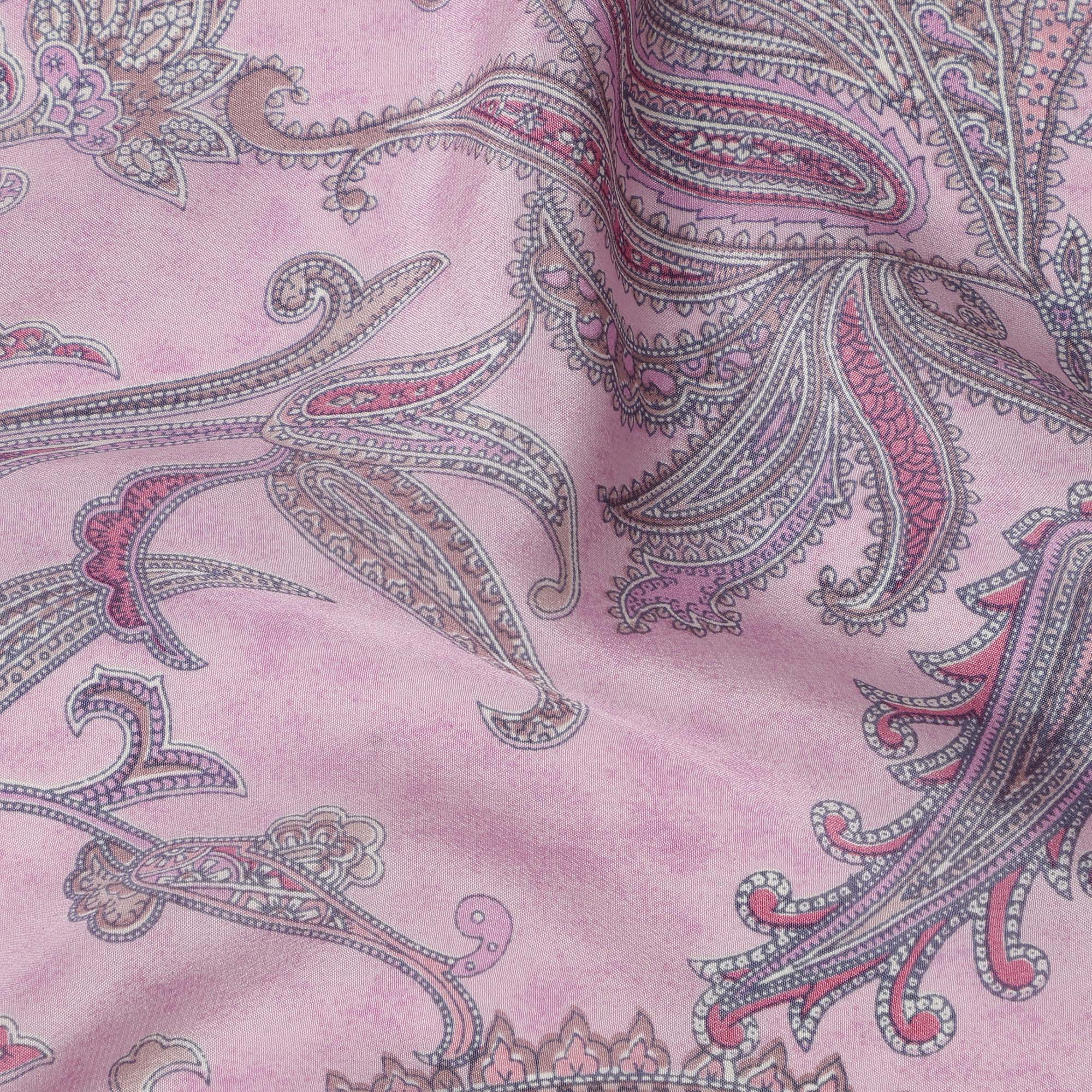 Baby Pink with Multicolor Paisley Floral Print Pure Silk Crepe Fabric, 110 Cms Width, Made in India-D23164