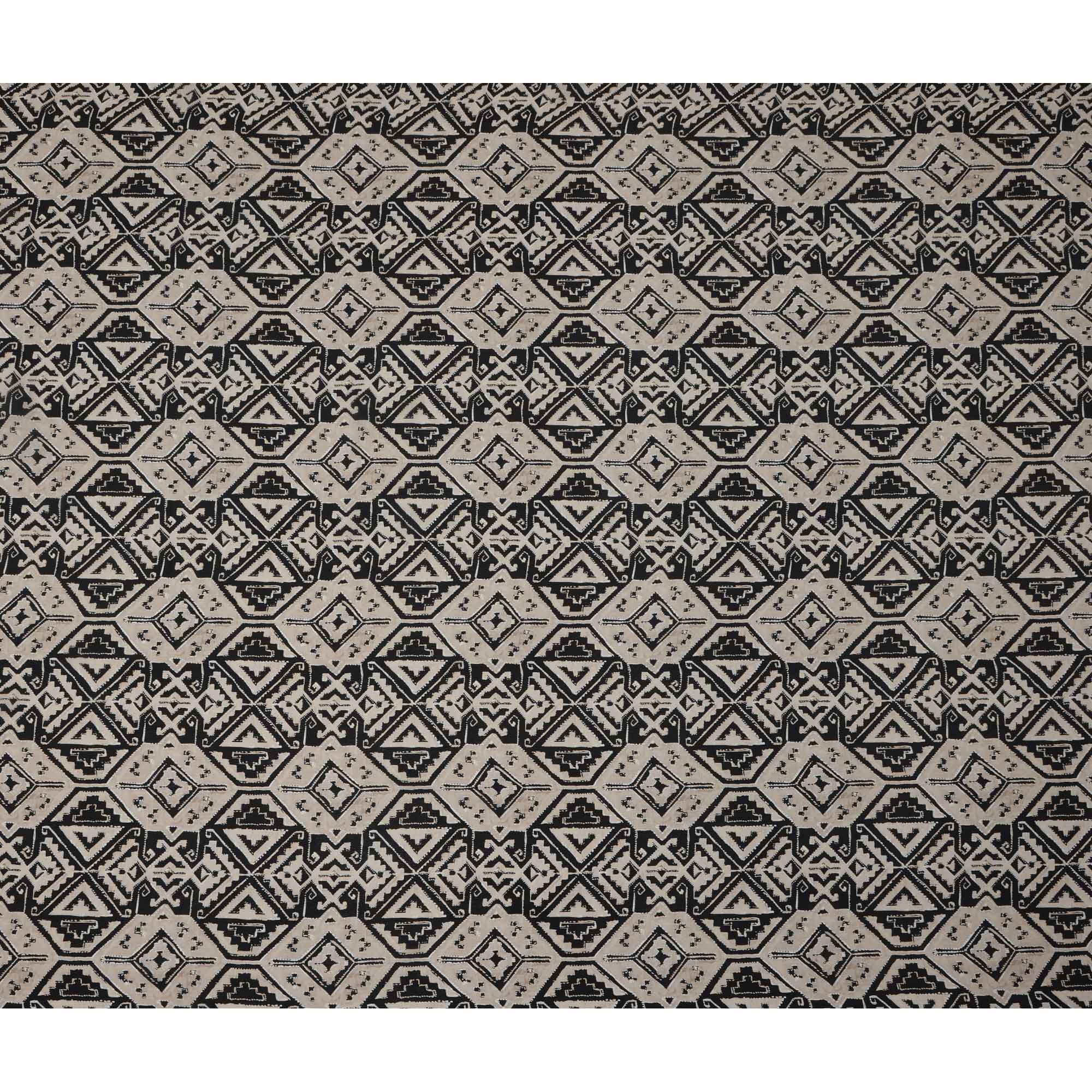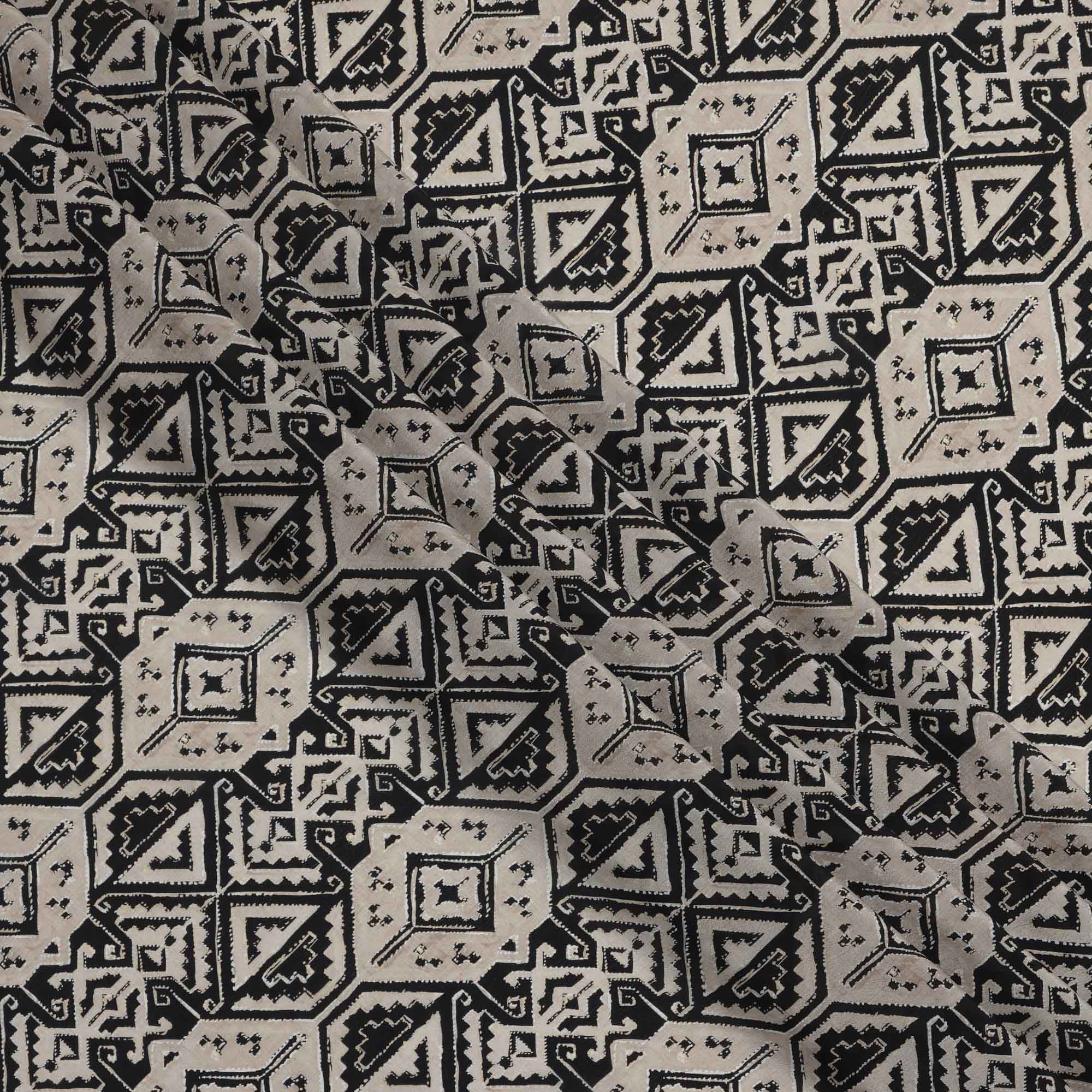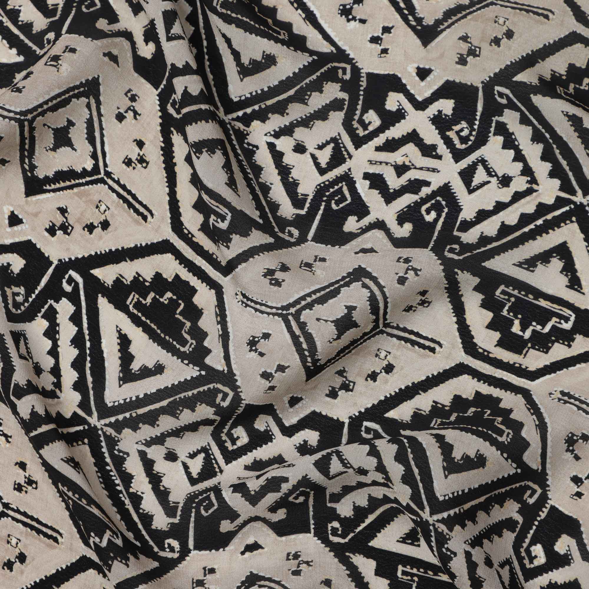 Beige and Black Tribal Geometric Printed Viscose Crepe Fabric, Ethnic Aztec-Inspired Motifs, 110 Cms Width, Made in India-D23454
