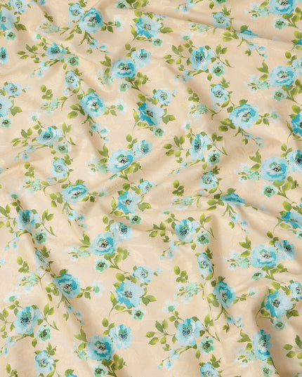 Elevate your creations with this luxurious beige and blue floral Uragiri cotton voile fabric featuring an elegant jacquard pattern. The soft beige base is adorned with delicate blue flowers and green foliage, exuding a timeless charm and sophistication. Crafted from premium-quality cotton voile sourced from Japan, this fabric is lightweight, breathable, and semi-sheer, making it perfect for dresses, tops, scarves, and even home décor accents. With a width of 110 cm, this fabric combines the elegance of jacquard with the comfort of cotton, offering both versatility and durability for your sewing projects.