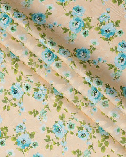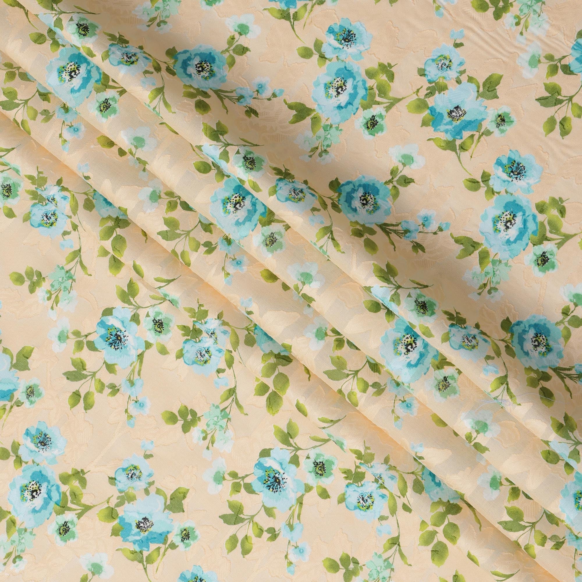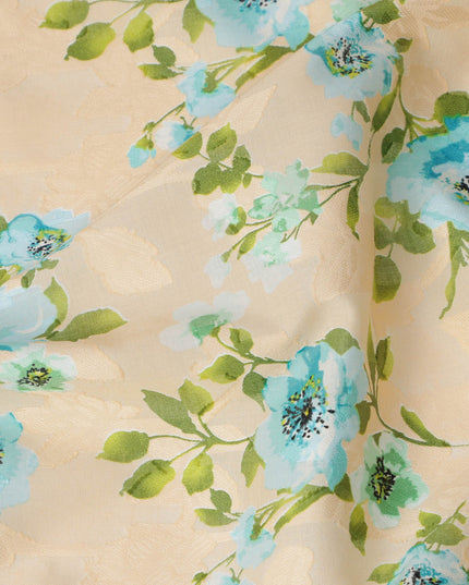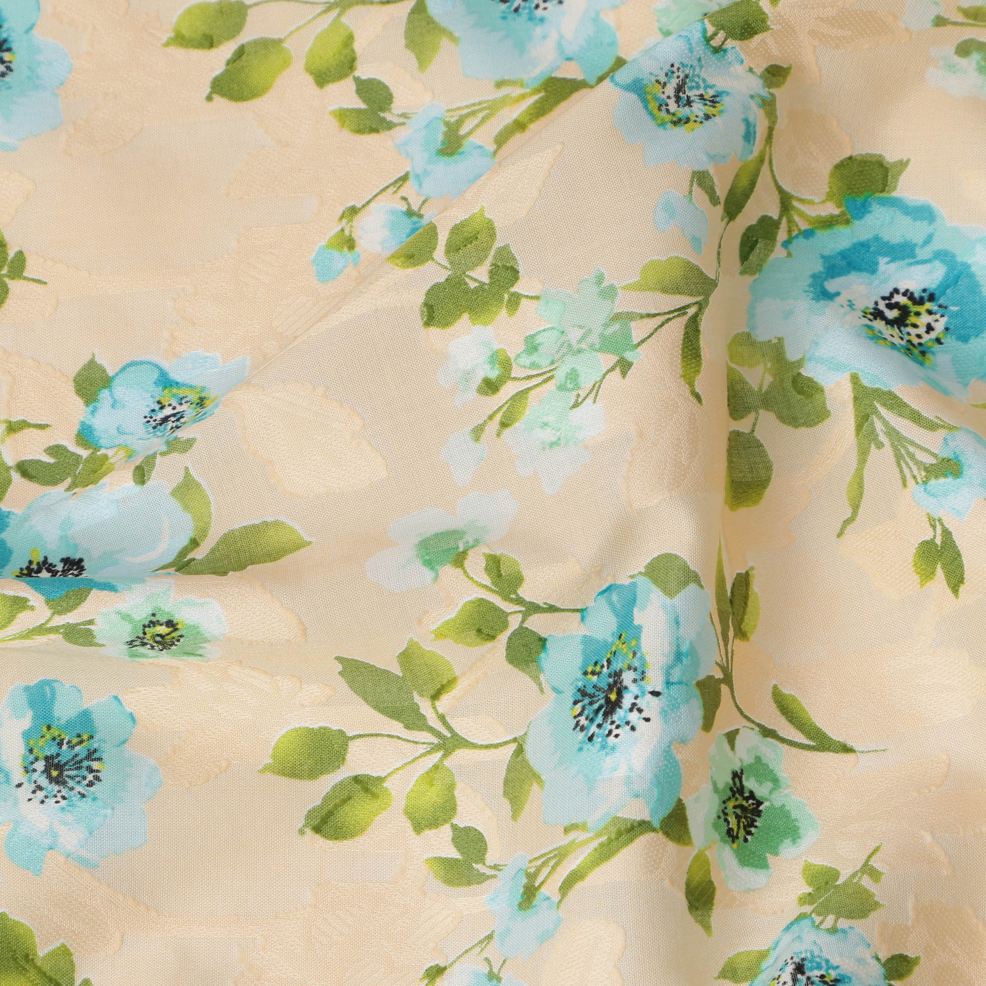 Beige and Blue Floral Uragiri Cotton Voile Fabric with Jacquard – Width 110 cm-D21793