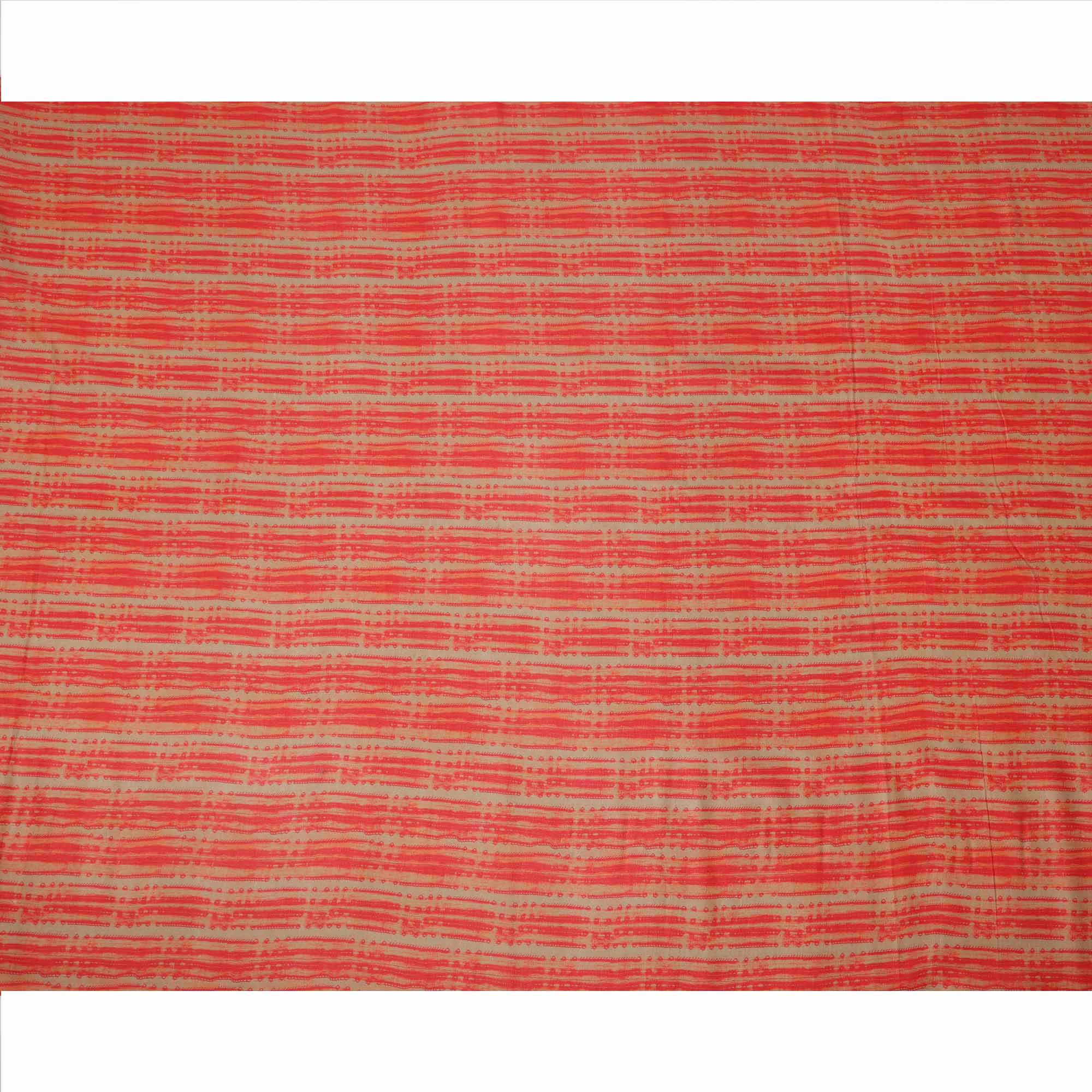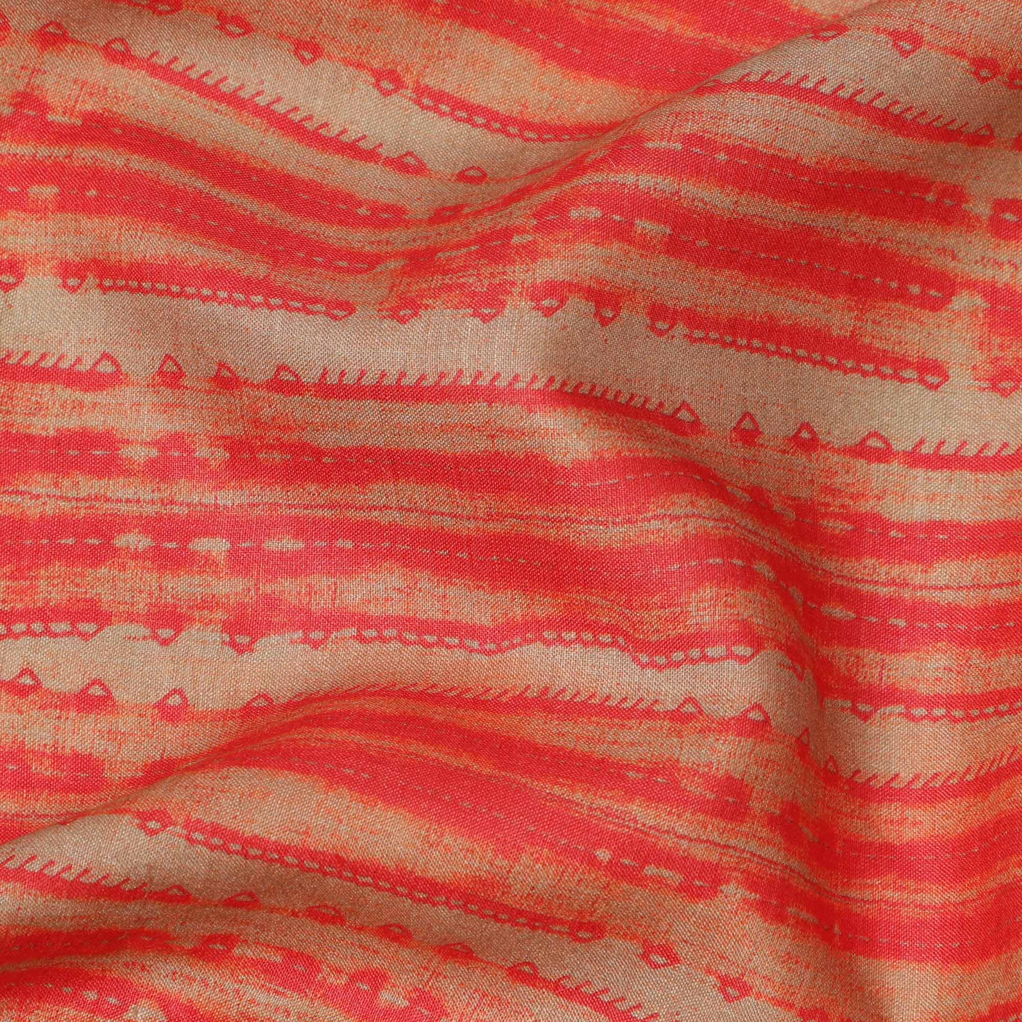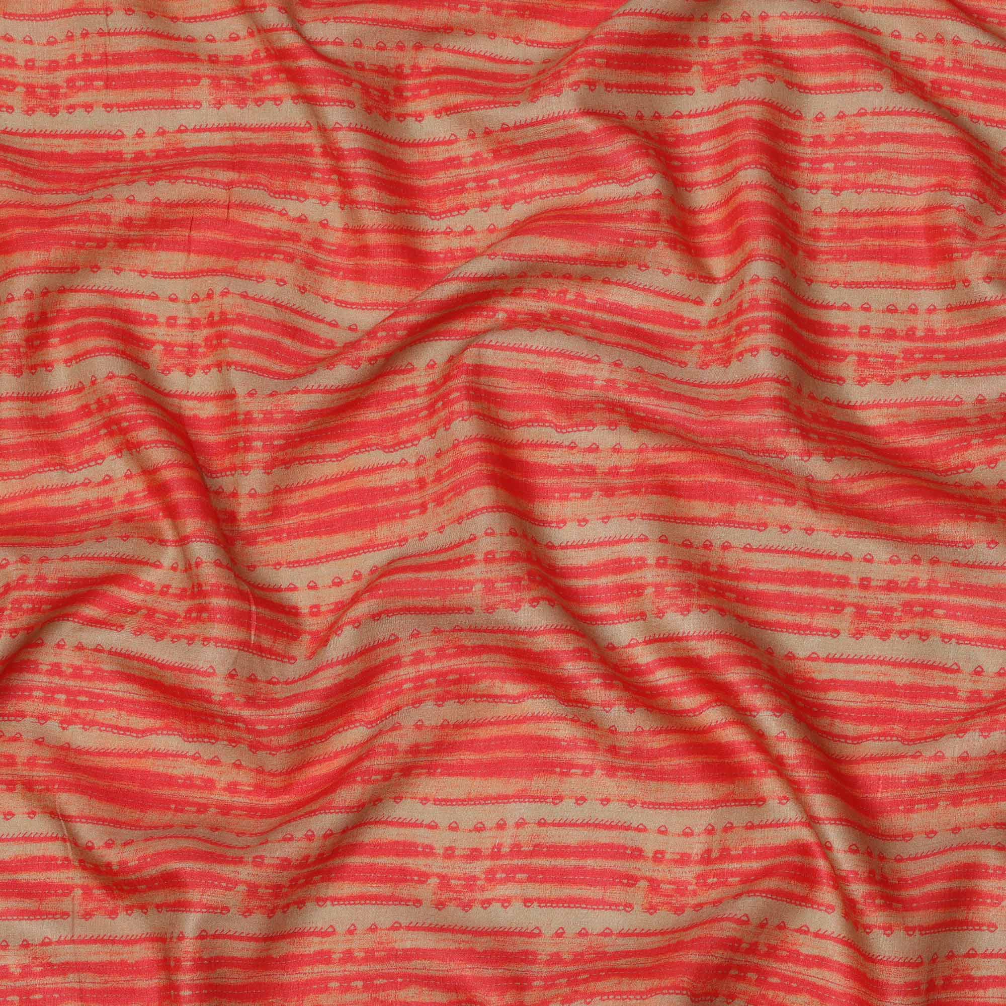 Beige and Coral Red Tribal Striped Abstract Printed Viscose Crepe Fabric, 110 Cms Width, Made in India-D23579