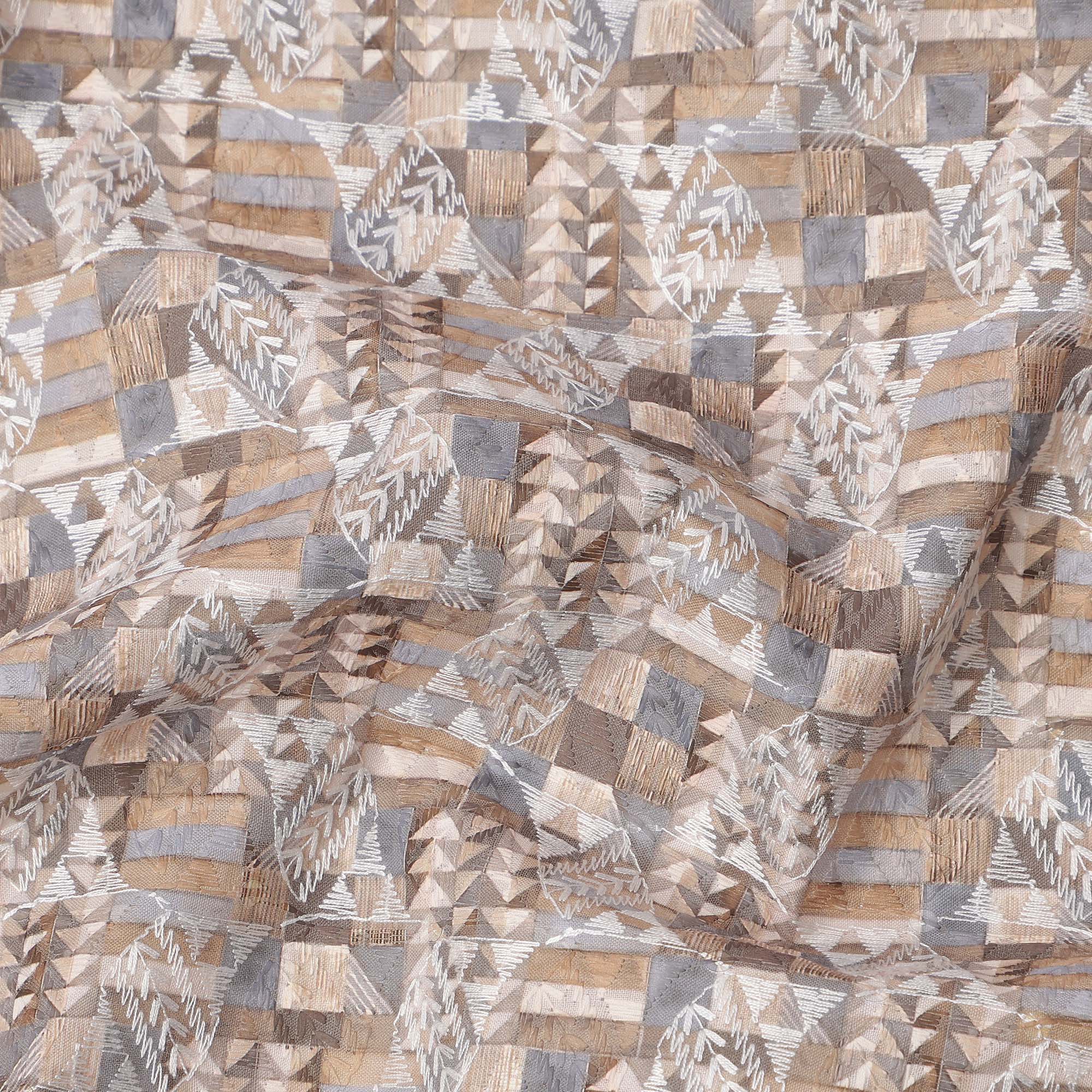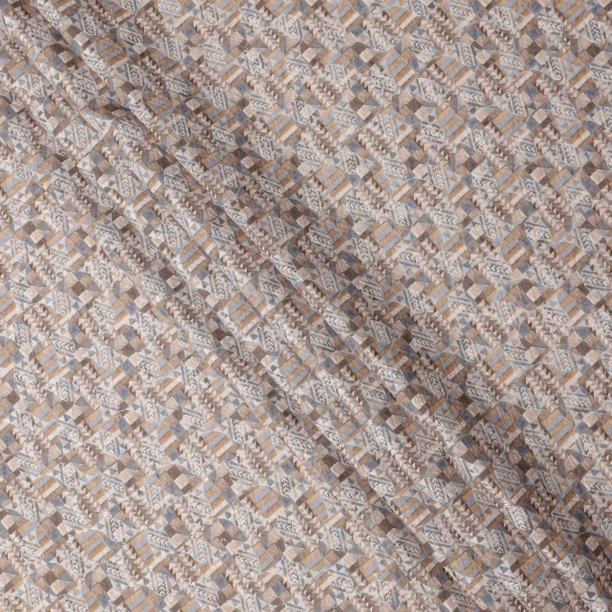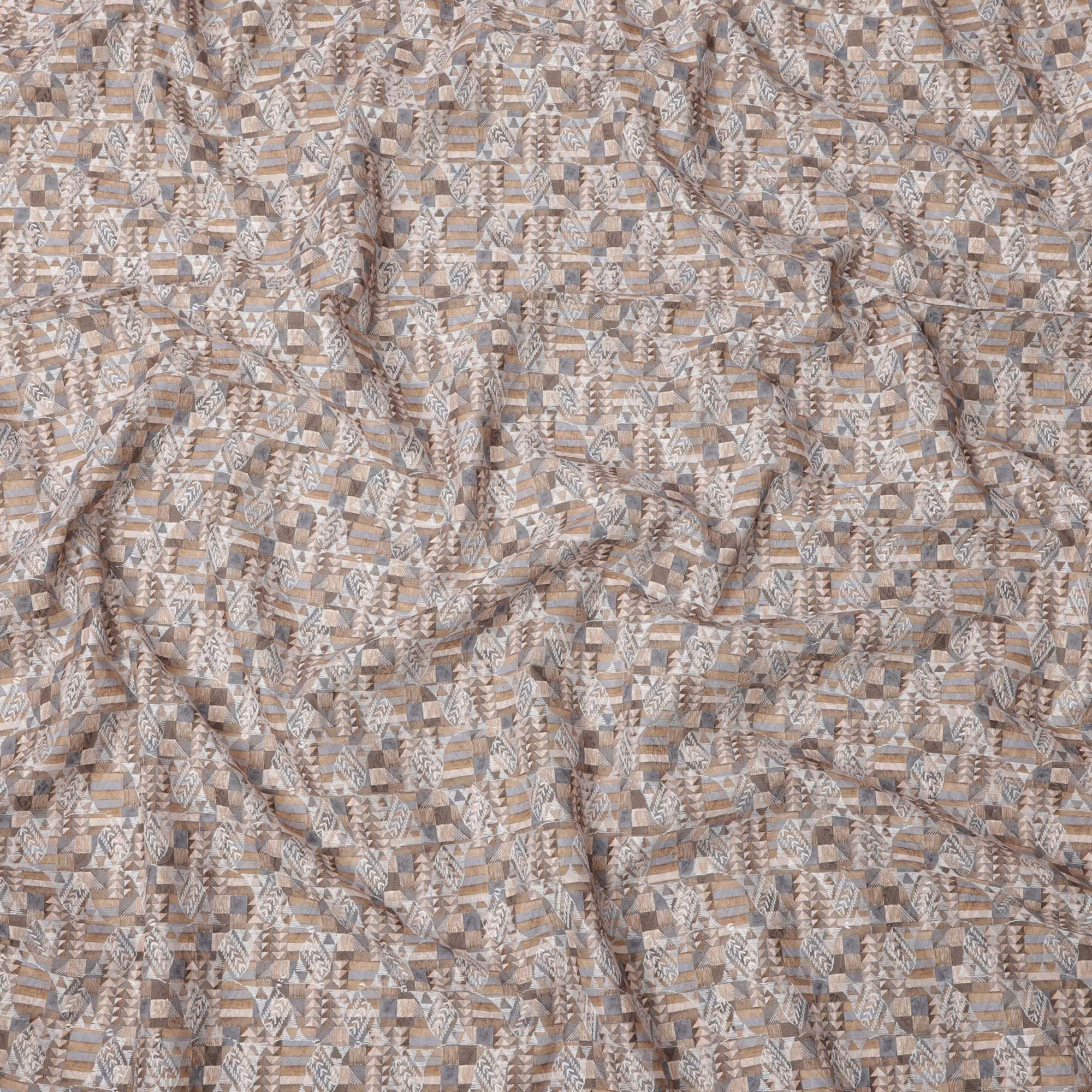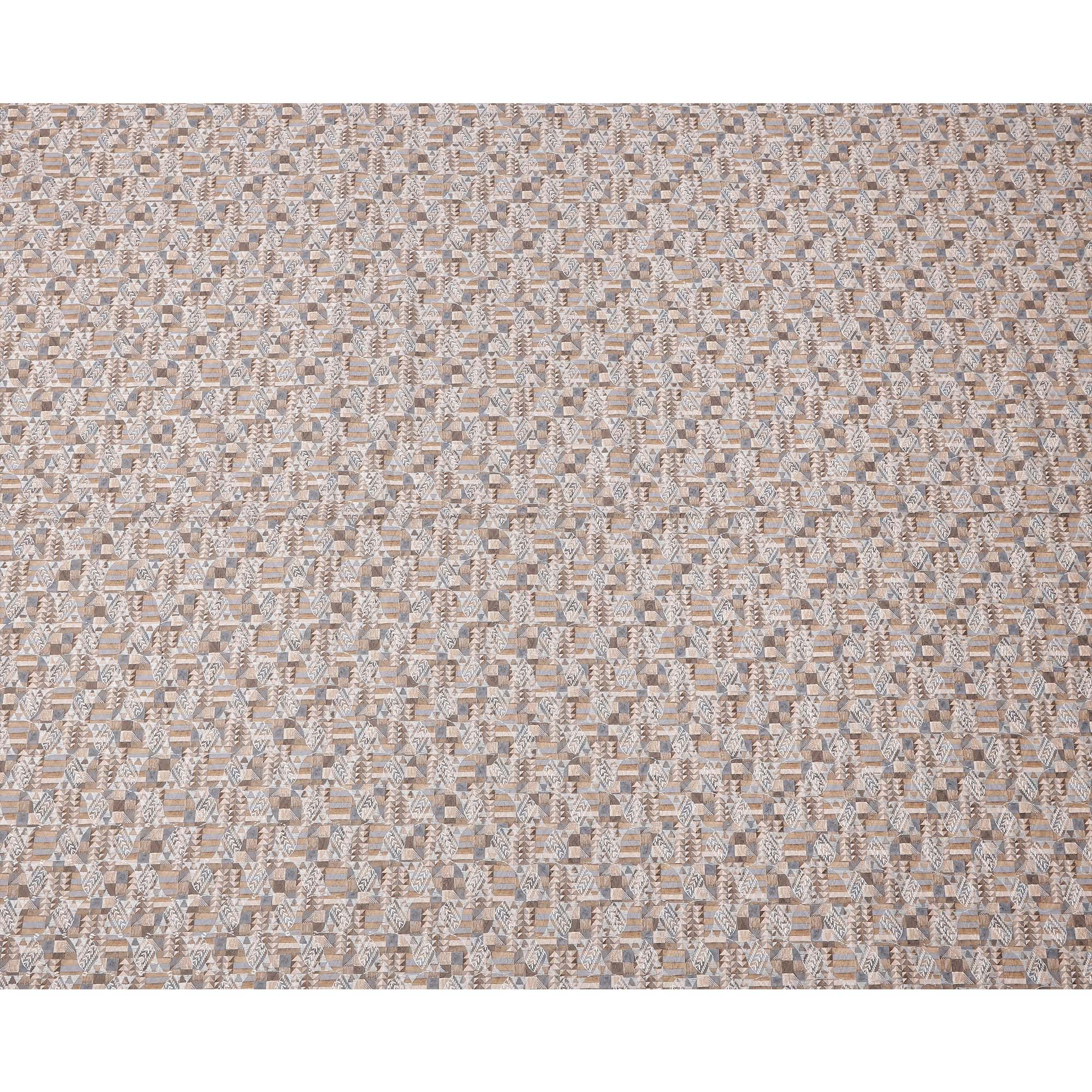 Beige and Grey Geometric Print Synthetic Cotton Fabric, 140 Cms, India-D25384