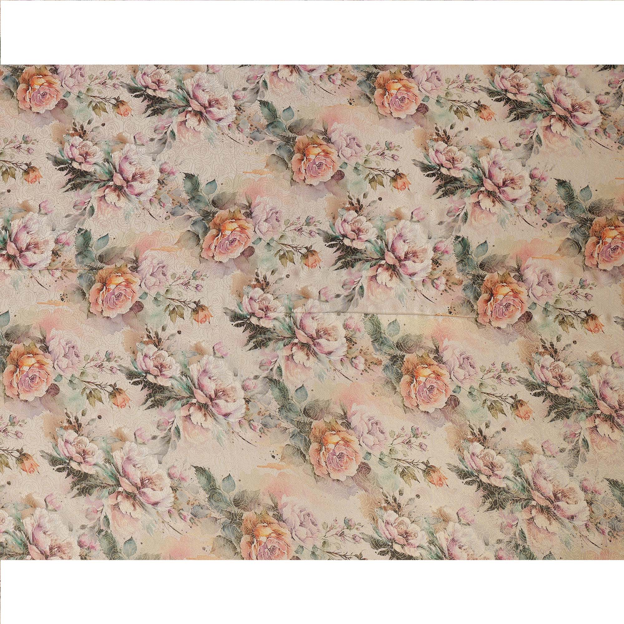 Beige and Peach Floral Printed Viscose Fabric, 110 Cms Width, Made in India-D26358
