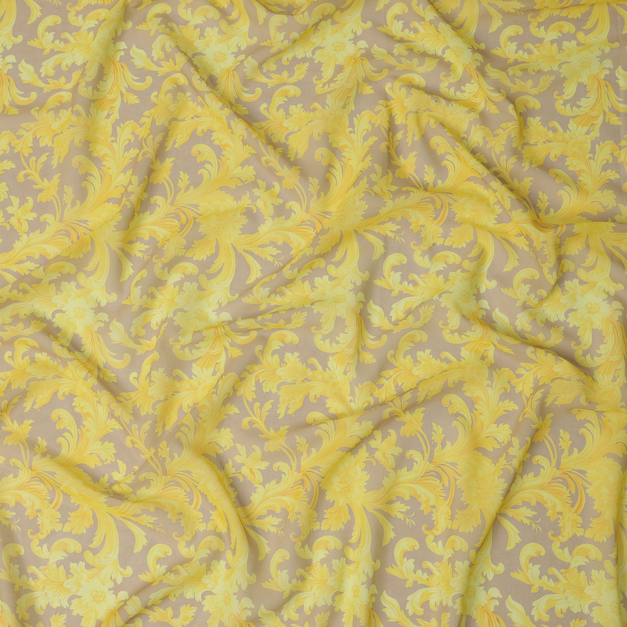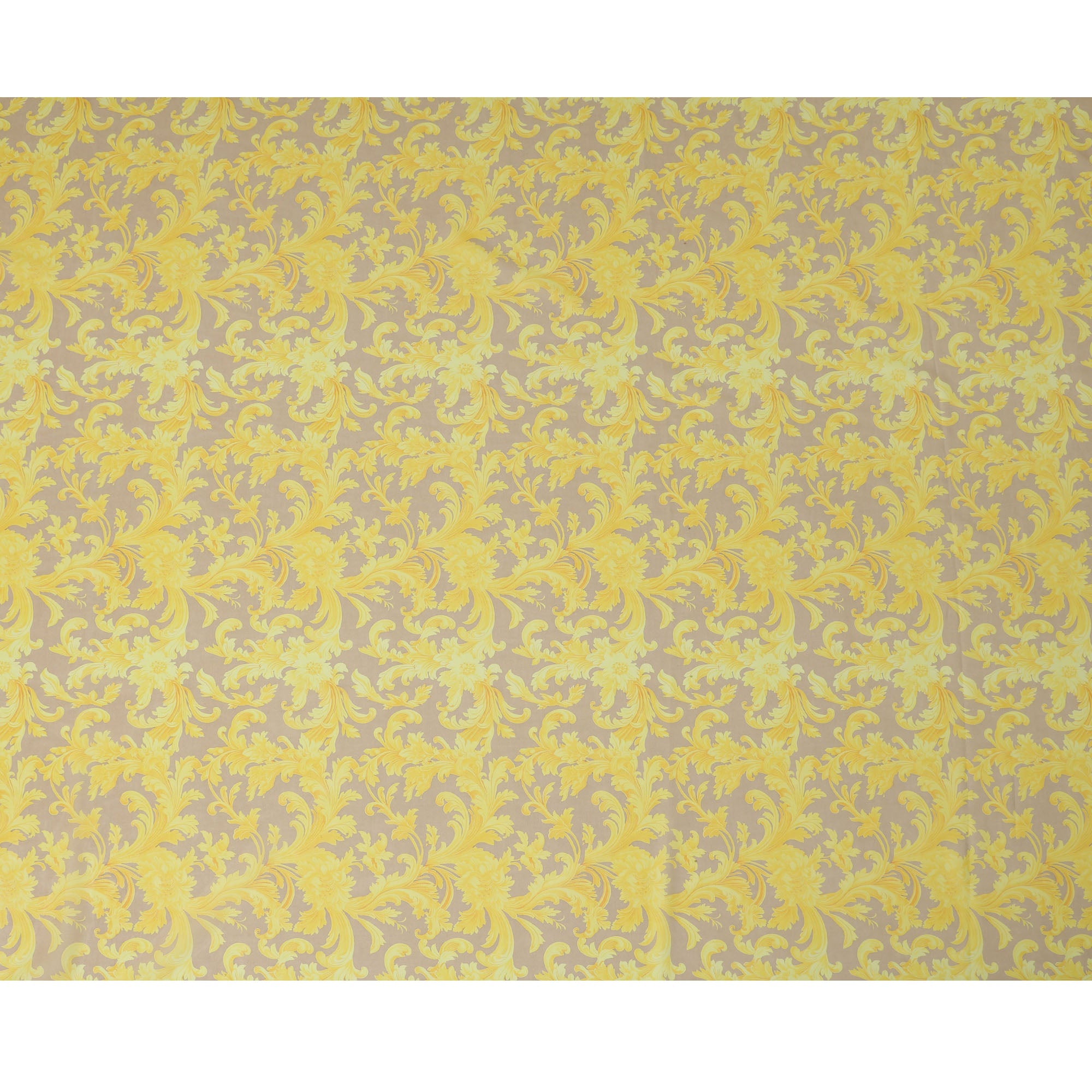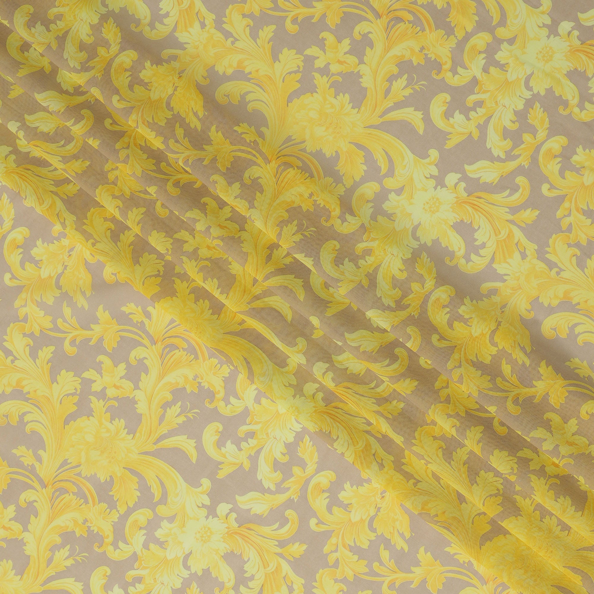 Beige base with vivid yellow baroque floral motifs for a regal look.