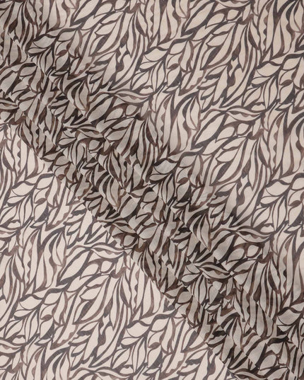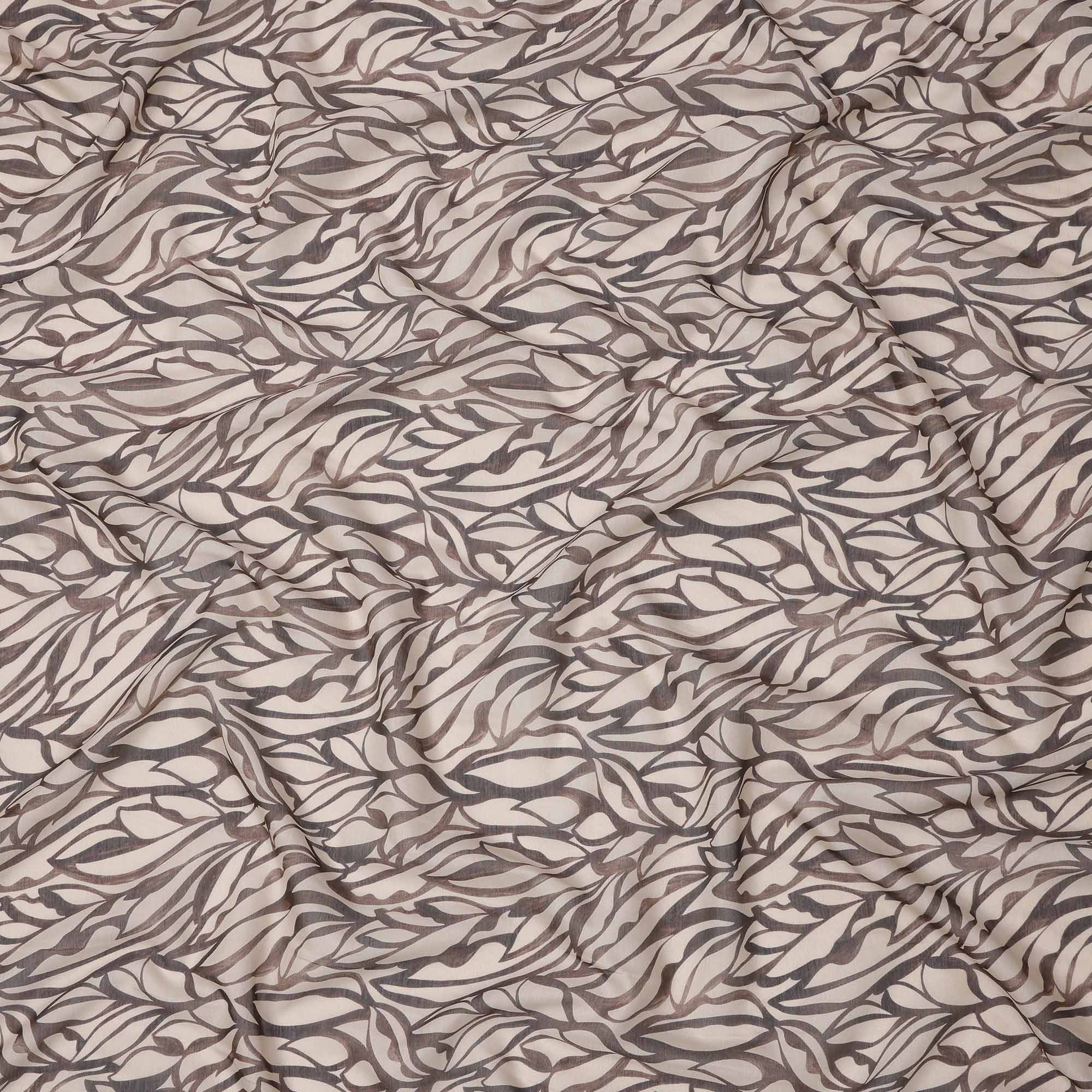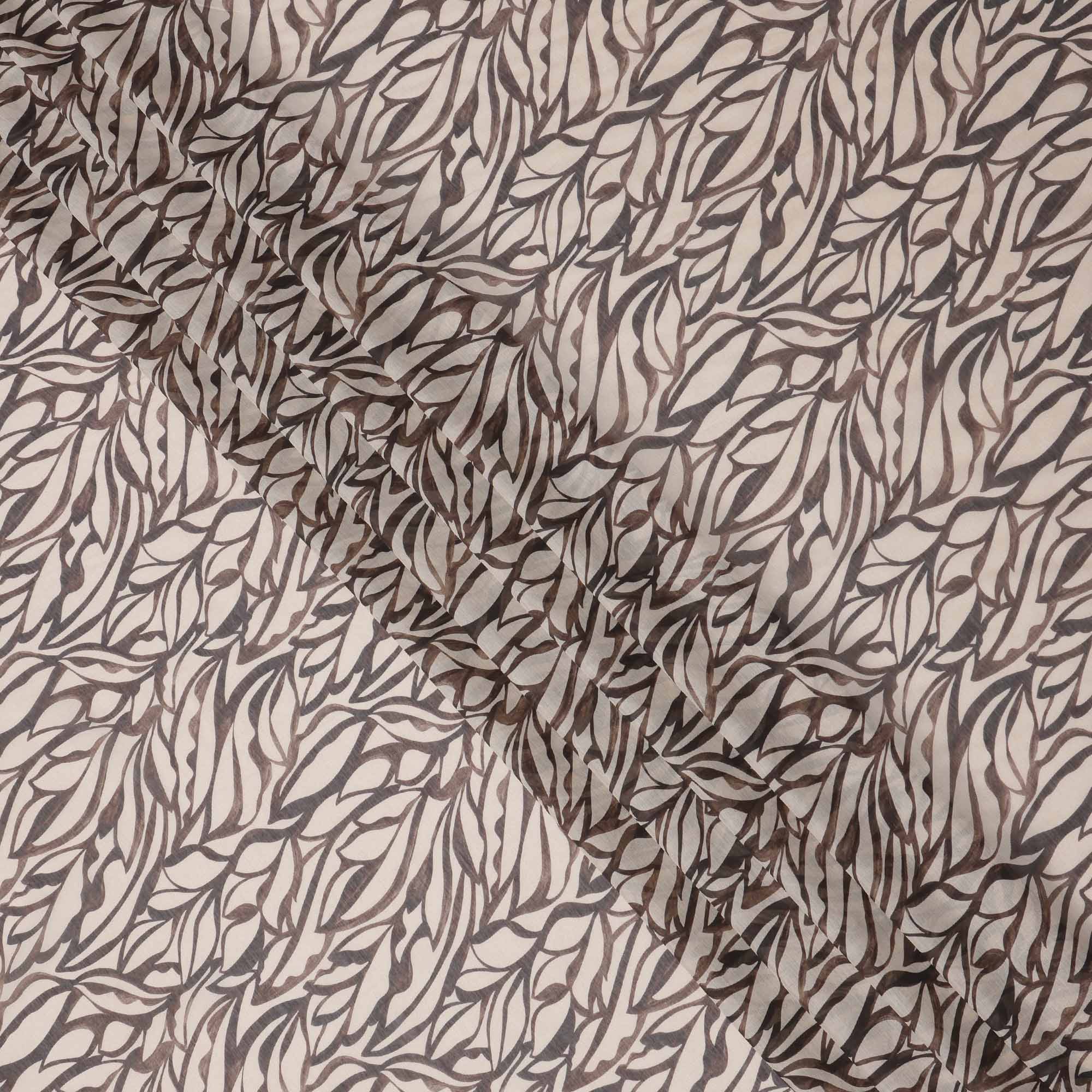 This beige base cotton voile fabric is beautifully adorned with a flowing abstract leaf pattern in muted shades of brown... Read more Read more