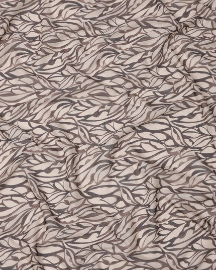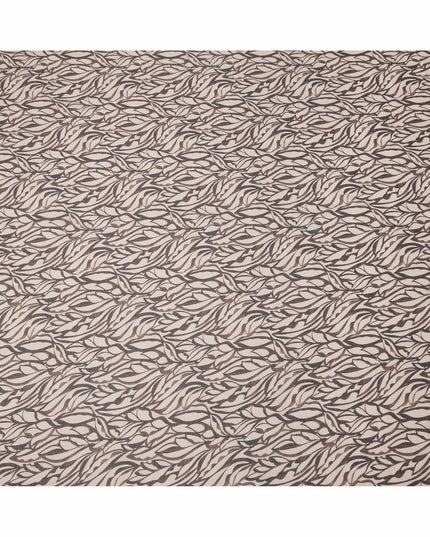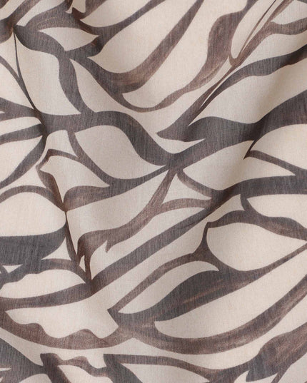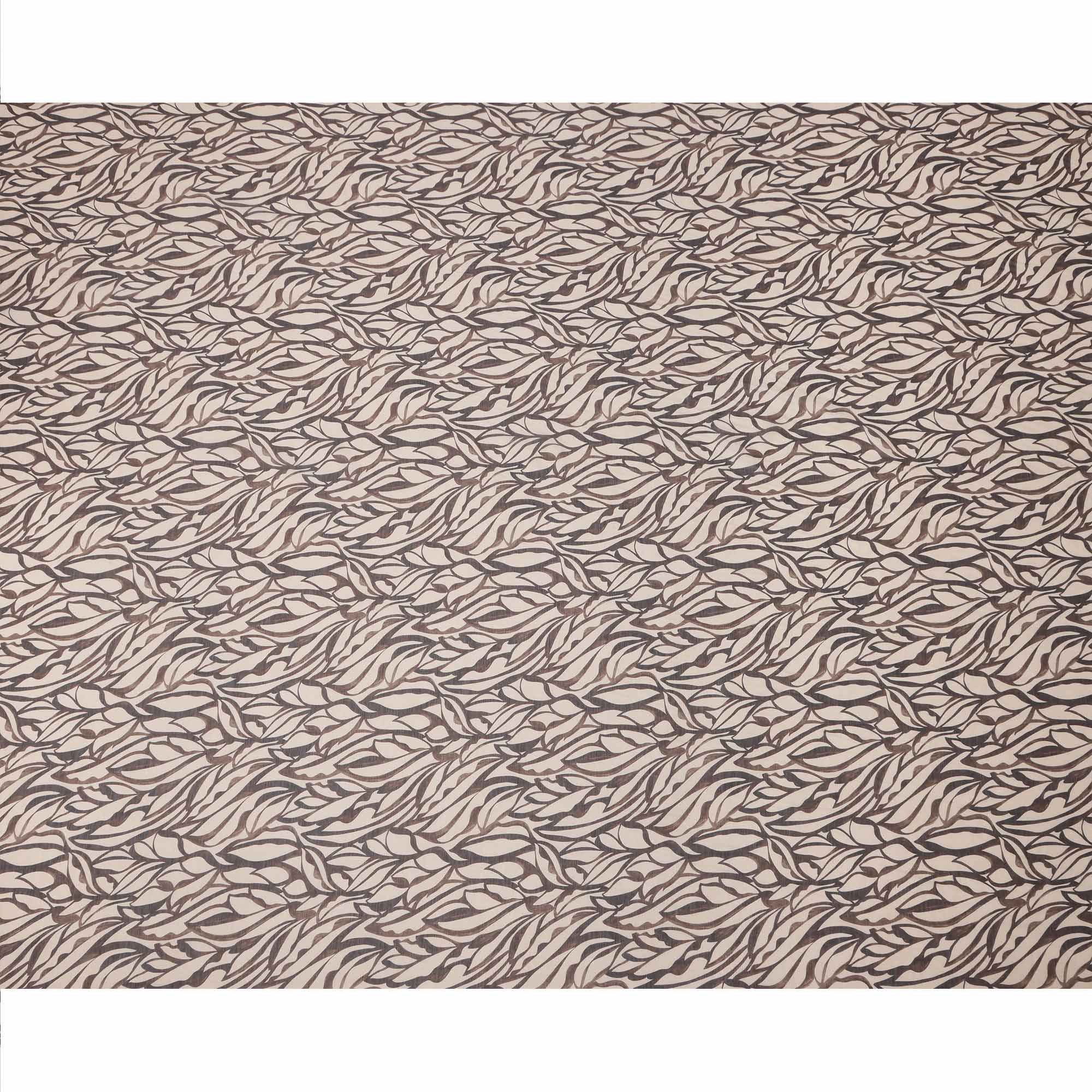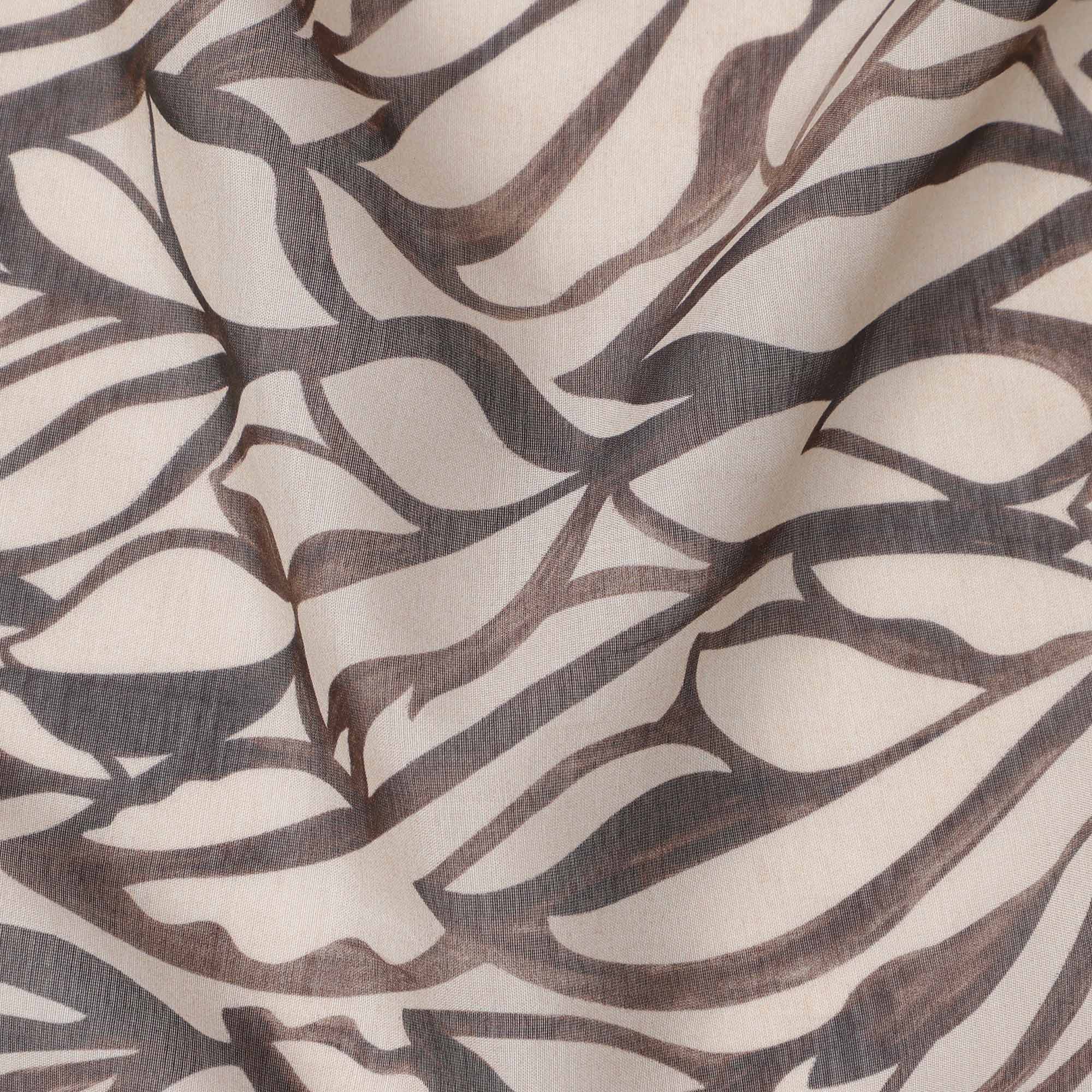 Beige Base Brown & Charcoal Abstract Leaf Printed Cotton Voile Fabric, 140 Cms Width, Made in Slovakia-D23660