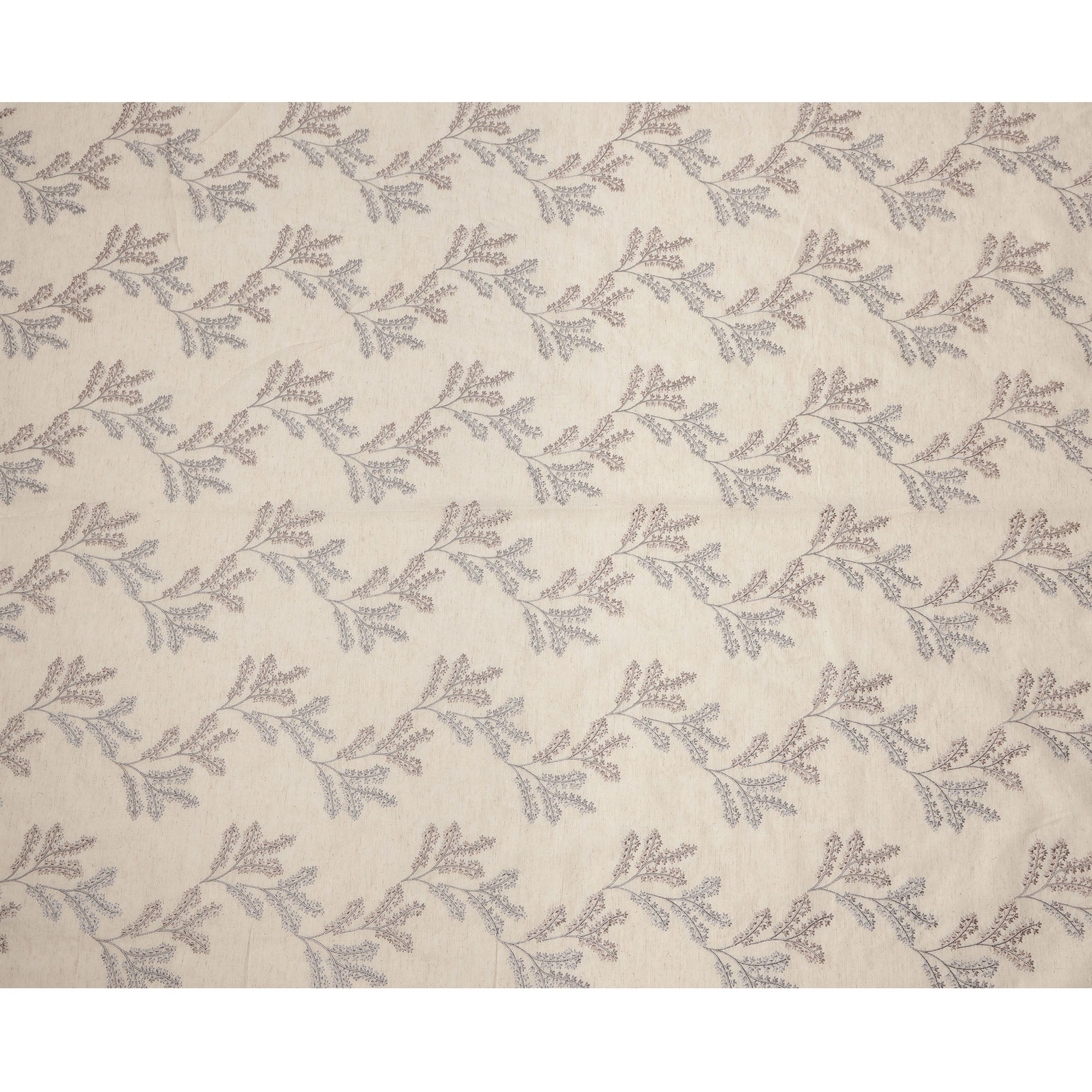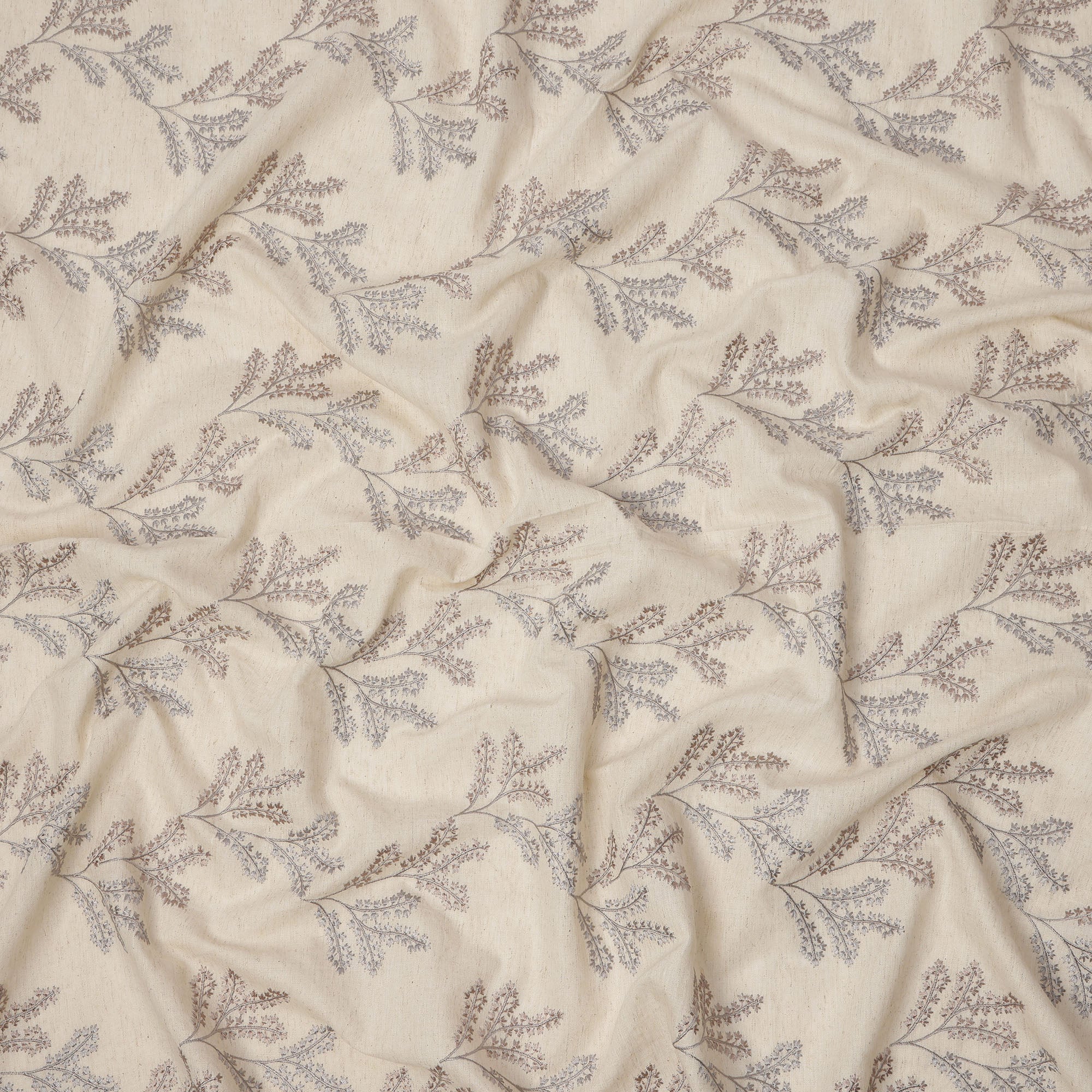 Beige Base Multi-Tone Floral Stem Embroidery Cotton Voile Fabric, 110 Cms, India-D24675
