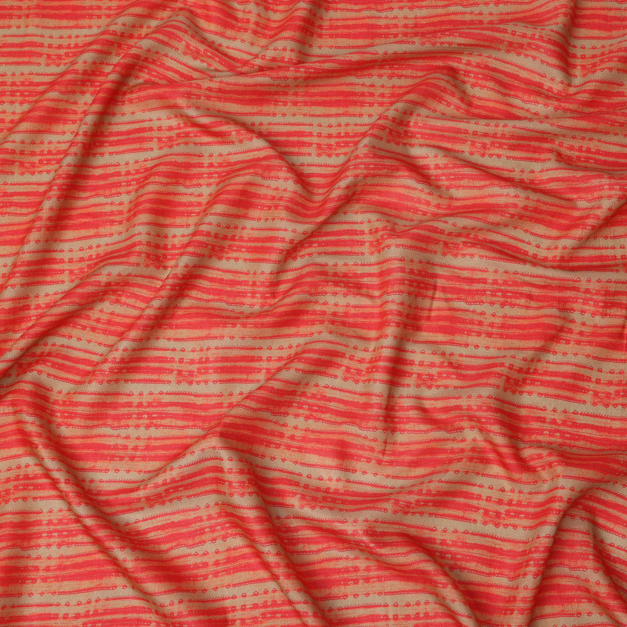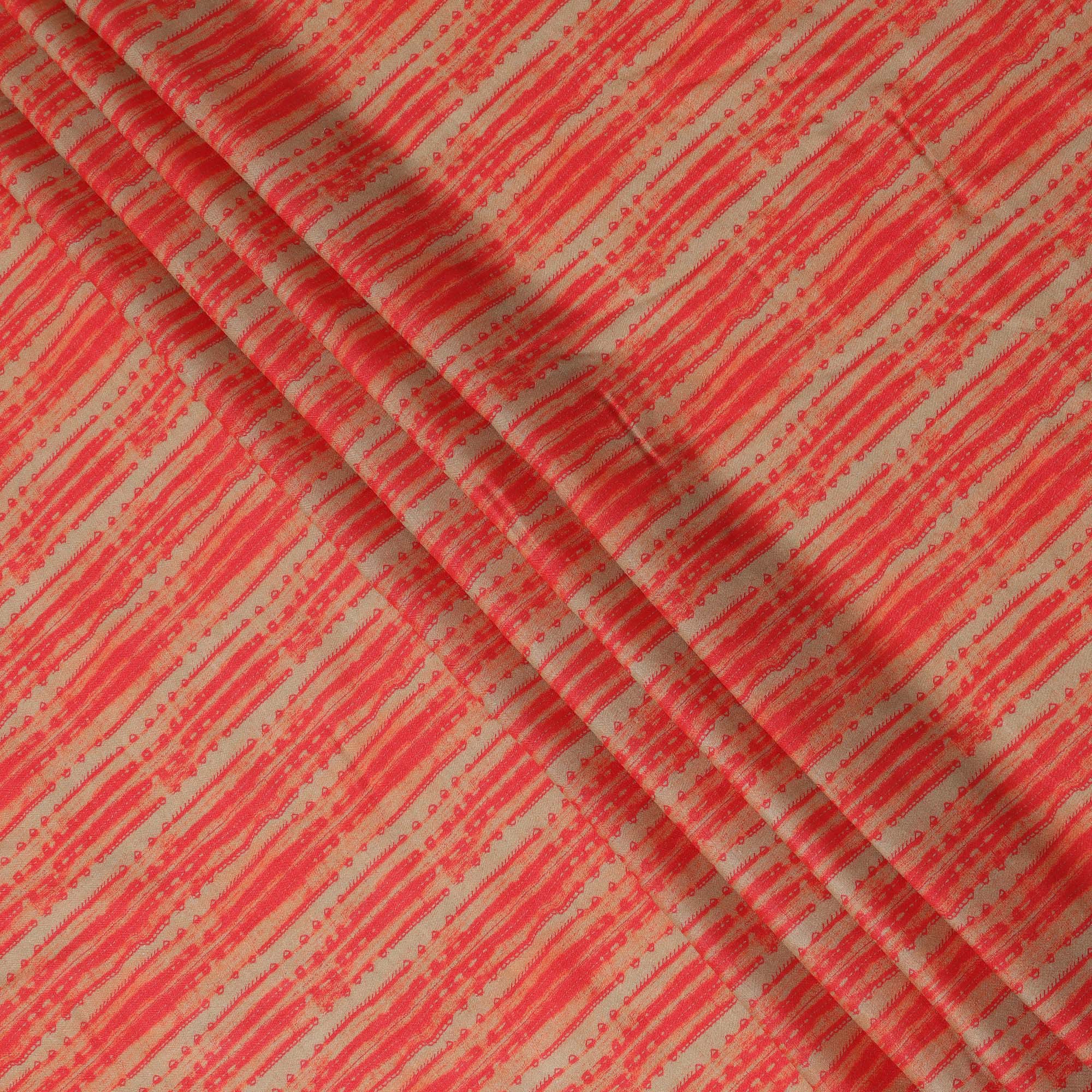 Beige Base Red Hand-Drawn Stripe Printed Cotton Lawn Fabric, 110 Cms Width, Made in India-D23953