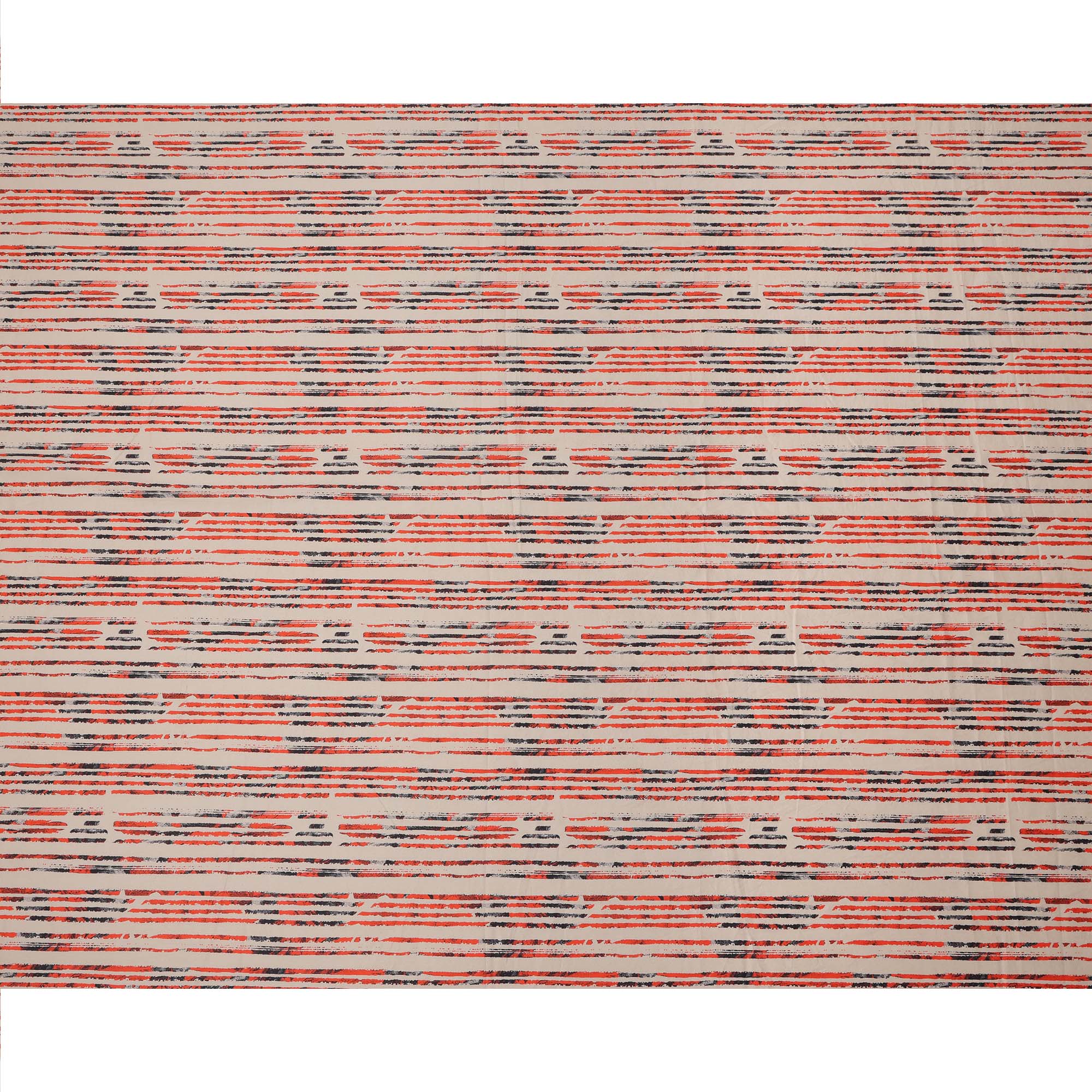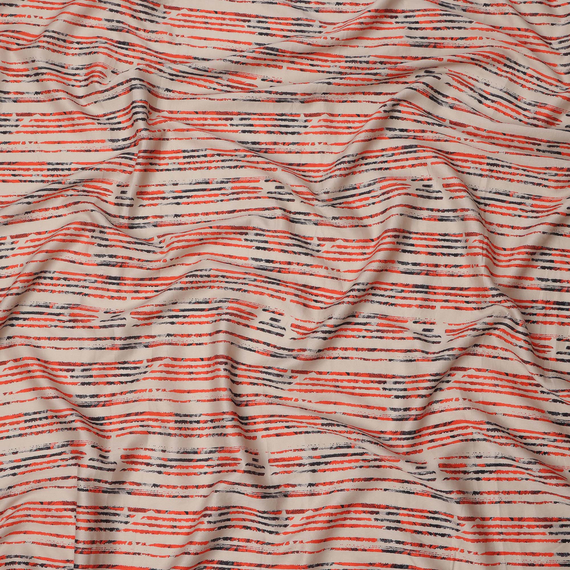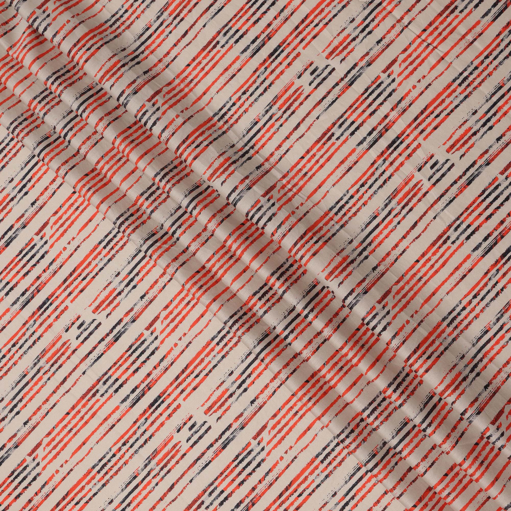 Beige Base with Red and Black Scribble Stripe Print Cotton Lawn Fabric, Width 110 Cms, Made in India-D23932