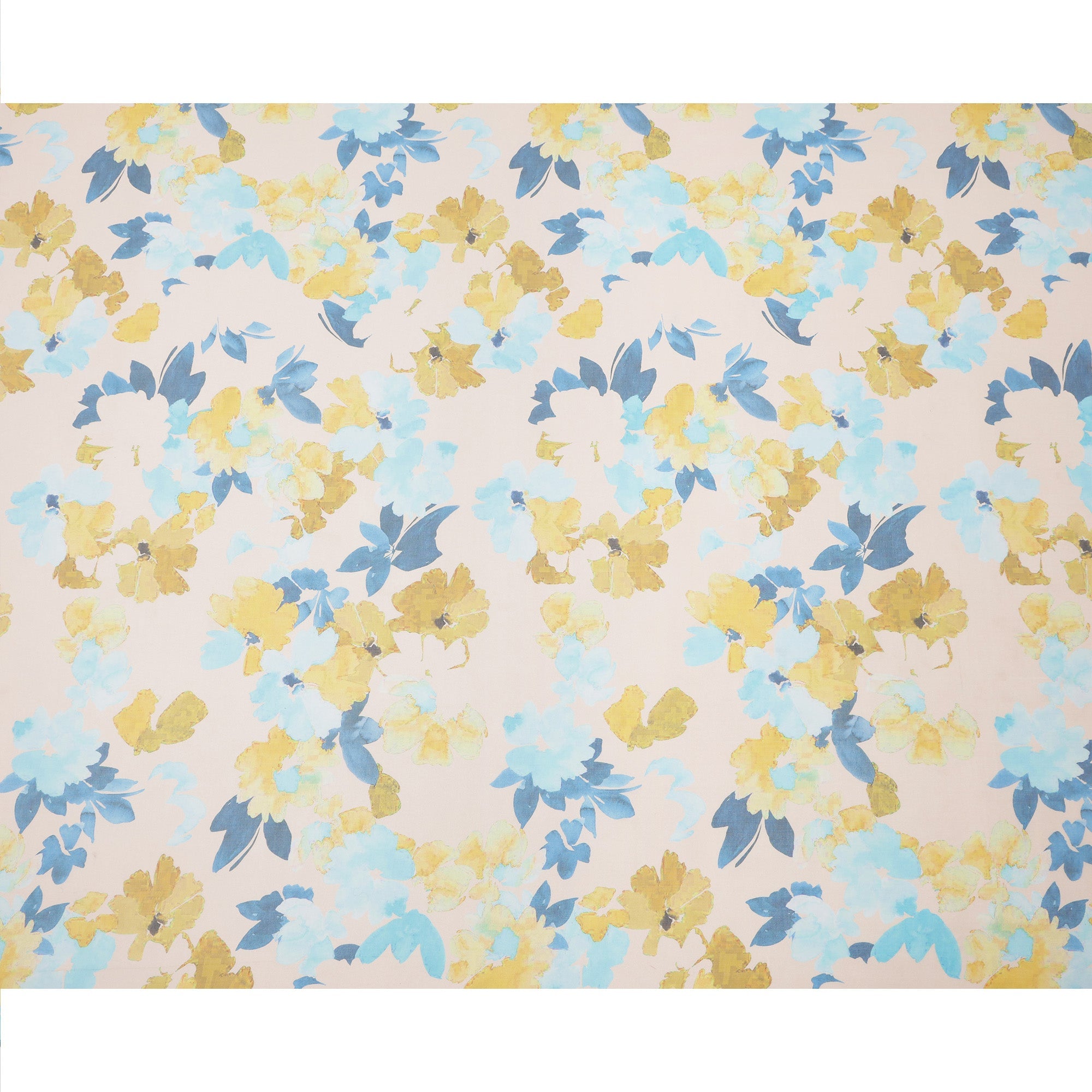 Beige base with watercolor floral print in yellow, blue, and mustard tones