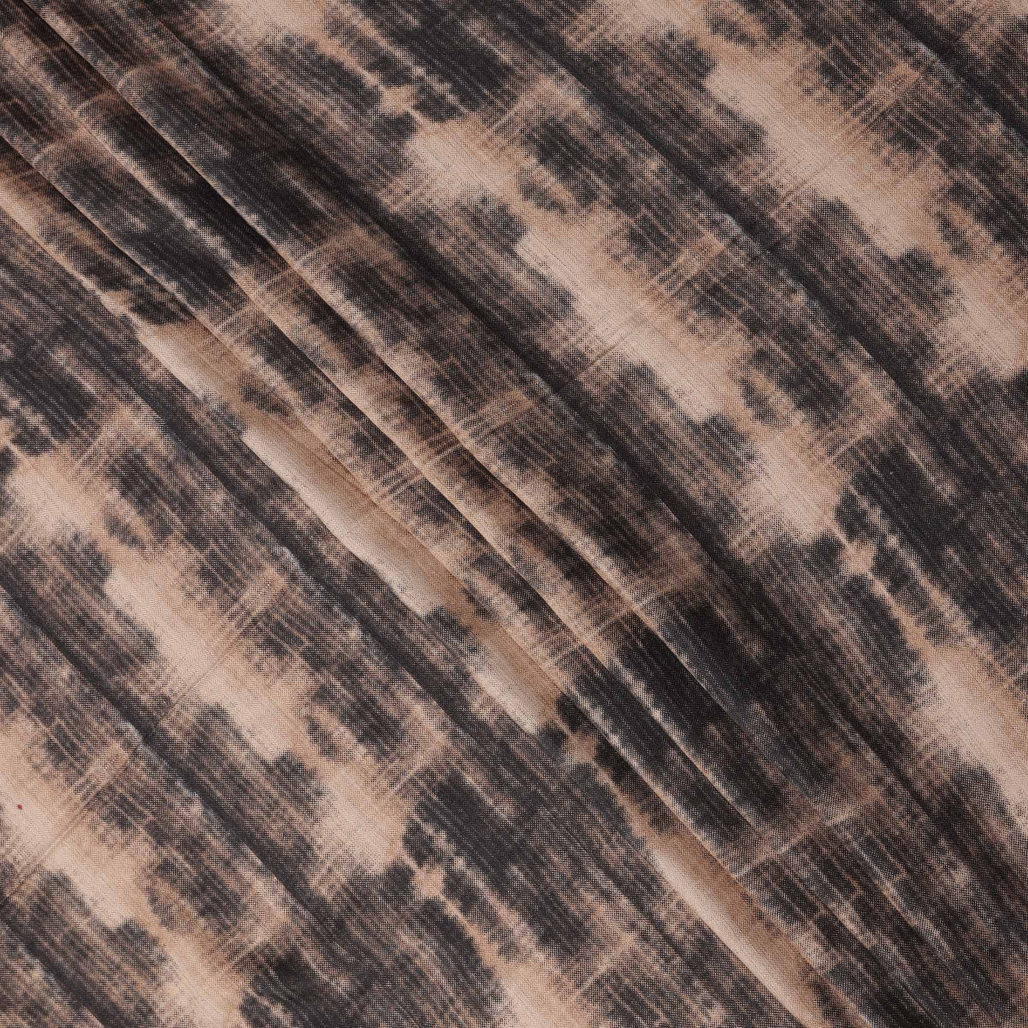 Beige Black Viscose Linen Blended Fabric with Abstract Tie-Dye Effect Print, 110 cms Width, Made in India-D25112