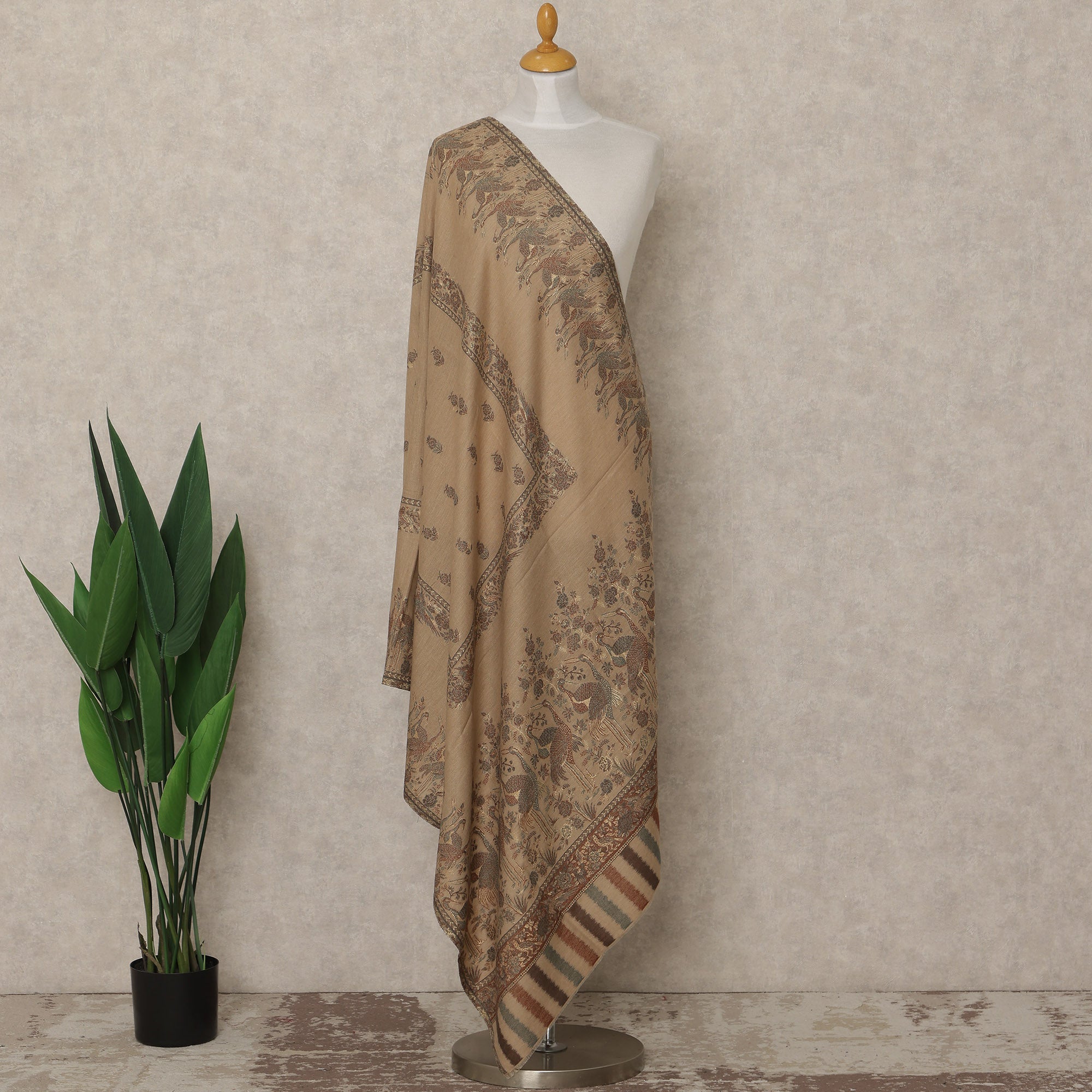Elegant beige brown color with traditional Kashmiri printed motifs