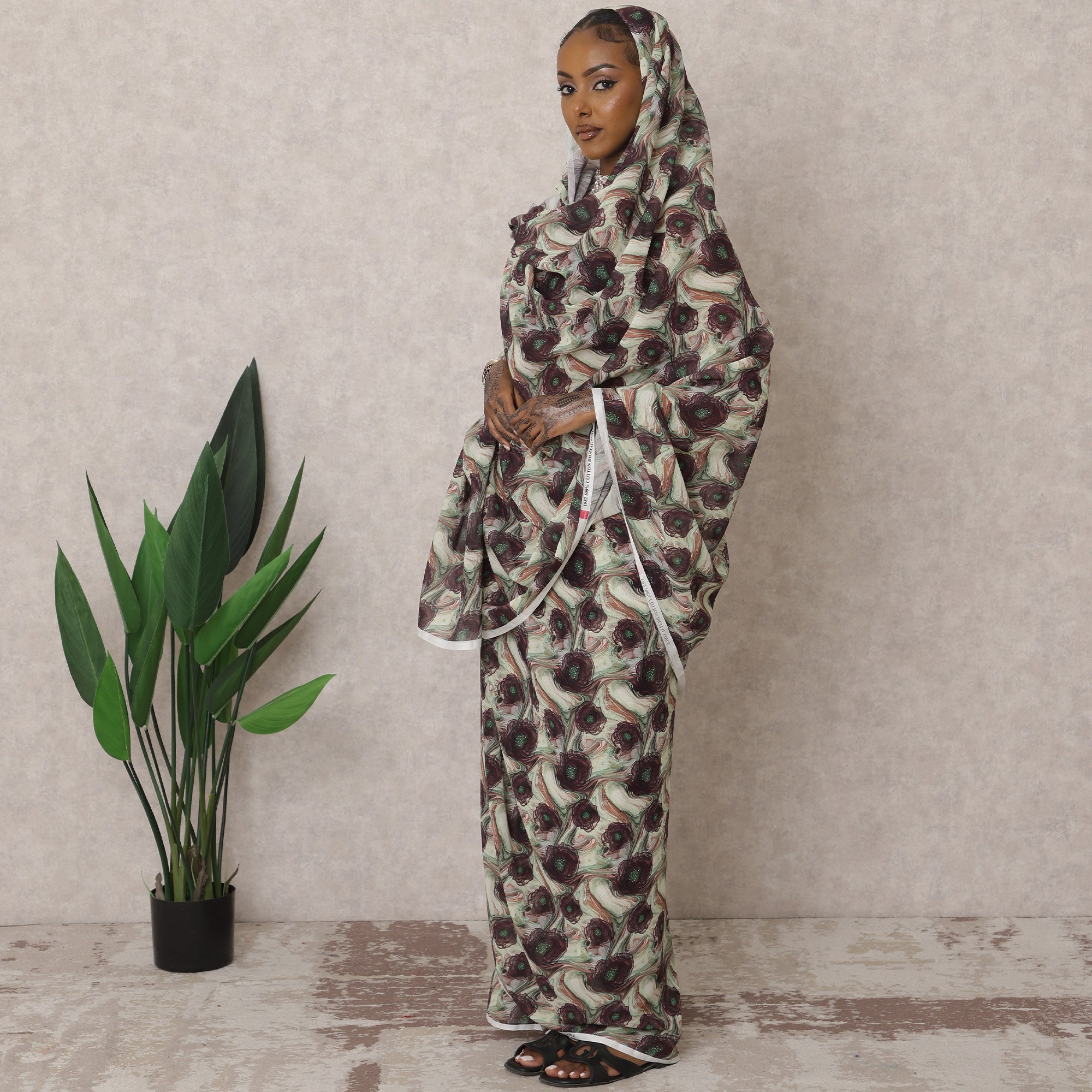 Enhance your modest fashion collection with this elegant beige and Brown traditional Sudanese thobe, crafted from premium pure cotton voile fabric for a soft, breathable, and lightweight feel. The 4.5-meter-long fabric drapes beautifully, ensuring a graceful and sophisticated look perfect for cultural gatherings, festive occasions, and daily wear. Featuring an artistic abstract print in rich Brown and subtle beige tones, this thobe merges tradition with contemporary aesthetics. With a width of 110 cm, it provides full coverage while maintaining an airy and comfortable fit. Made in India with superior craftsmanship, it is easy to wash and retains its softness and vibrant colors, making it a timeless and versatile wardrobe essential.