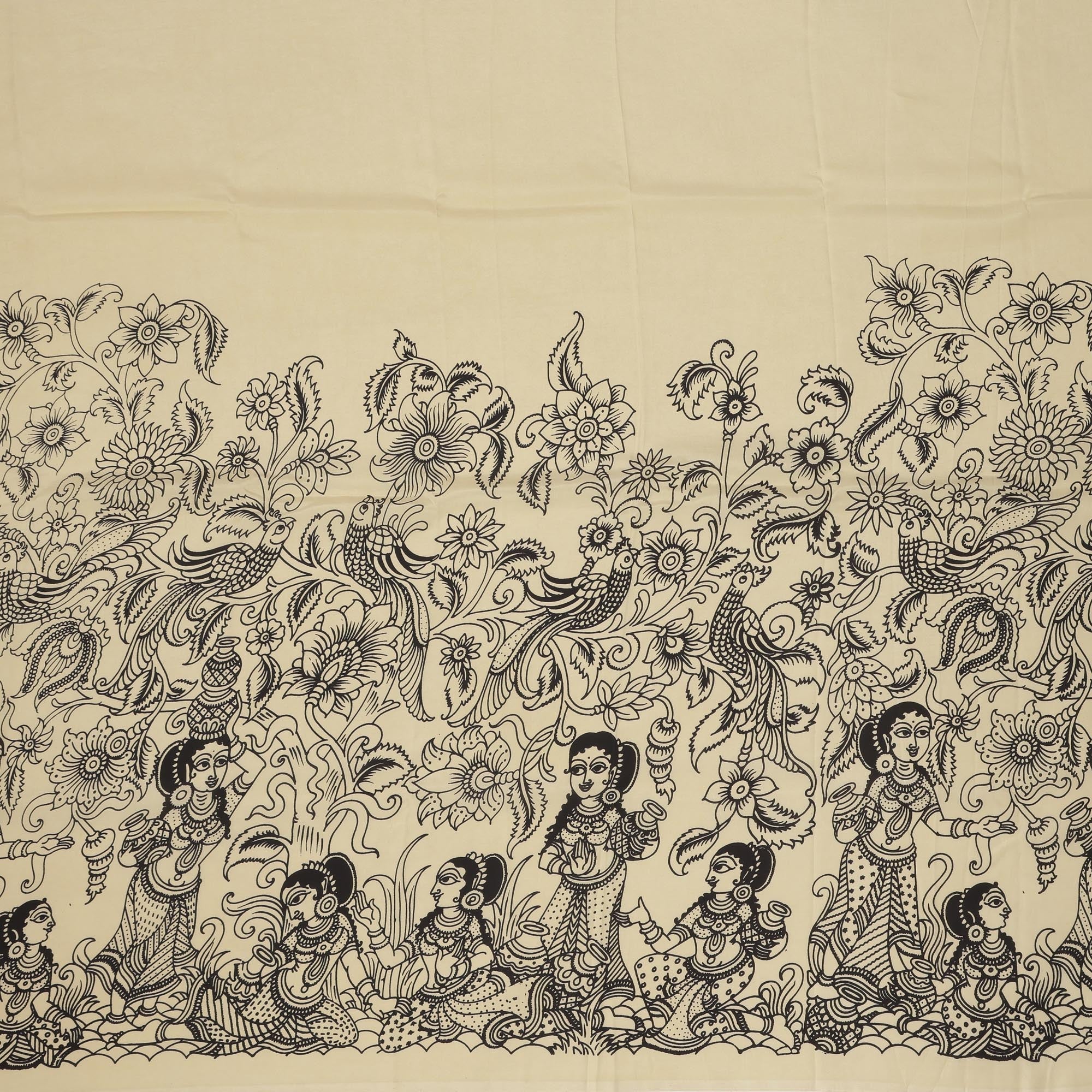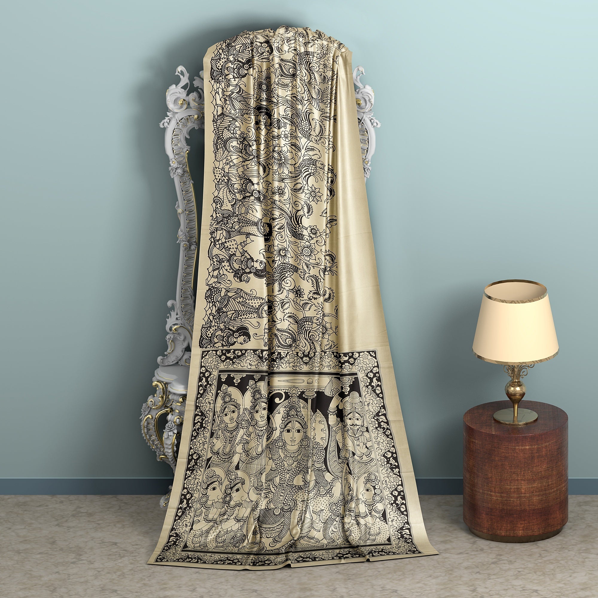 Beige Chennori Silk Pen Kalamkari Saree with Handpainted Mythological Design, Width 110 Cms, Origin: Sri Kalahasthi, India, 5.5 Mtrs with Blouse Piece-D22829