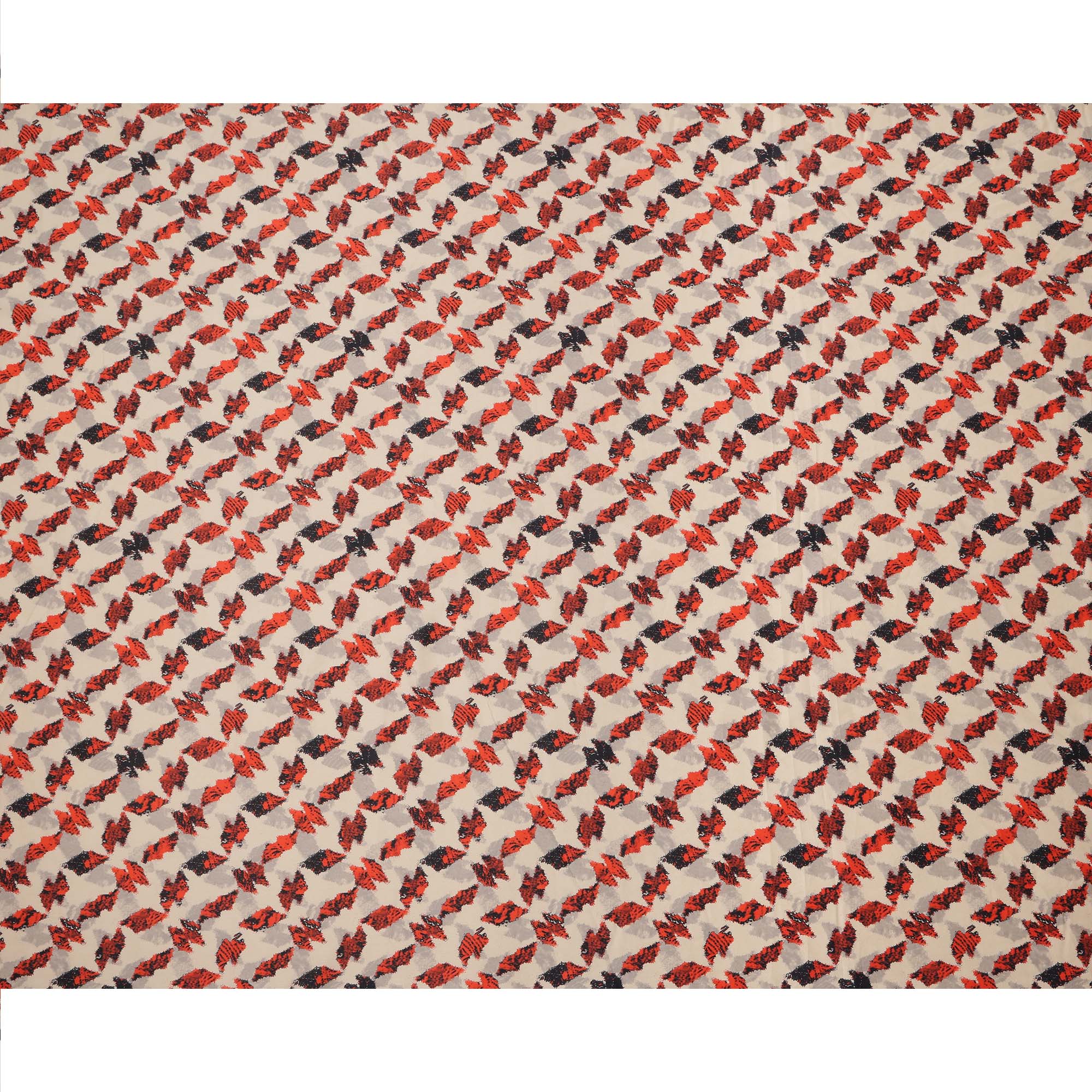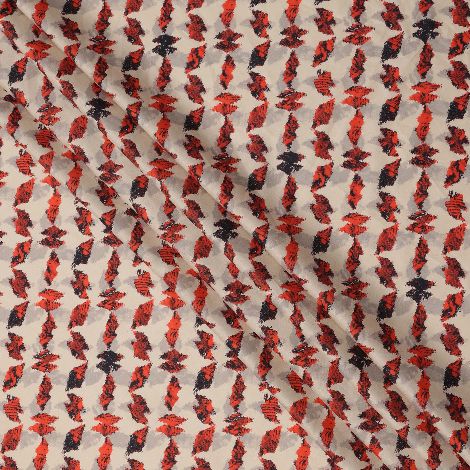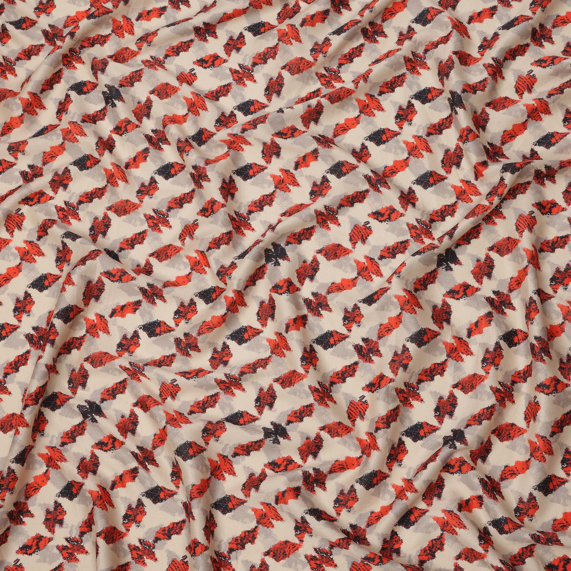 Beige Cotton Lawn Fabric with Red and Black Abstract Leaf Print, Width 110 Cms, Made in India-D23941