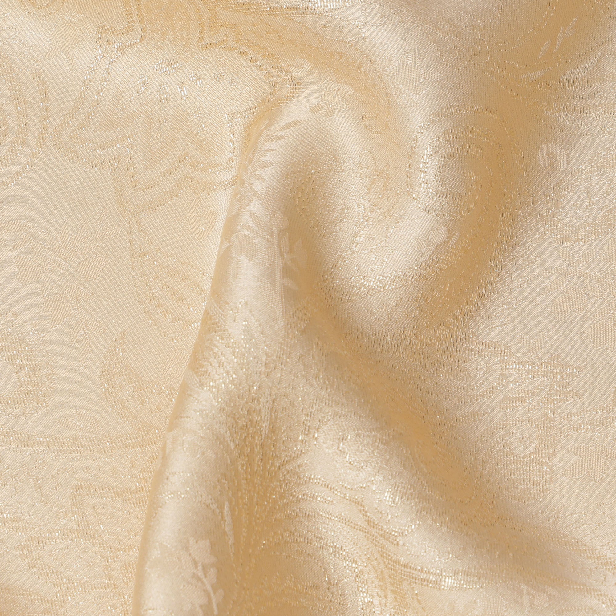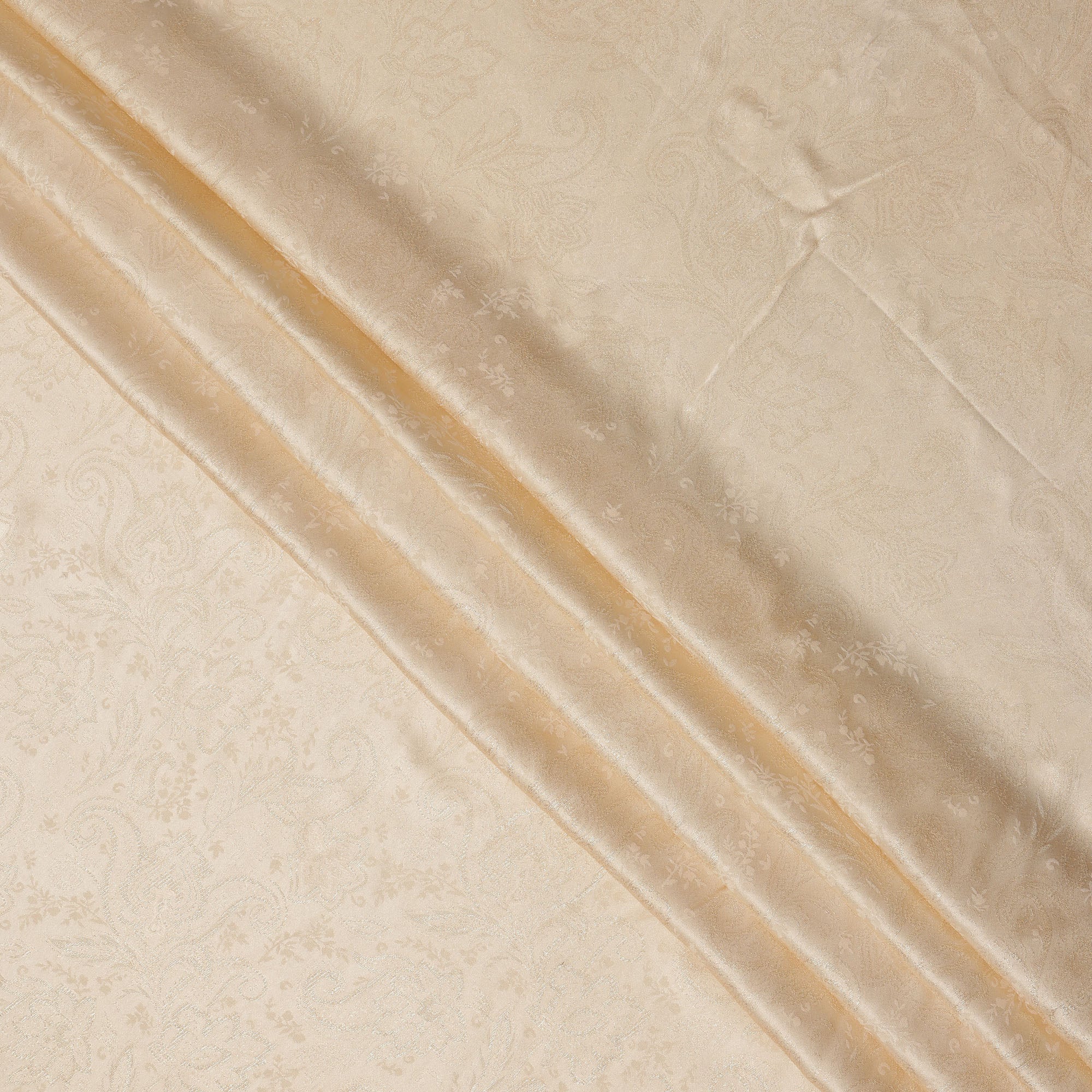Beige Cream Paisley Self-Design Pure Silk Satin Fabric, Width 140 Cms, Made in India-D23900